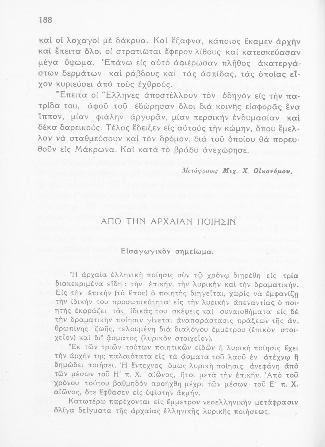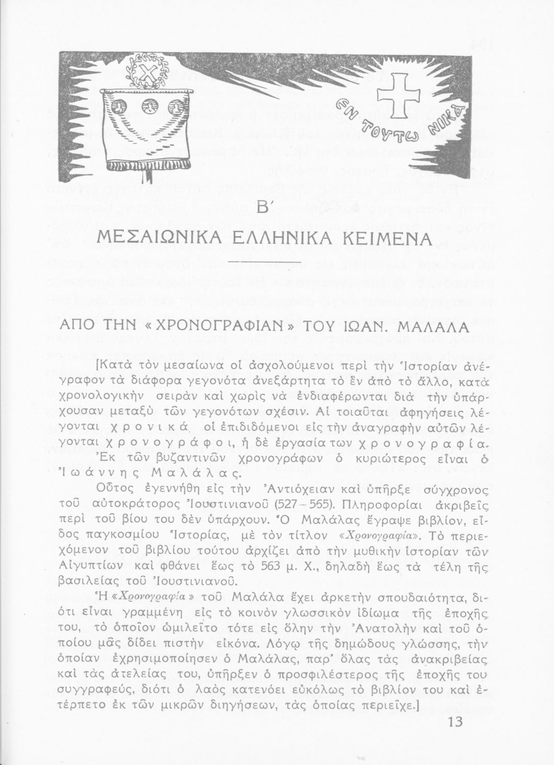Σχολικό εγχειρίδιο Νέων Ελληνικών Γ΄ Γυμνασίου και Α' Αστικού Σχολείου που περιέχει πεζά και ποιήματα Ελλήνων συγγραφέων εμπνευσμένα από τη θρησκευτική και κοινωνική ζωή, την ελληνική μυθολογία, την αρχαία και
