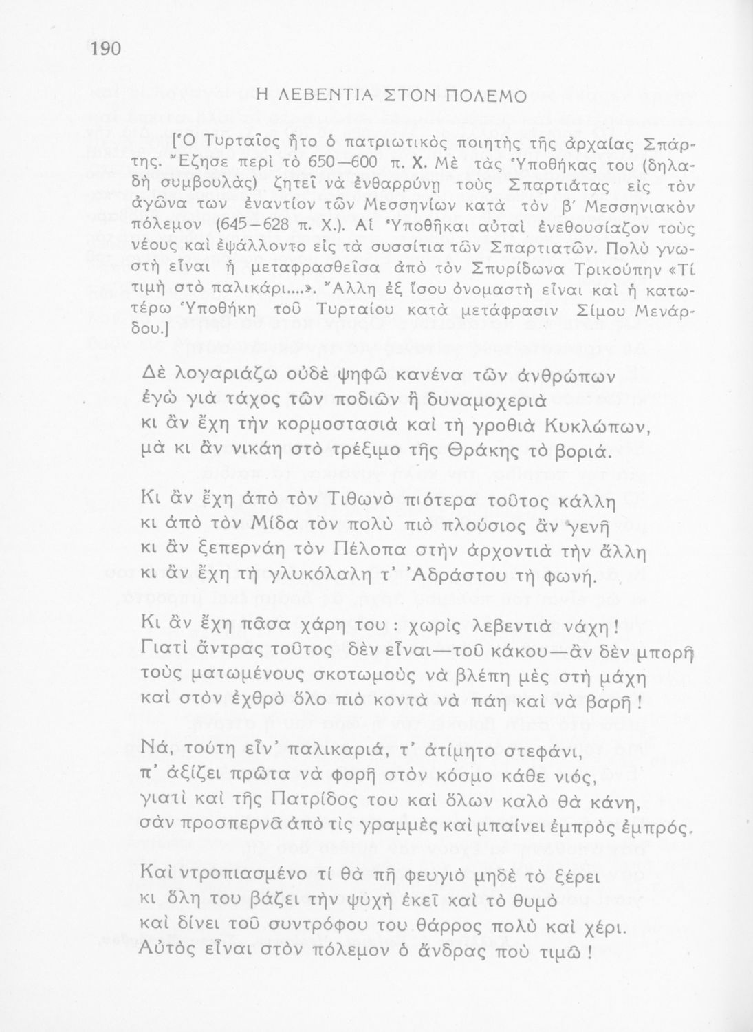 Σχολικό εγχειρίδιο Νέων Ελληνικών Δ΄ Γυμνασίου και Β΄ Αστικού Σχολείου που περιέχει πεζά και ποιήματα Ελλήνων συγγραφέων εμπνευσμένα από τη θρησκευτική και κοινωνική ζωή, την ελληνική μυθολογία, την αρχαία και σύγχρονη ελληνική ιστορία, και την ελληνική φύση. Περιέχει παράρτημα με μεταφράσεις κειμένων αρχαίων ελλήνων συγγραφέων και αποσπάσματα από τη μεσαιωνική γραμματεία, βιογραφίες των συγγραφέων και λεξιλόγιο.