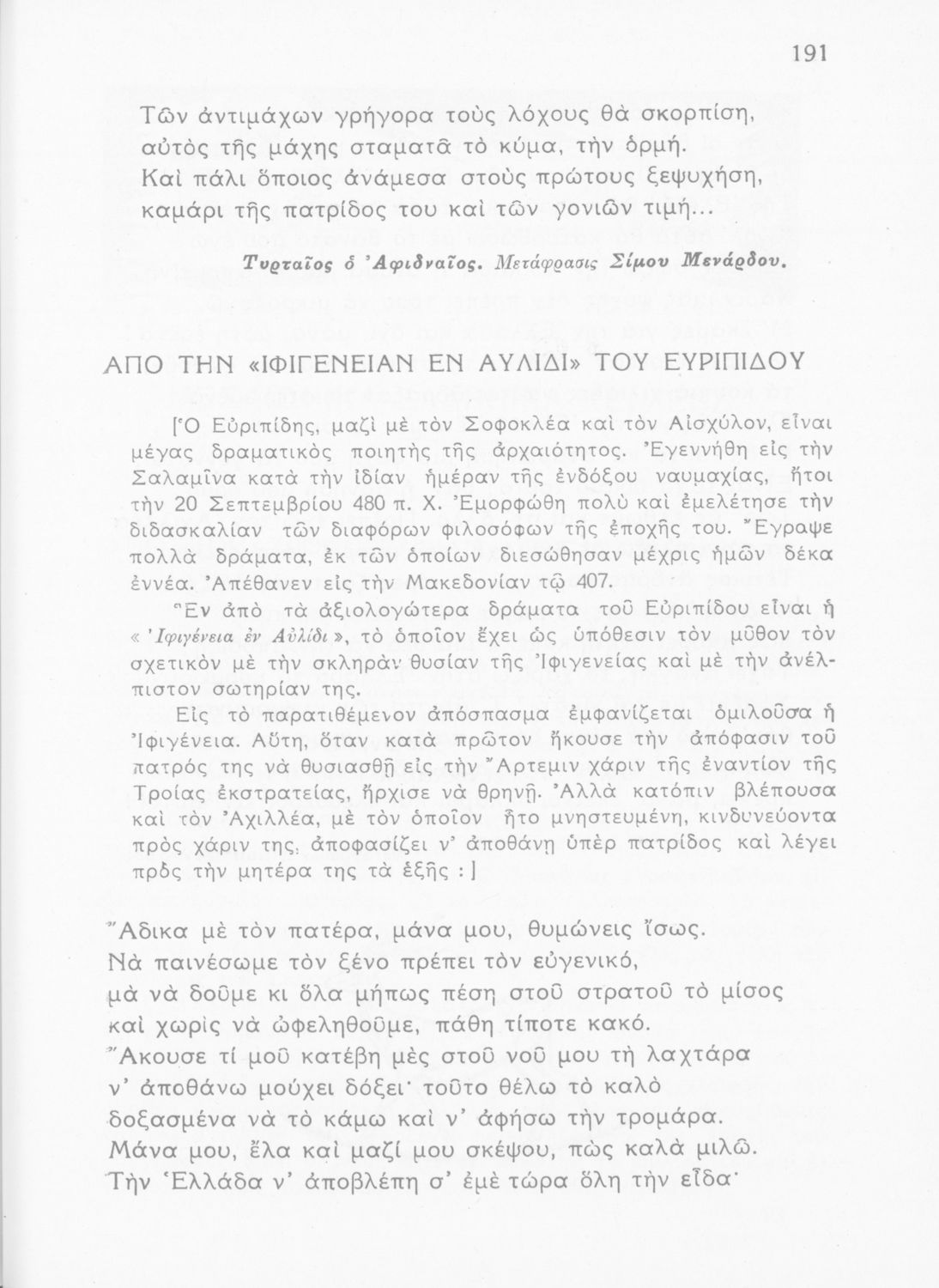 Σχολικό εγχειρίδιο για την Β΄ Γυμνασίου και την Γ΄ Αστικού Θηλέων για το μάθημα των Νέων Ελληνικών. Το εγχειρίδιο αποτελείται από κείμενα πεζού λόγου, επικολυρικά ποιήματα, ωδές, ηθογραφικά διηγήματα, ρητορικά