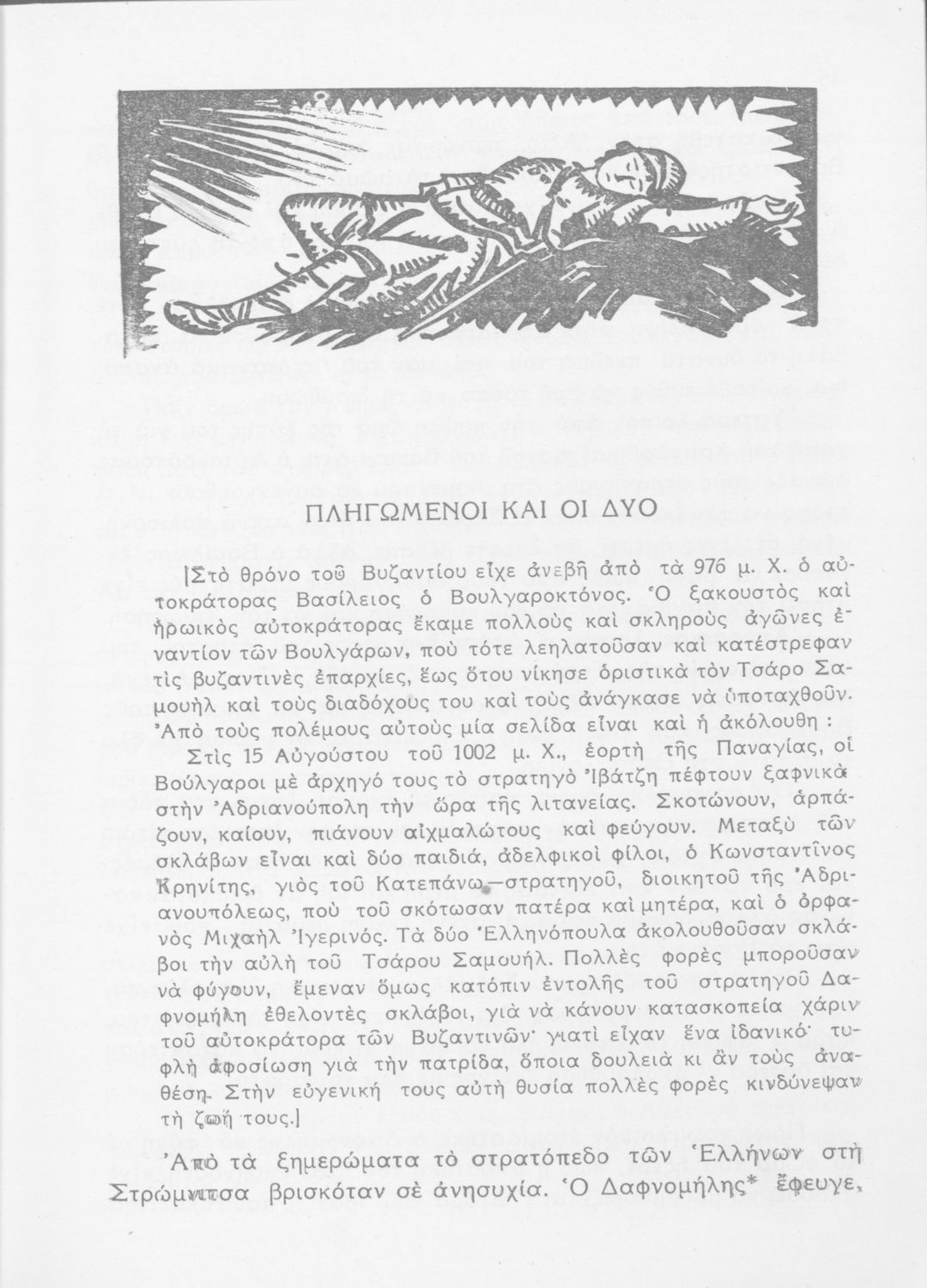 Σχολικό εγχειρίδιο Νέων Ελληνικών Δ΄ Γυμνασίου και Β΄ Αστικού Σχολείου που περιέχει πεζά και ποιήματα Ελλήνων συγγραφέων εμπνευσμένα από τη θρησκευτική και κοινωνική ζωή, την ελληνική μυθολογία, την αρχαία και σύγχρονη ελληνική ιστορία, και την ελληνική φύση. Περιέχει παράρτημα με μεταφράσεις κειμένων αρχαίων ελλήνων συγγραφέων και αποσπάσματα από τη μεσαιωνική γραμματεία, βιογραφίες των συγγραφέων και λεξιλόγιο.