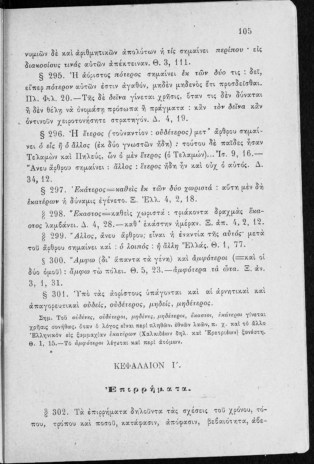 Σχολικό εγχειρίδιο Αρχαίων Ελληνικών για τα Ελληνικά Σχολεία, Παρθεναγωγεία και Γυμνάσια που περιέχει τους κανόνες γραμματικής και είναι χωρισμένο σε φθογγολογικό, τυπολογικό και ετυμολογικό μέρος.