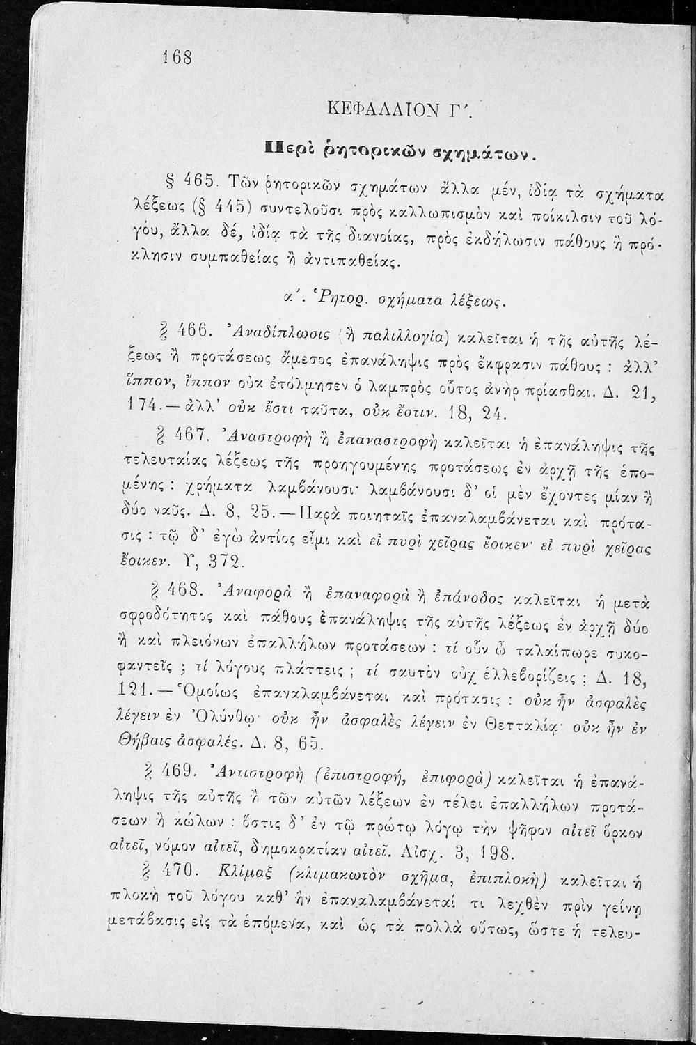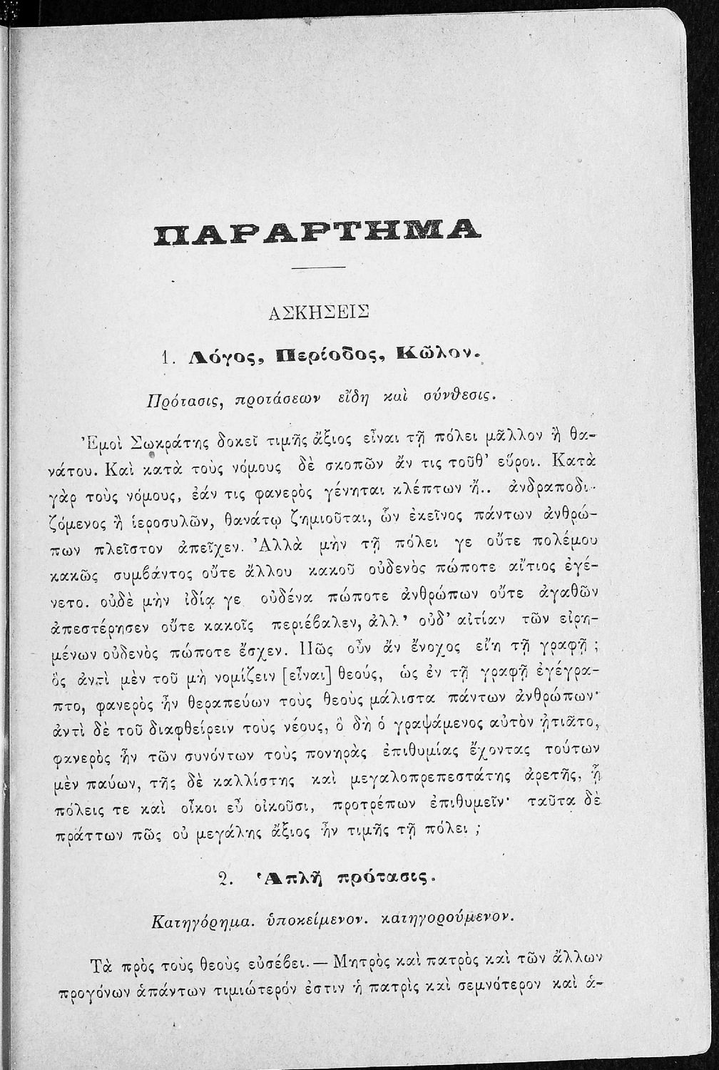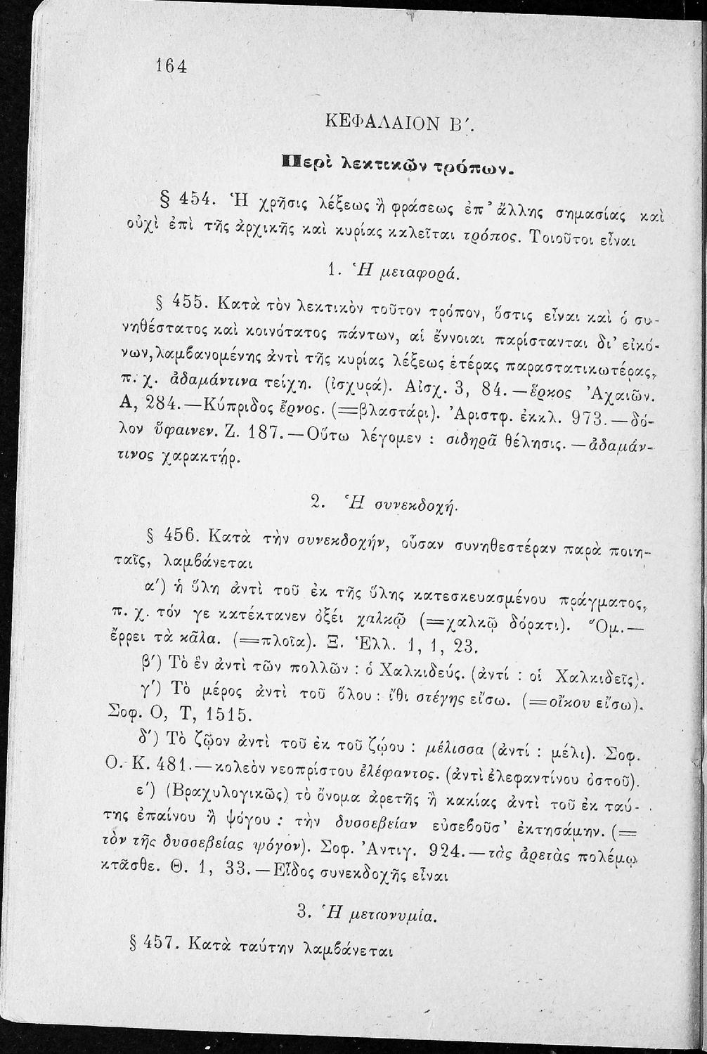Σχολικό εγχειρίδιο Αρχαίων Ελληνικών για τα Ελληνικά Σχολεία, Παρθεναγωγεία και Γυμνάσια που περιέχει τους κανόνες γραμματικής και είναι χωρισμένο σε φθογγολογικό, τυπολογικό και ετυμολογικό μέρος.