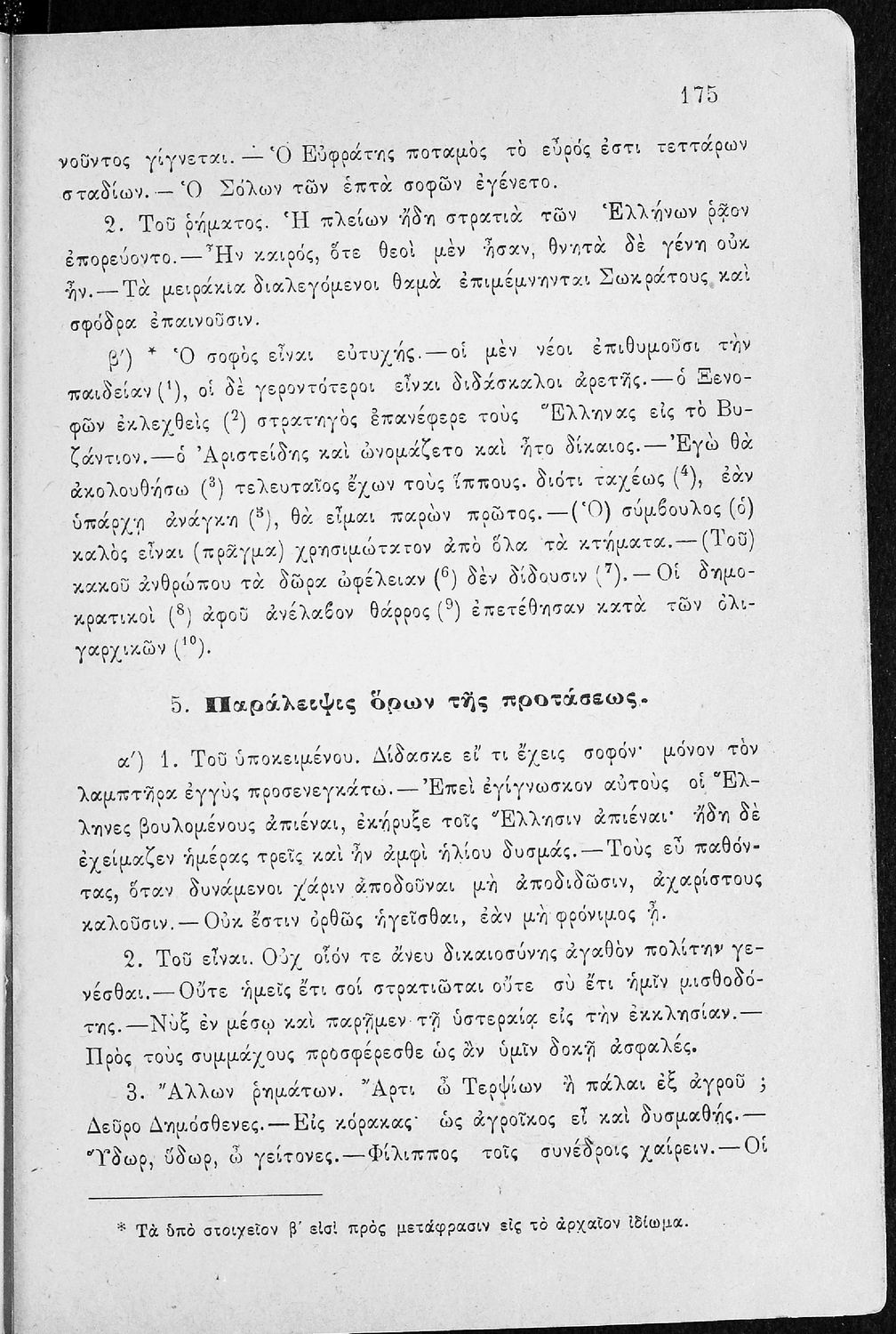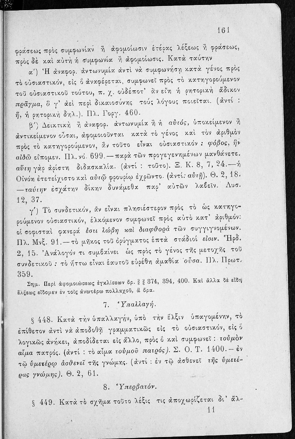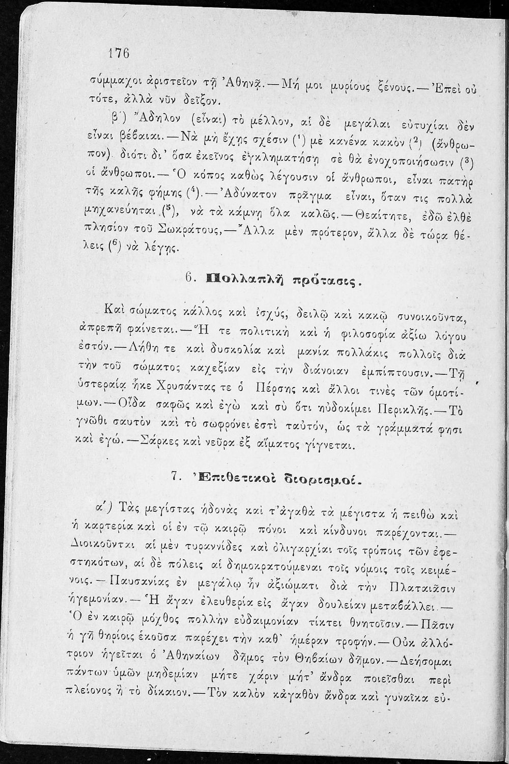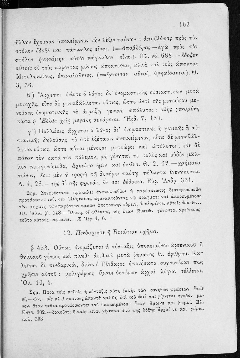 Σχολικό εγχειρίδιο Αρχαίων Ελληνικών για τα Ελληνικά Σχολεία, Παρθεναγωγεία και Γυμνάσια που περιέχει τους κανόνες γραμματικής και είναι χωρισμένο σε φθογγολογικό, τυπολογικό και ετυμολογικό μέρος.
