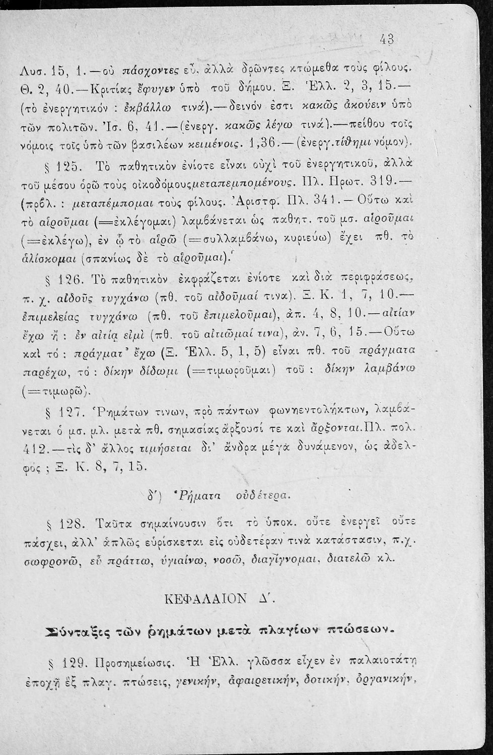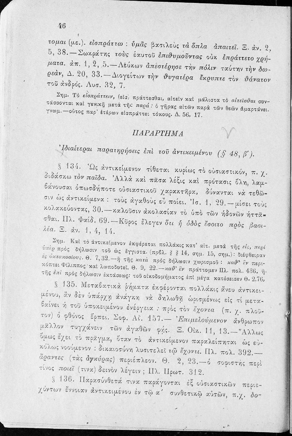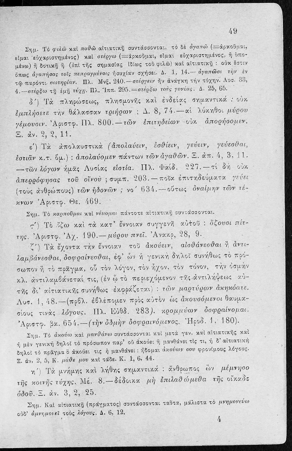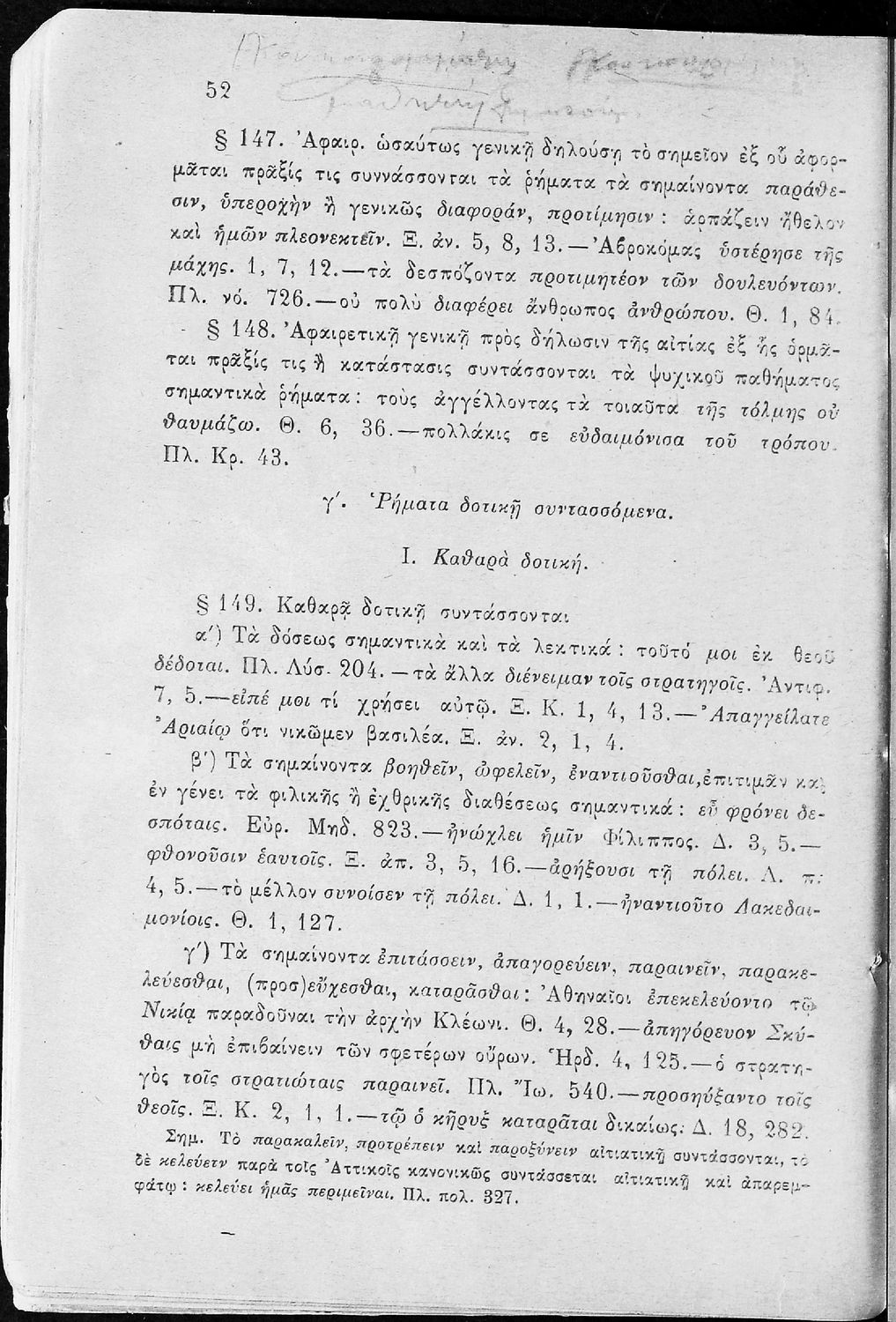 Σχολικό εγχειρίδιο Αρχαίων Ελληνικών για τα Ελληνικά Σχολεία, Παρθεναγωγεία και Γυμνάσια που περιέχει τους κανόνες γραμματικής και είναι χωρισμένο σε φθογγολογικό, τυπολογικό και ετυμολογικό μέρος.