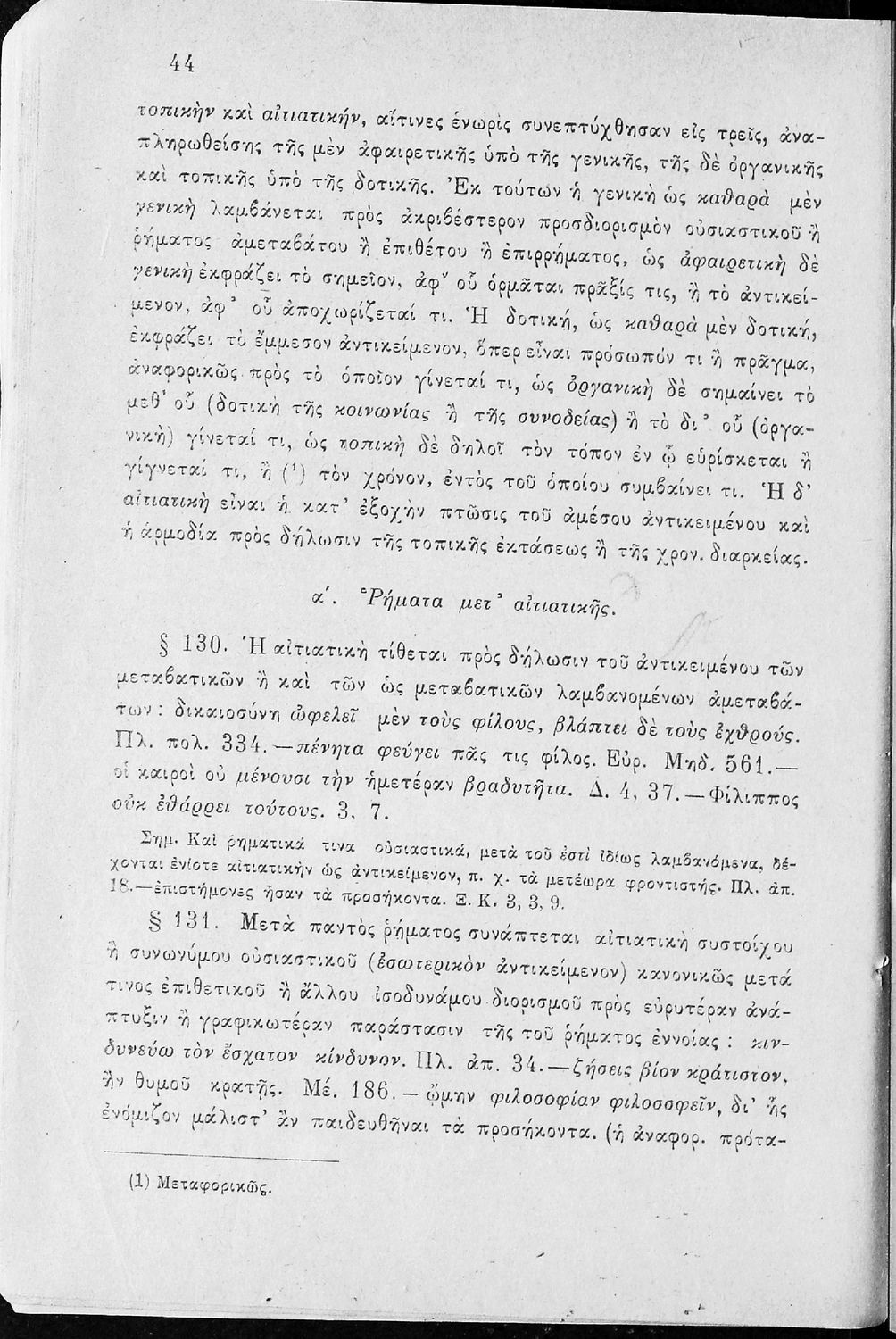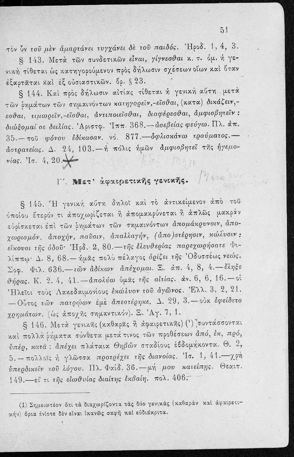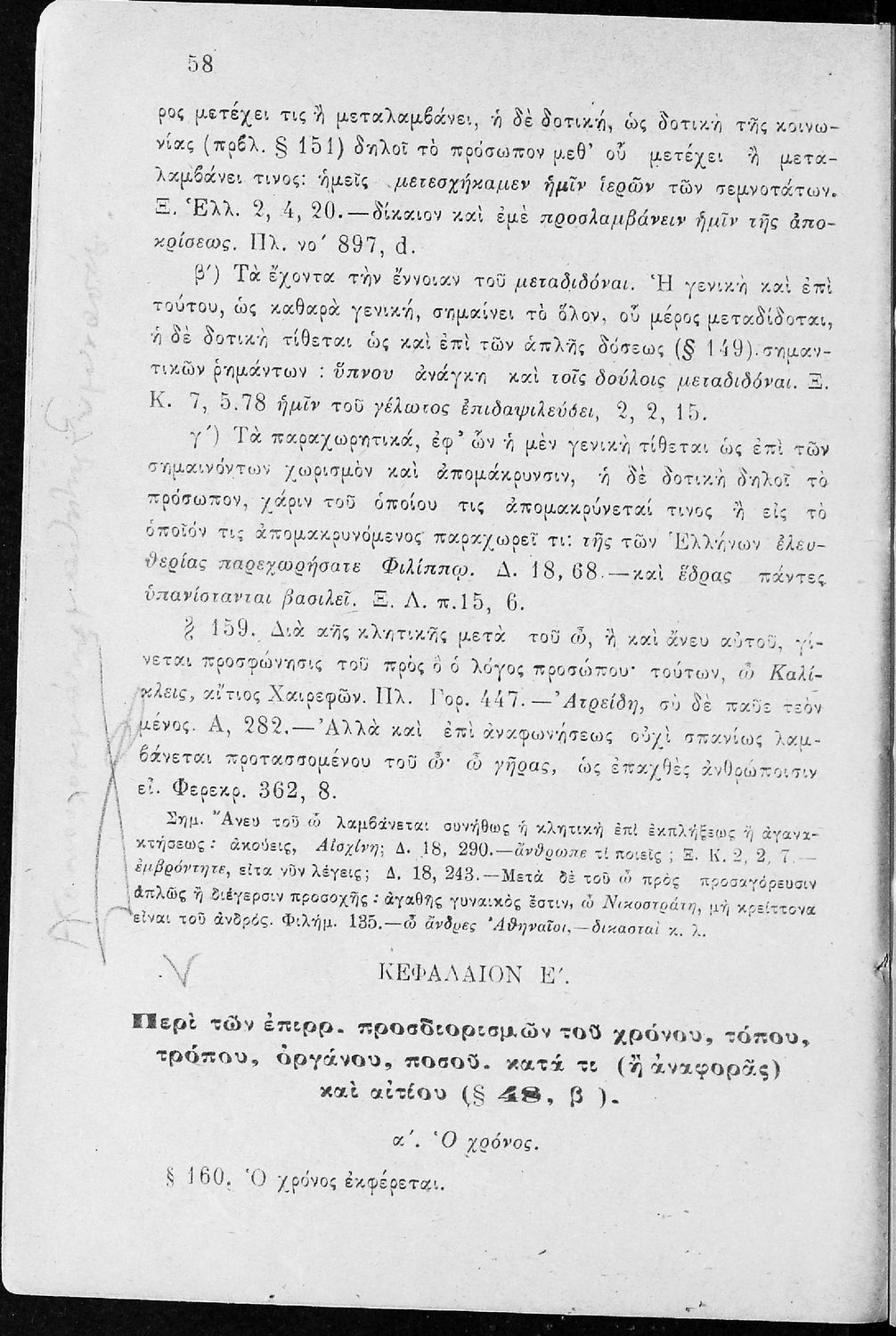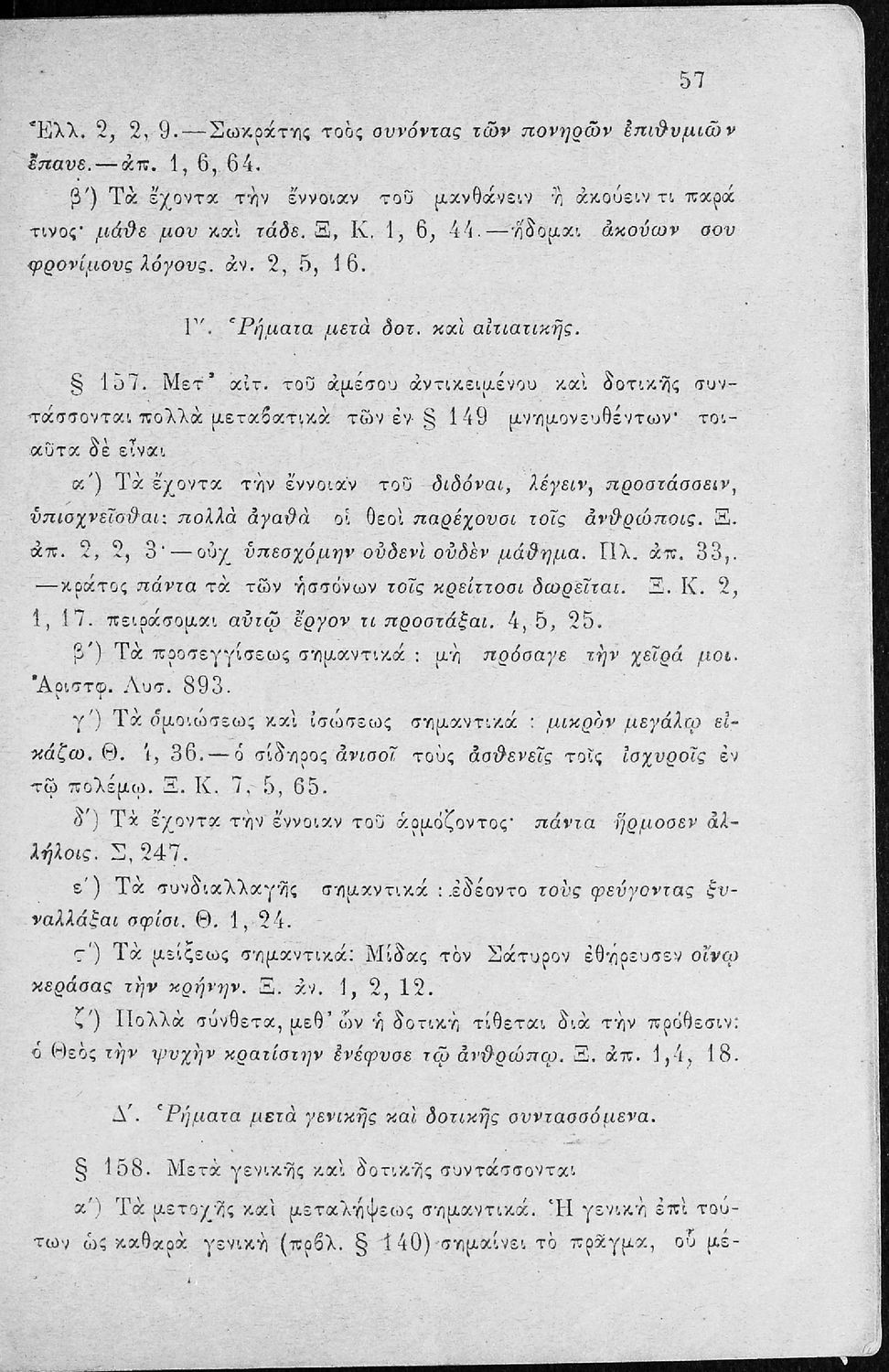 Σχολικό εγχειρίδιο Αρχαίων Ελληνικών για τα Ελληνικά Σχολεία, Παρθεναγωγεία και Γυμνάσια που περιέχει τους κανόνες γραμματικής και είναι χωρισμένο σε φθογγολογικό, τυπολογικό και ετυμολογικό μέρος.