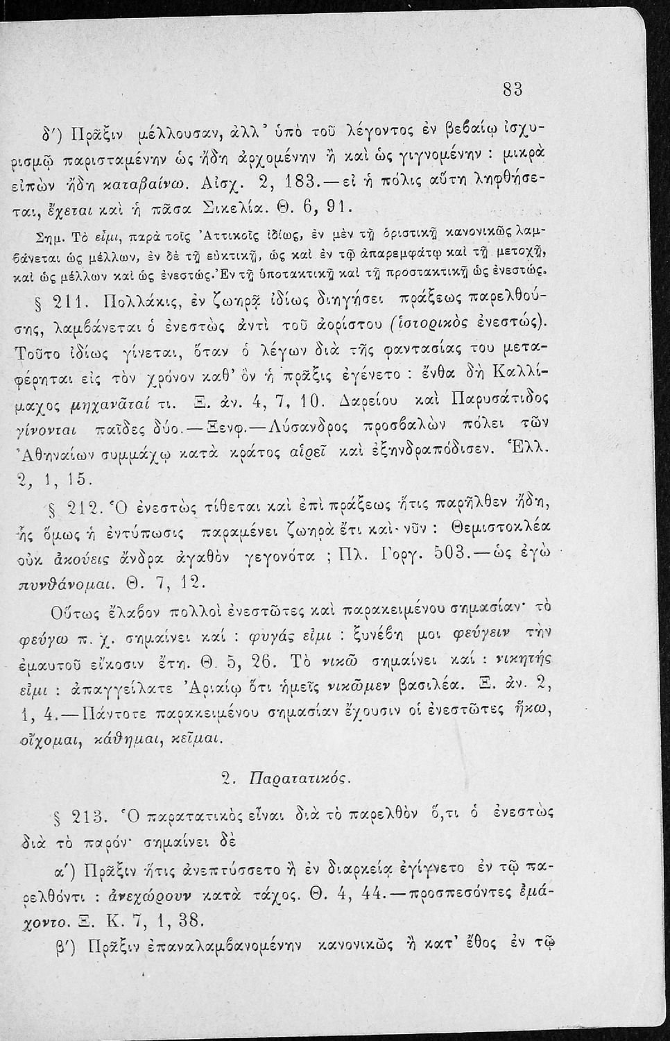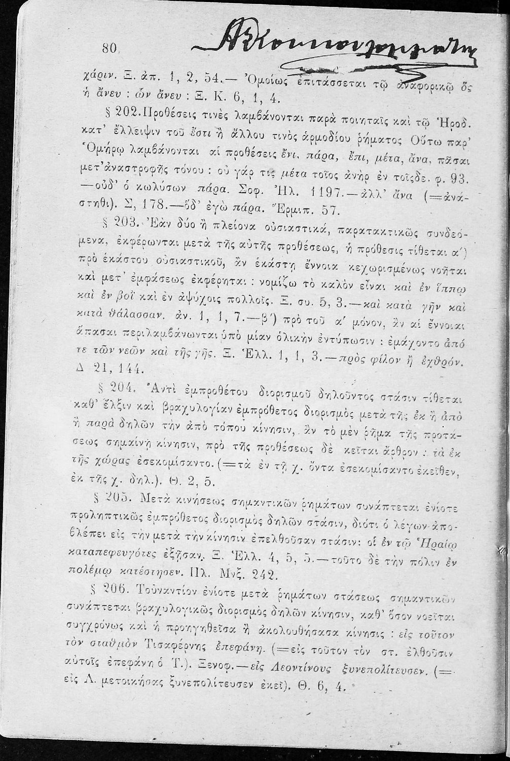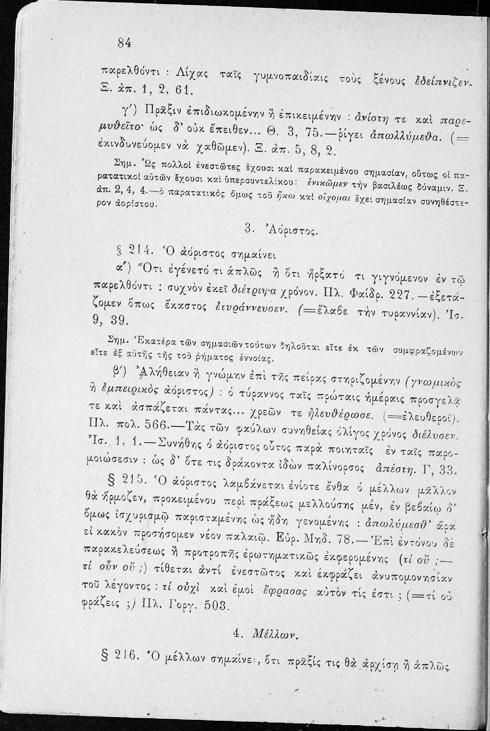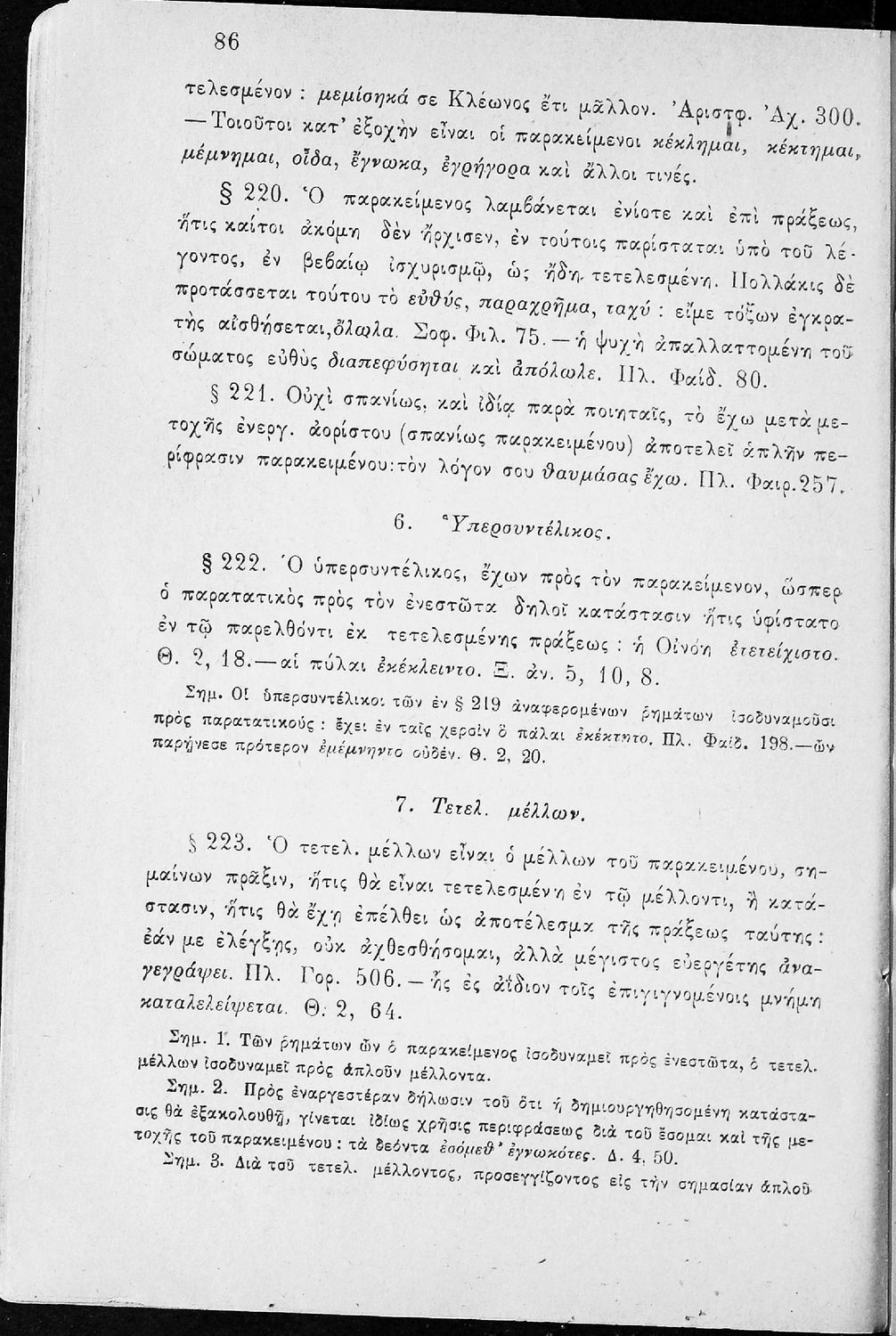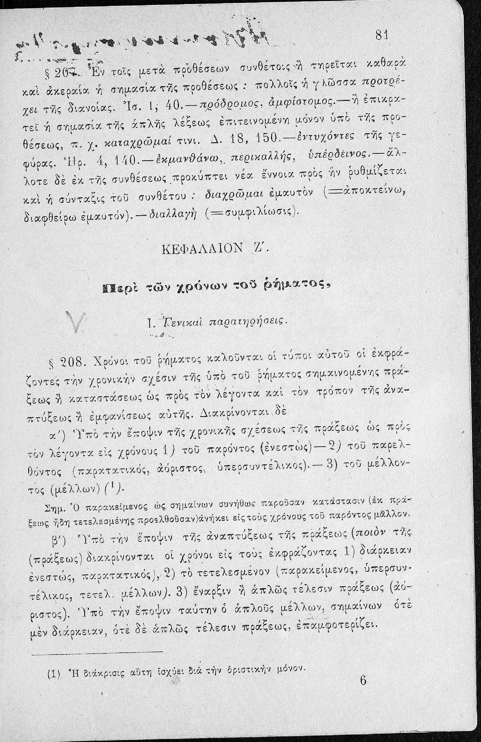 Σχολικό εγχειρίδιο Αρχαίων Ελληνικών για τα Ελληνικά Σχολεία, Παρθεναγωγεία και Γυμνάσια που περιέχει τους κανόνες γραμματικής και είναι χωρισμένο σε φθογγολογικό, τυπολογικό και ετυμολογικό μέρος.