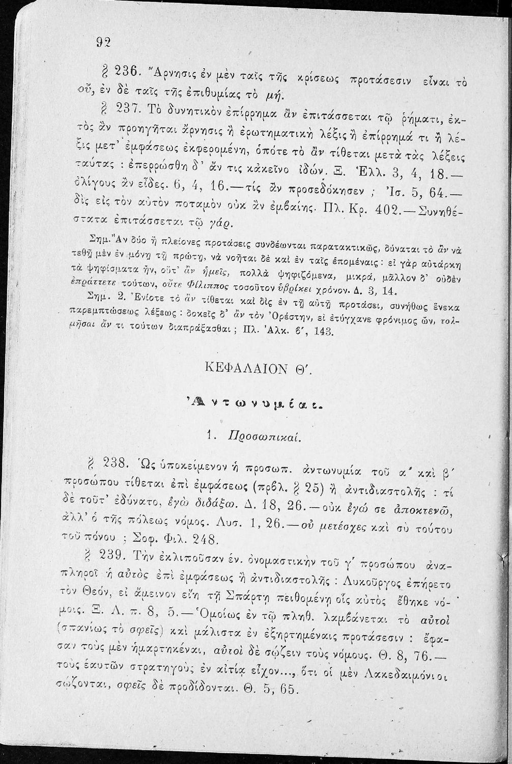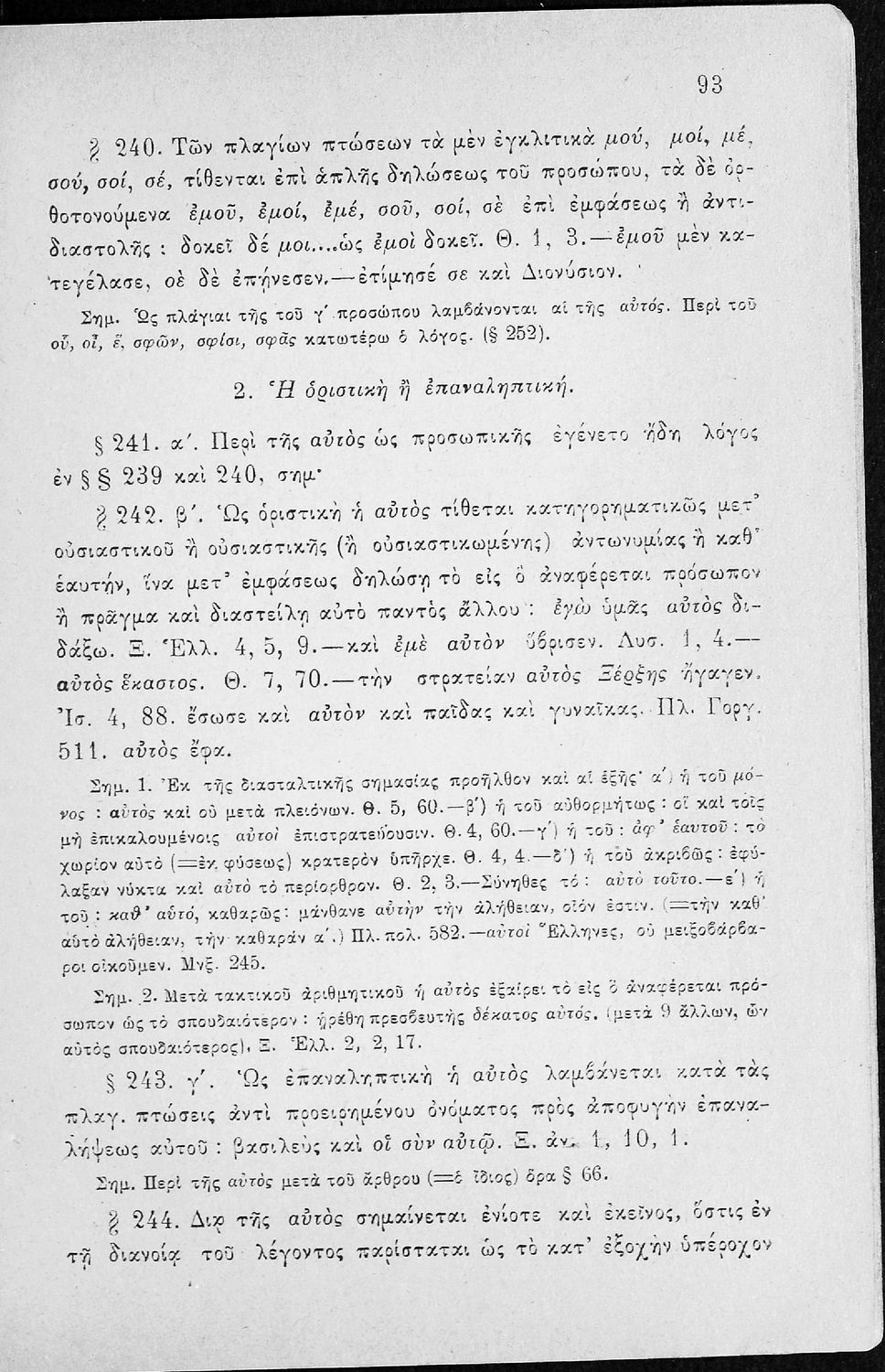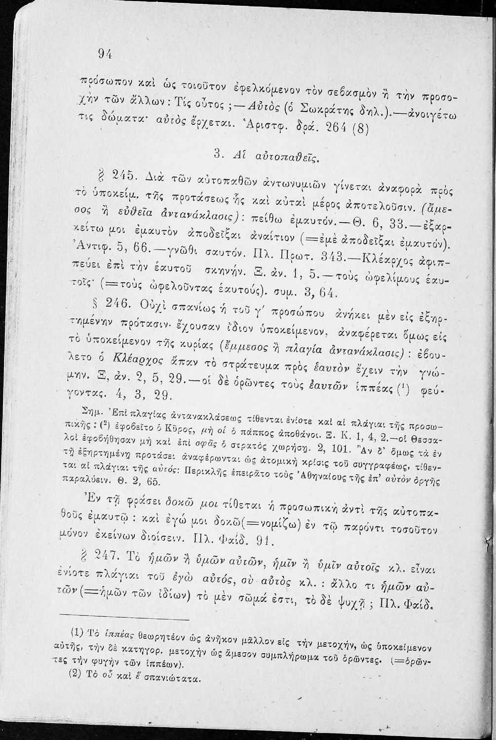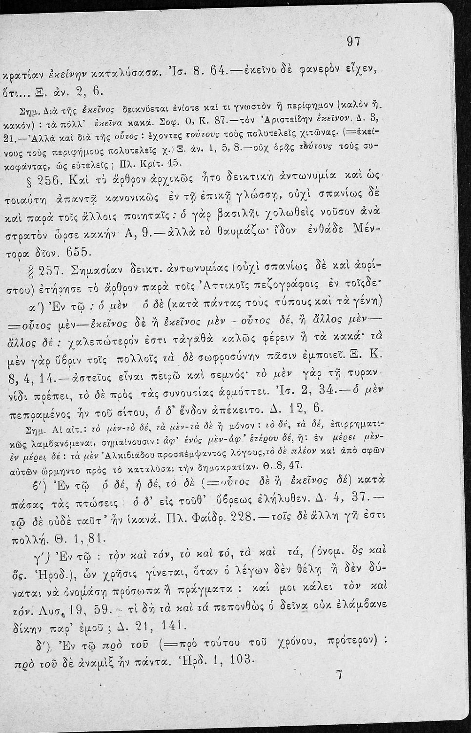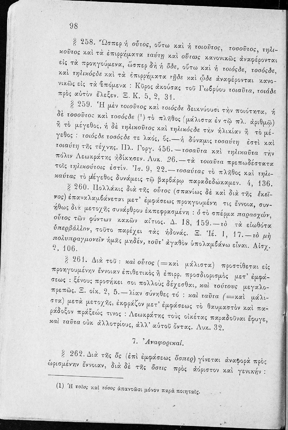 Σχολικό εγχειρίδιο Αρχαίων Ελληνικών για τα Ελληνικά Σχολεία, Παρθεναγωγεία και Γυμνάσια που περιέχει τους κανόνες γραμματικής και είναι χωρισμένο σε φθογγολογικό, τυπολογικό και ετυμολογικό μέρος.