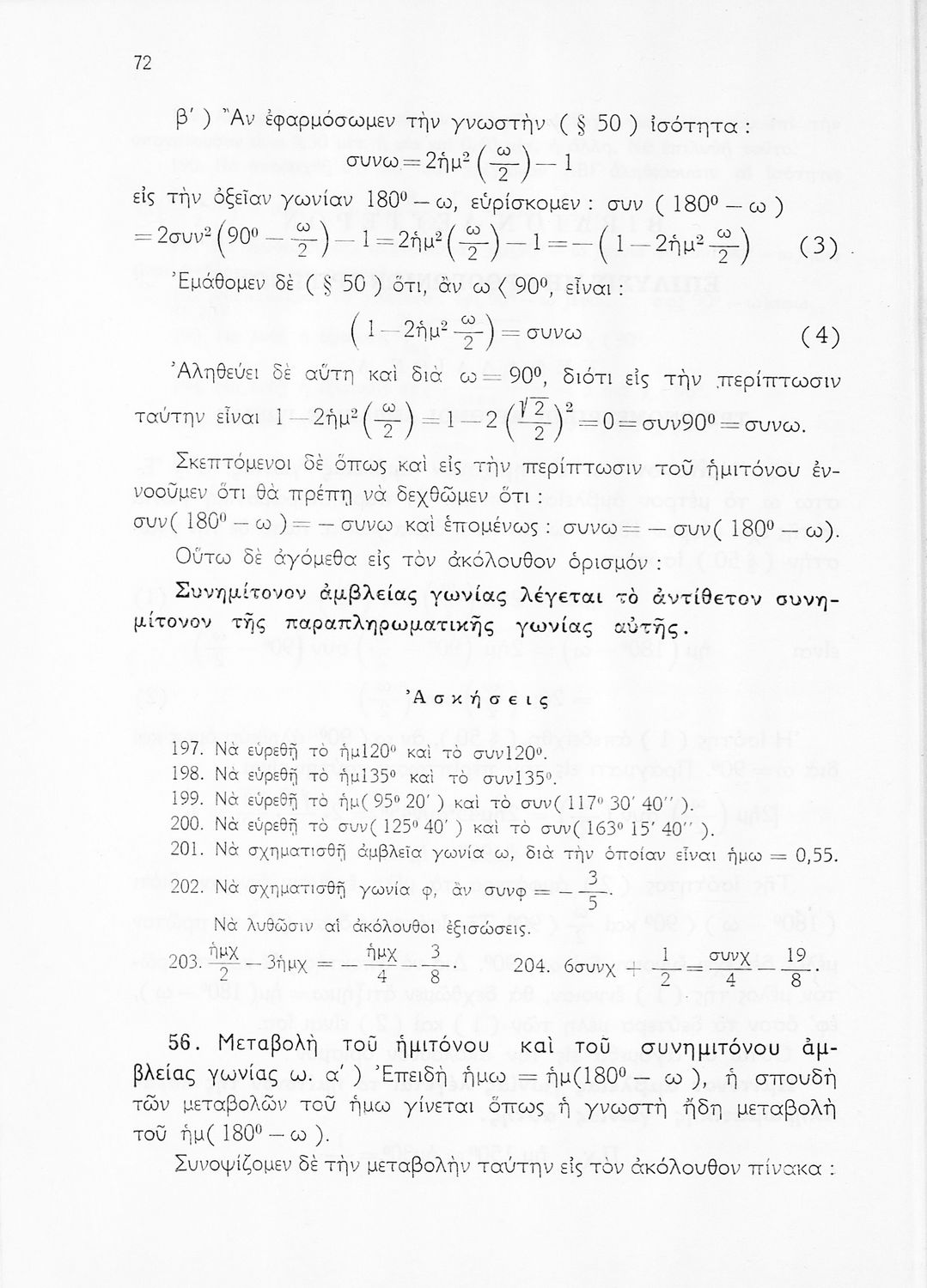Παρουσίαση περιεχομένου: Σχολικό εγχειρίδιο Τριγωνομετρίας για την Η' Γυμνασίου που περιλαμβάνει θεωρία και ασκήσεις.