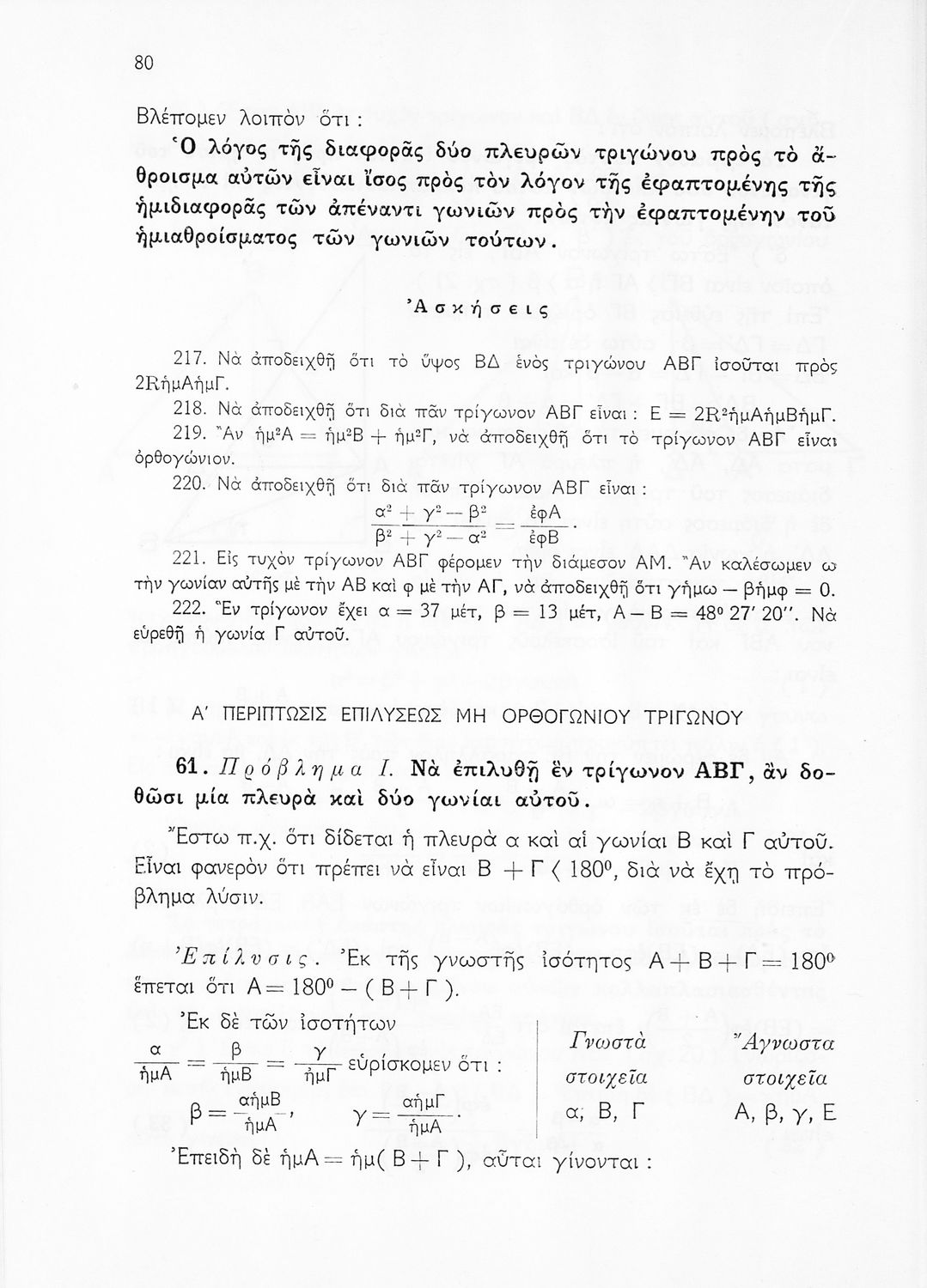 Τίτλος: Τριγωνομετρία δια την Η΄ τάξιν των Γυμνασίων