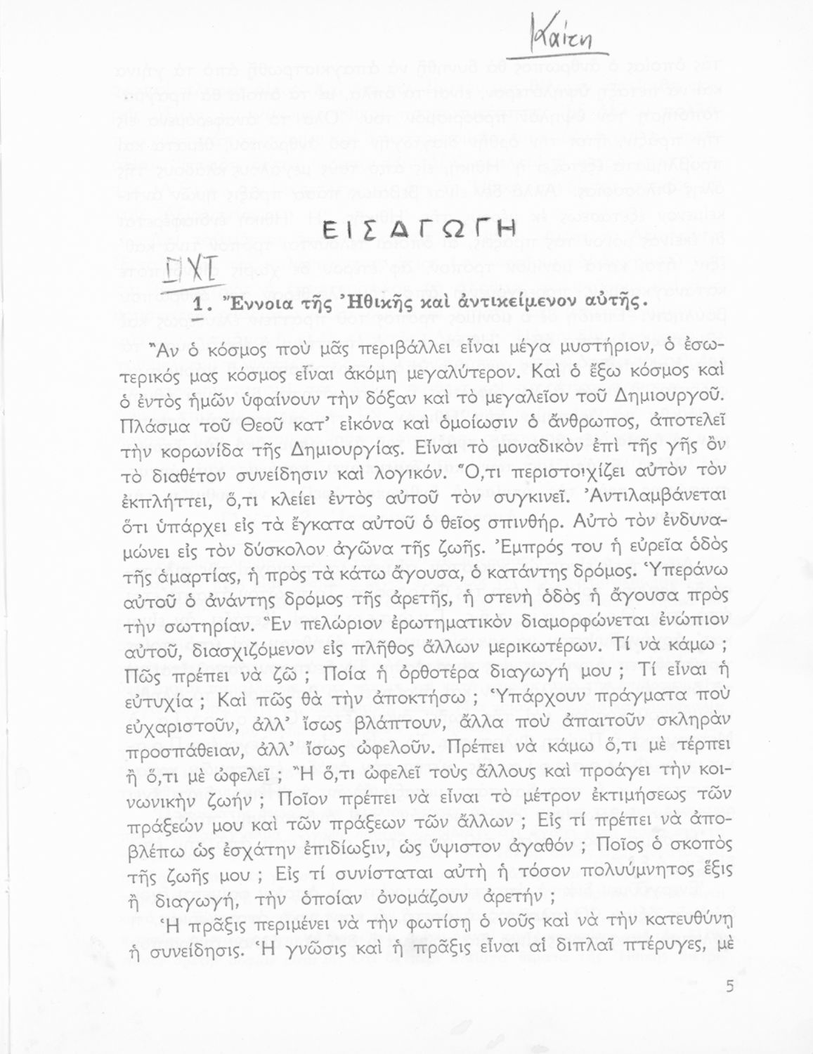 Τάξη:  Ε' Γυμνασίου παλαιού τύπου