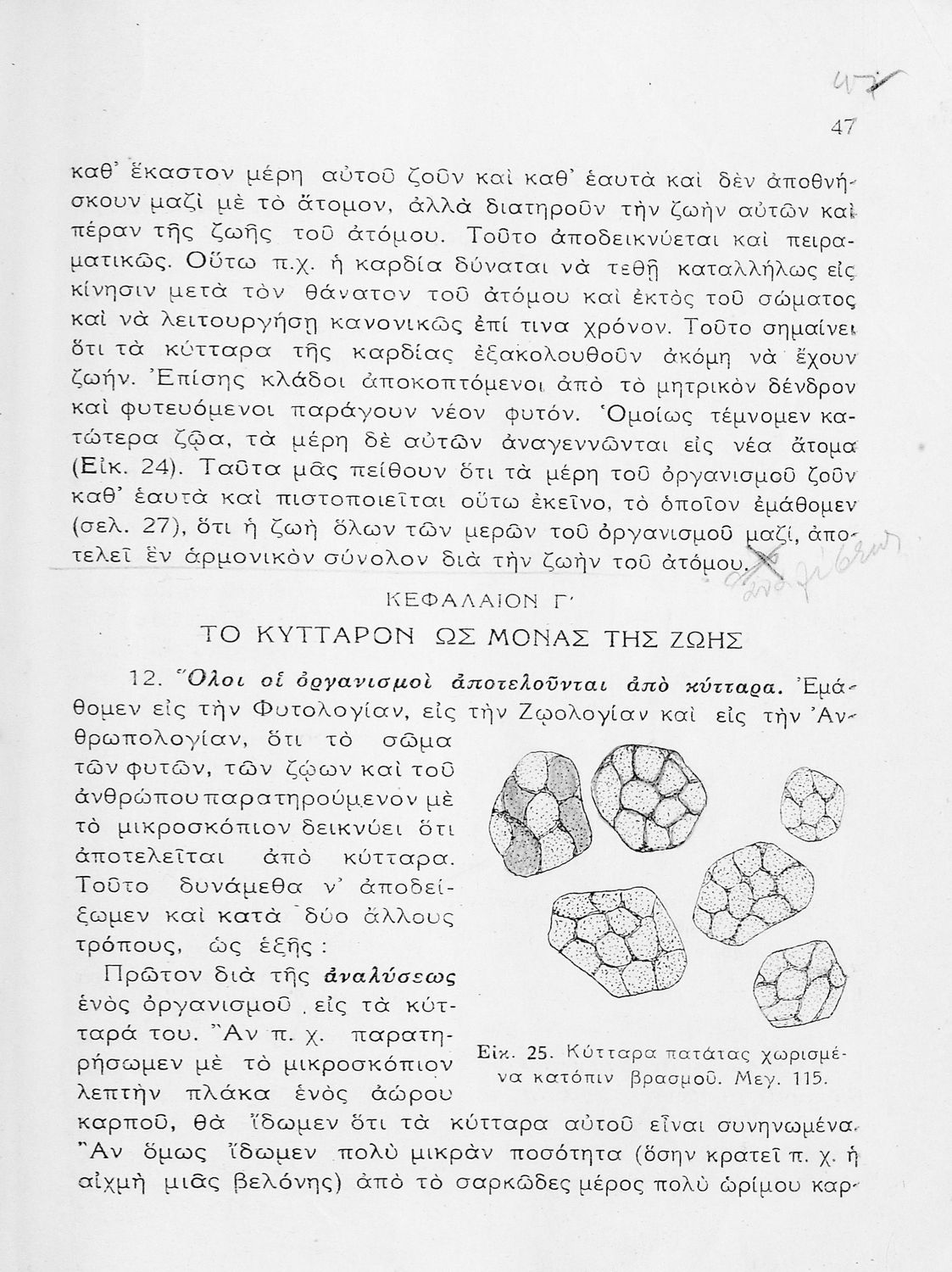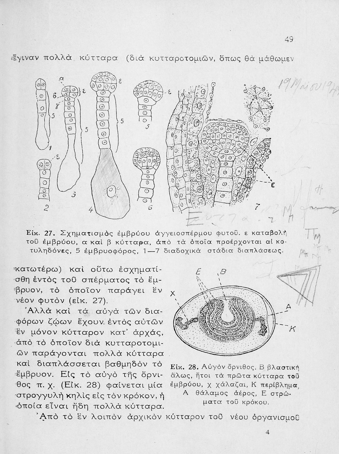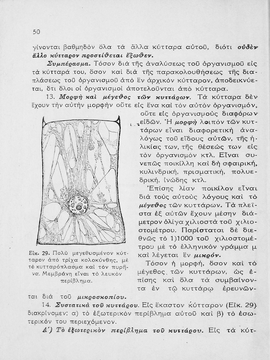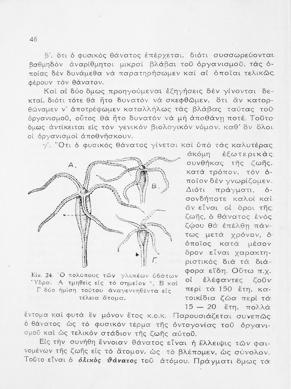 Βαθμίδα εκπαίδευσης: Δευτεροβάθμια Τάξη: Δ' Γυμνασίου παλαιού τύπου / ΣΤ΄ Γυμνασίου νέου τύπου Μάθημα: Βιολογία Γλώσσα: Απλή καθαρεύουσα Παρουσίαση περιεχομένου: Σχολικό εγχειρίδιο Βιολογίας Δ΄ Γυμνασίου που εστιάζει στις συνθήκες γέννησης, μεταβολής και θανάτου των έμβιων οργανισμών. Ο συγγραφέας ήταν καθηγητής της γενικής Βιολογίας στο Πανεπιστήμιο Αθηνών. |