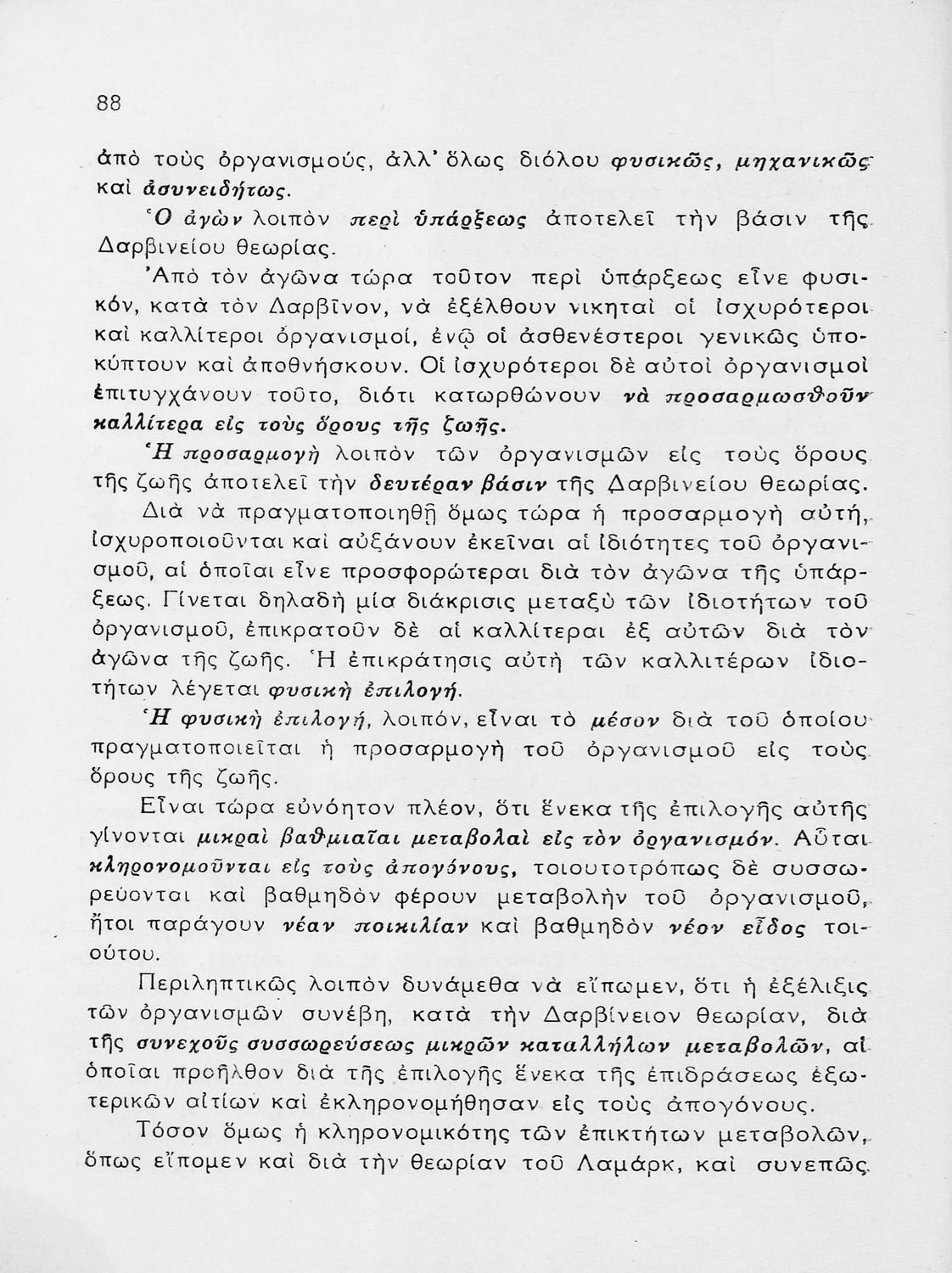 Σχολικό εγχειρίδιο Βιολογίας Δ΄ Γυμνασίου που εστιάζει στις συνθήκες γέννησης, μεταβολής και θανάτου των έμβιων οργανισμών. Ο συγγραφέας ήταν καθηγητής της γενικής Βιολογίας στο Πανεπιστήμιο Αθηνών.