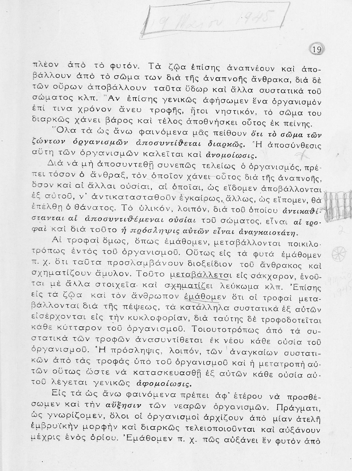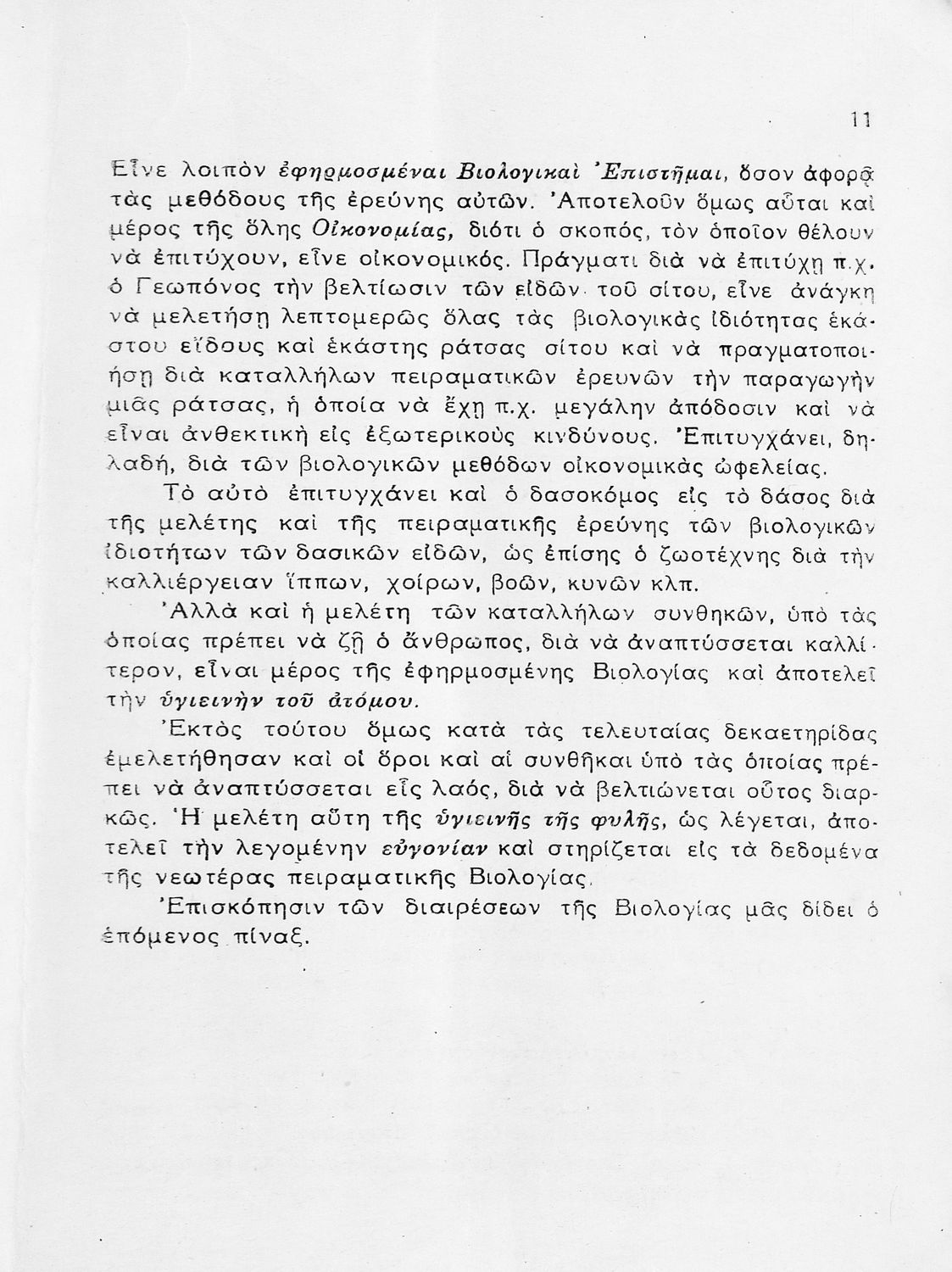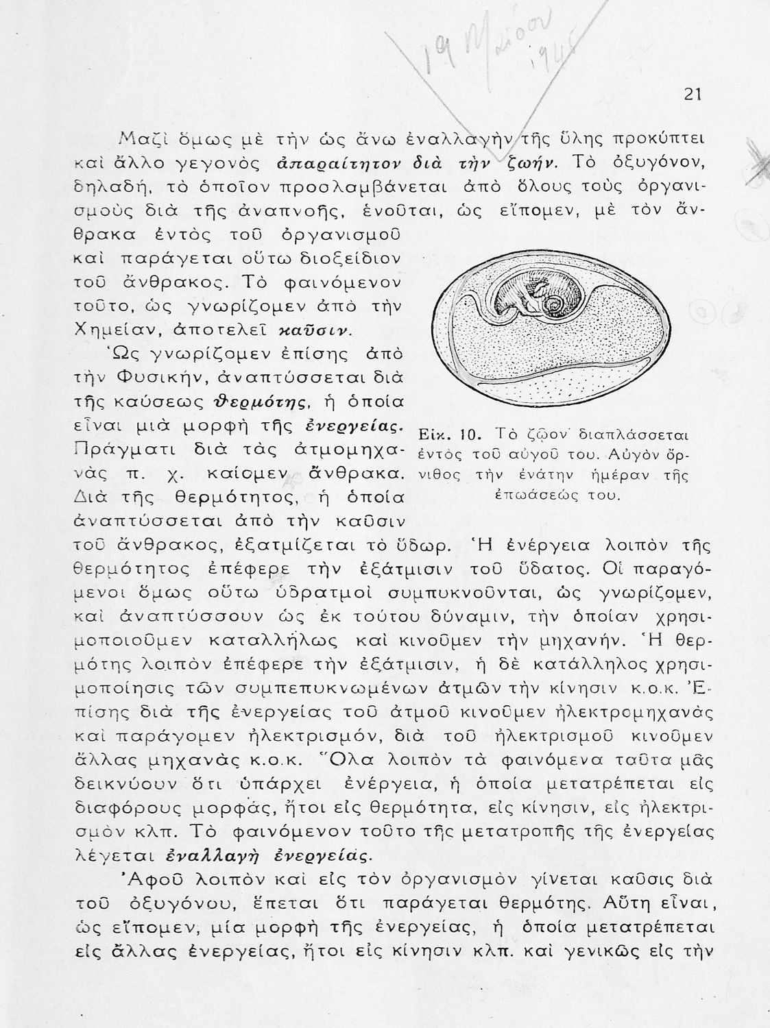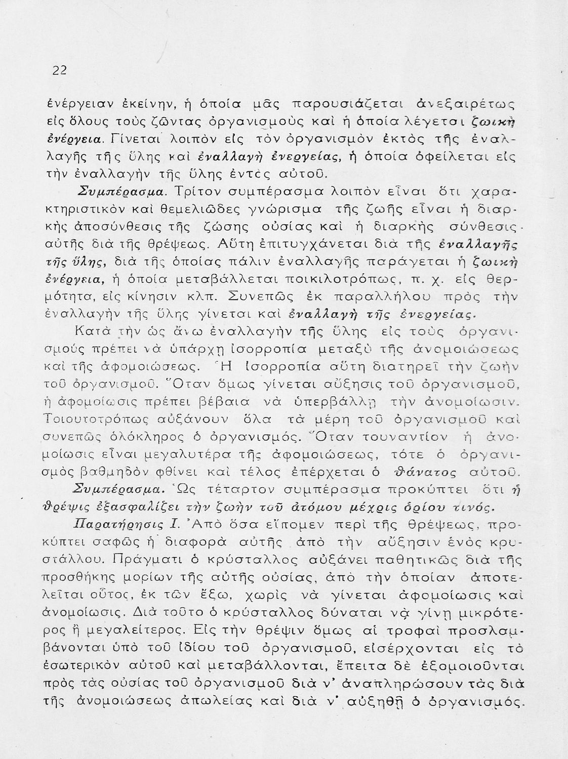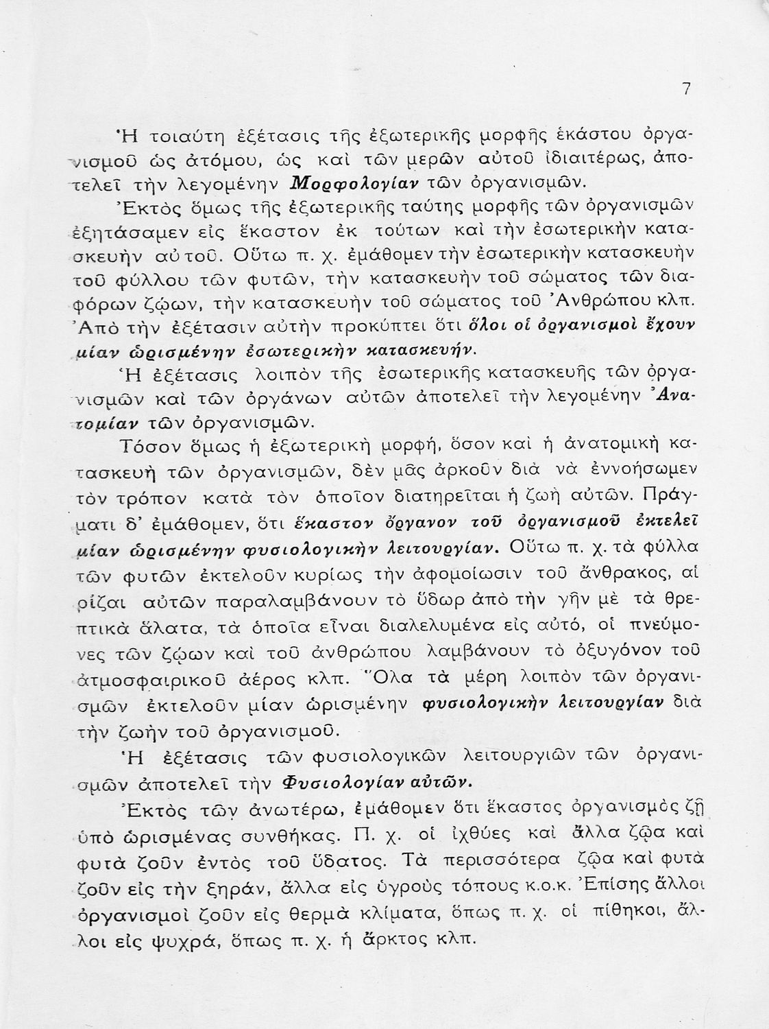 Βαθμίδα εκπαίδευσης: Δευτεροβάθμια Τάξη: Δ' Γυμνασίου παλαιού τύπου / ΣΤ΄ Γυμνασίου νέου τύπου Μάθημα: Βιολογία Γλώσσα: Απλή καθαρεύουσα Παρουσίαση περιεχομένου: Σχολικό εγχειρίδιο Βιολογίας Δ΄ Γυμνασίου που εστιάζει στις συνθήκες γέννησης, μεταβολής και θανάτου των έμβιων οργανισμών. Ο συγγραφέας ήταν καθηγητής της γενικής Βιολογίας στο Πανεπιστήμιο Αθηνών. |