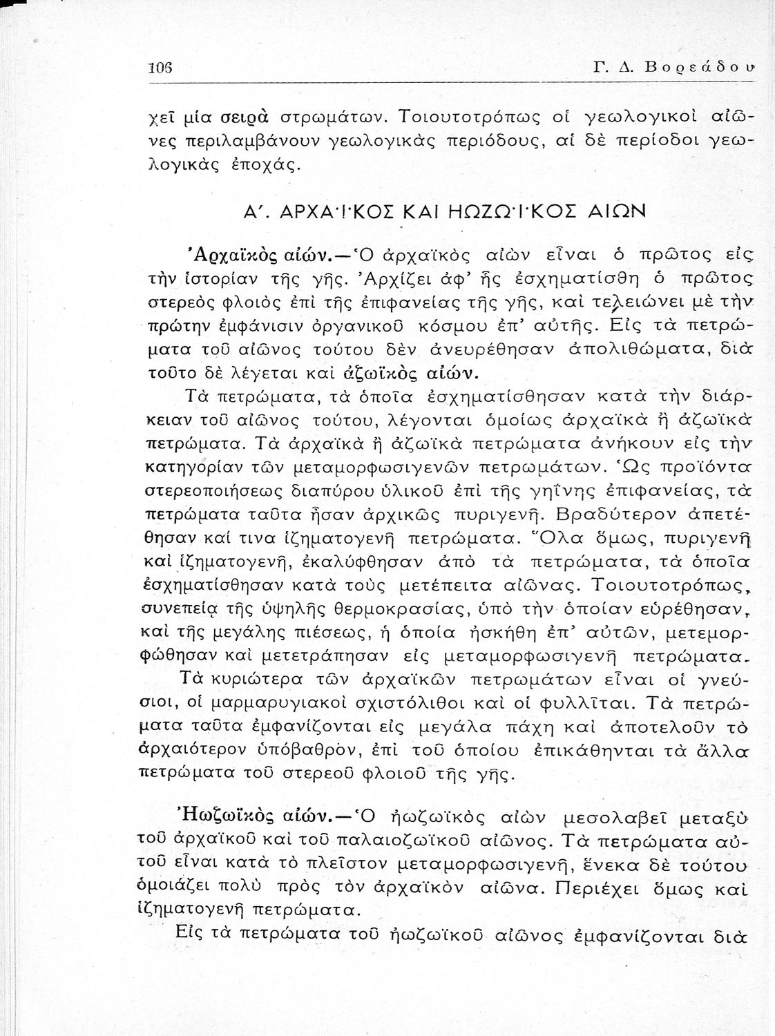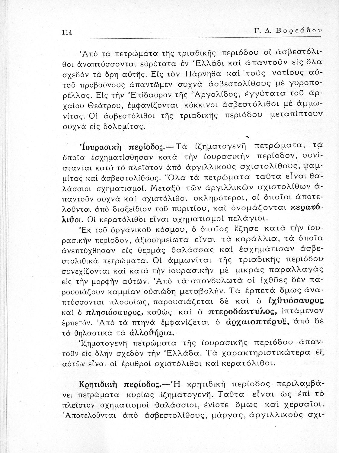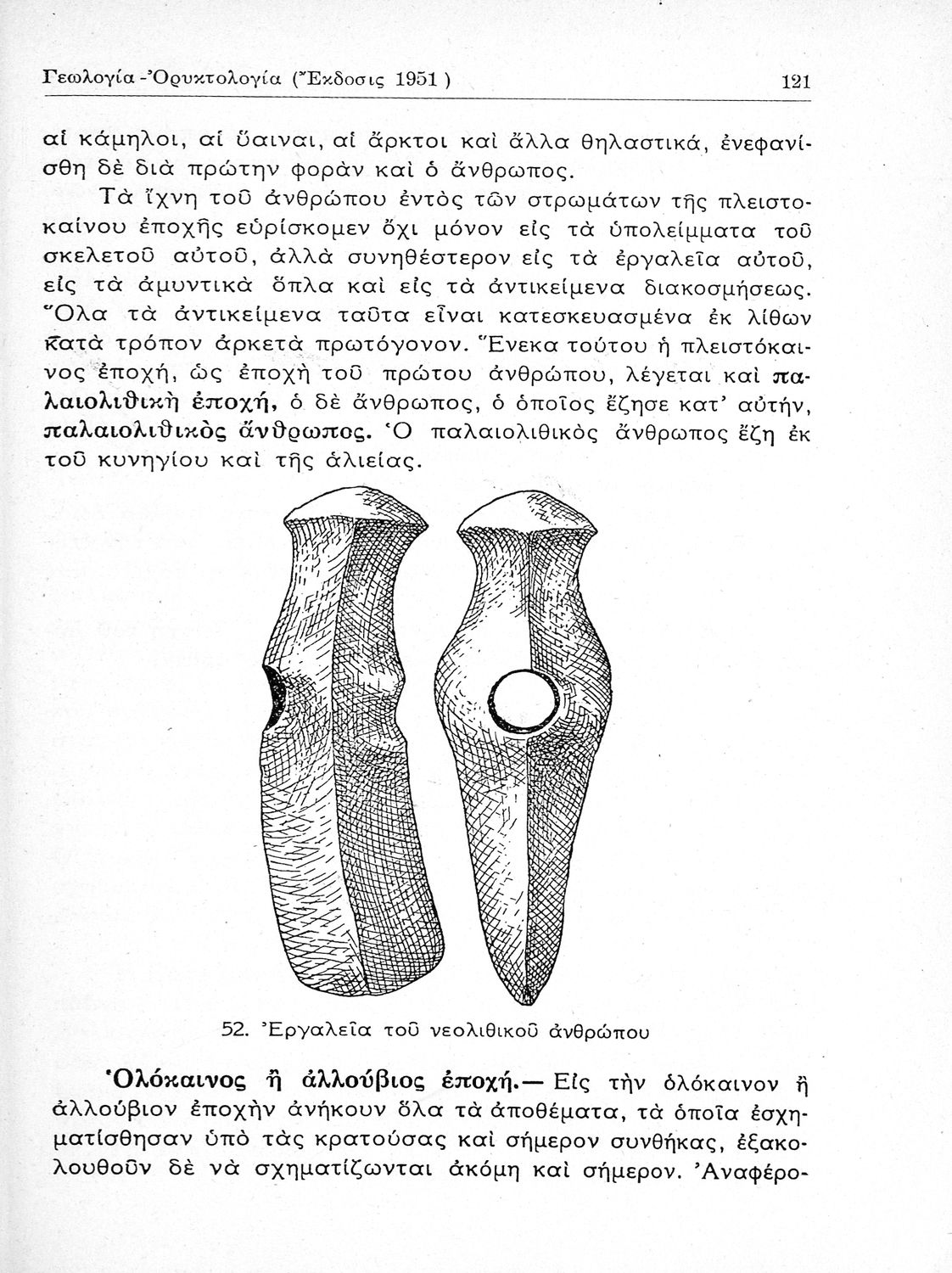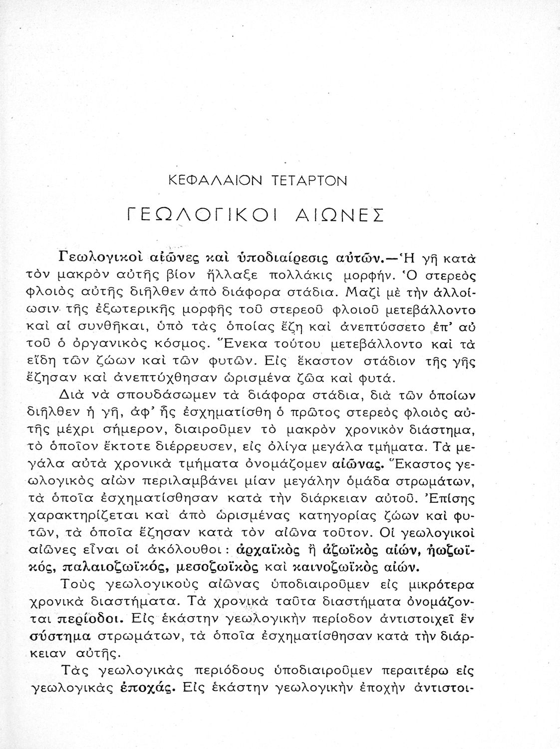 Σχολικό εγχειρίδιο Γεωλογίας/Ορυκτολογίας για την Δ΄ τάξη των Εξαταξίων Γυμνασίων που παρουσιάζει τα ορυκτά με βάση την κλάση στην οποία ανήκουν. Το τμήμα της Γεωλογίας εστιάζει στους γεωλογικούς αιώνες. Ο συγγραφέας ήταν καθηγητής στο ΕΜΠ.