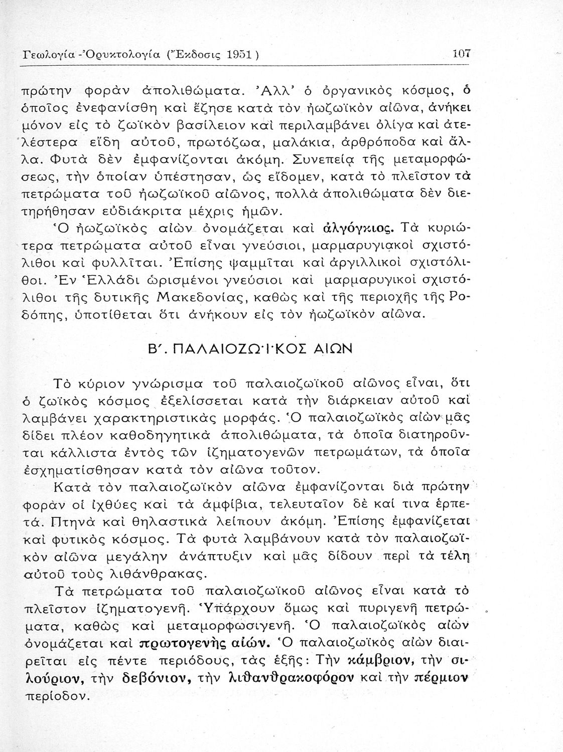 Βιβλίο Γεωλογίας/Ορυκτολογίας για την Δ΄ τάξη των Εξαταξίων Γυμνασίων που παρουσιάζει τα ορυκτά με βάση την κλάση στην οποία ανήκουν. Το τμήμα της γεωλογίας εστιάζει στους γεωλογικούς αιώνες, Ο συγγραφέας ήταν