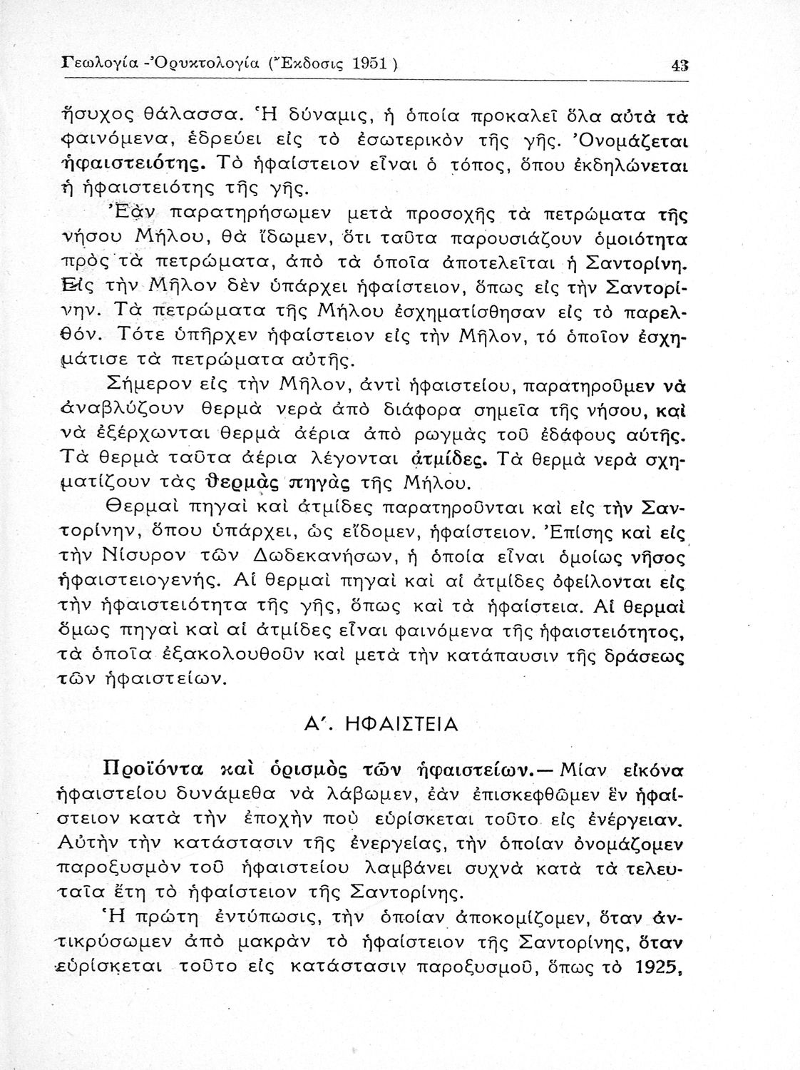 Σχολικό εγχειρίδιο Γεωλογίας/Ορυκτολογίας για την Δ΄ τάξη των Εξαταξίων Γυμνασίων που παρουσιάζει τα ορυκτά με βάση την κλάση στην οποία ανήκουν. Το τμήμα της Γεωλογίας εστιάζει στους γεωλογικούς αιώνες. Ο συγγραφέας ήταν καθηγητής στο ΕΜΠ.