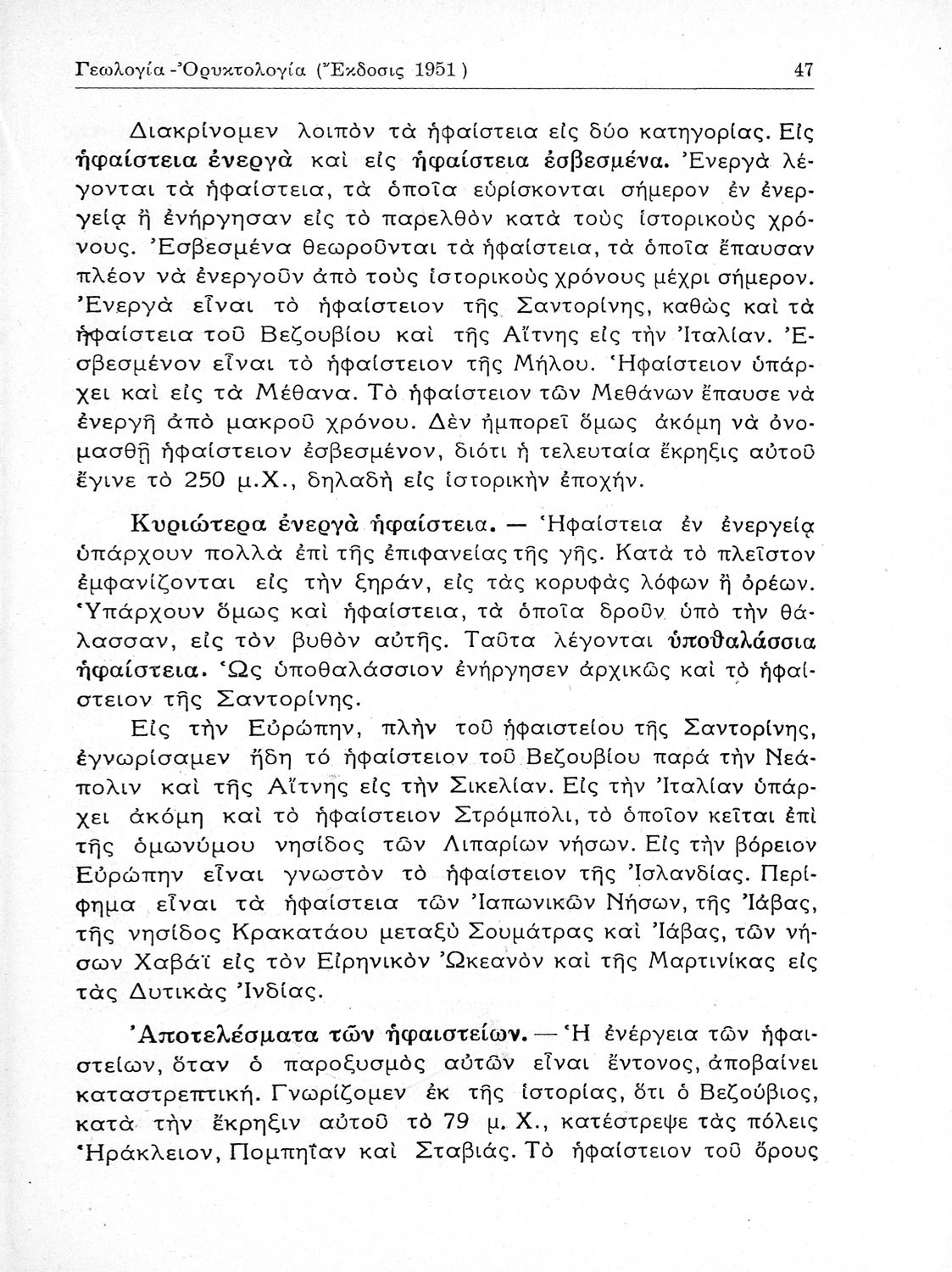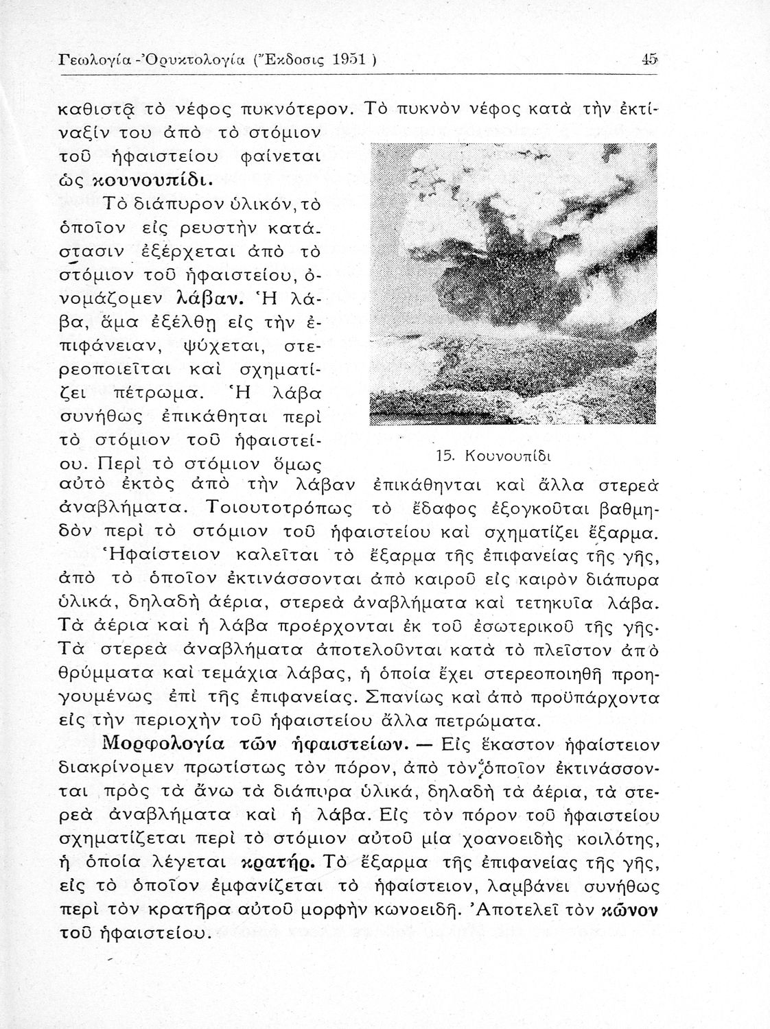 Σχολικό εγχειρίδιο Γεωλογίας και Ορυκτολογίας Β΄ Γυμνασίου που πραγματεύεται διάφορα γεωλογικά φαινόμενα, όπως τα ηφαίστεια και οι σεισμοί, και την στρωματογραφία και το γεωλογικό παρελθόν της Γης. Στο δεύτερο