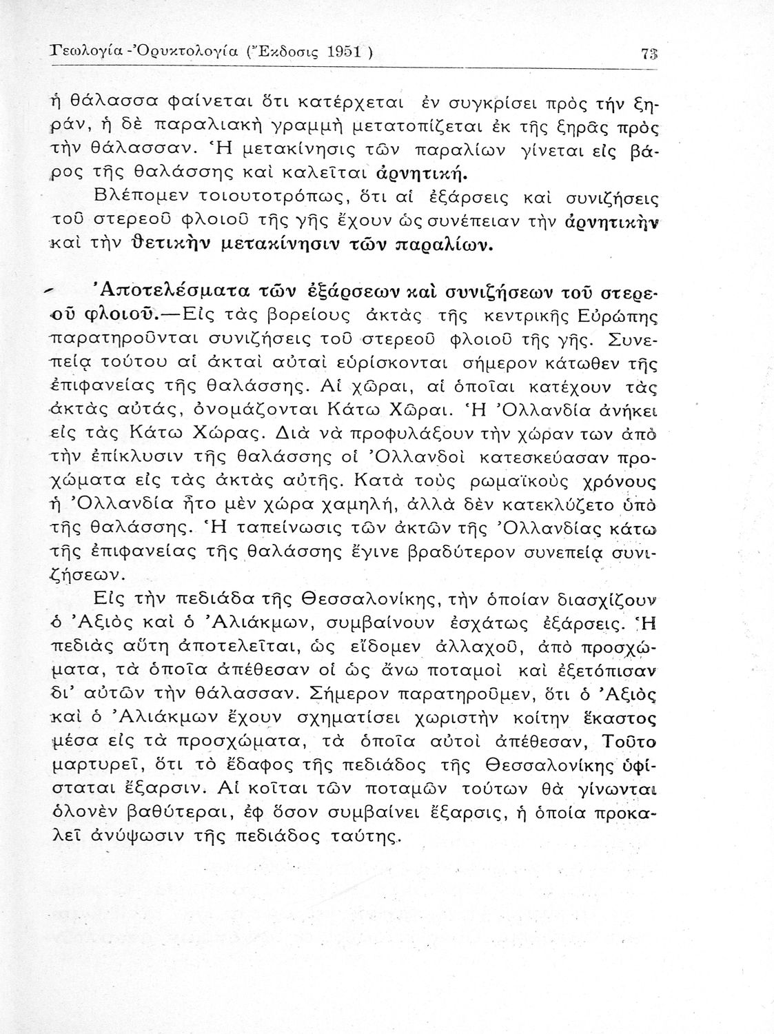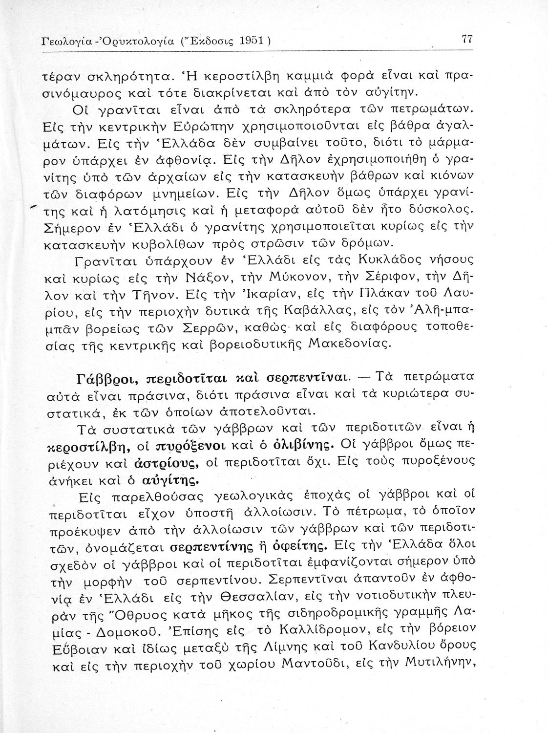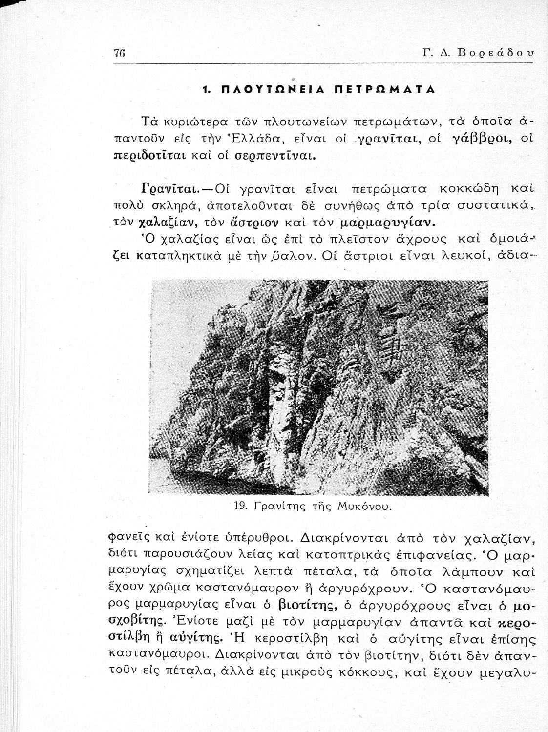 Σχολικό εγχειρίδιο Γεωλογίας/Ορυκτολογίας για την Δ΄ τάξη των Εξαταξίων Γυμνασίων που παρουσιάζει τα ορυκτά με βάση την κλάση στην οποία ανήκουν. Το τμήμα της Γεωλογίας εστιάζει στους γεωλογικούς αιώνες. Ο συγγραφέας ήταν καθηγητής στο ΕΜΠ.