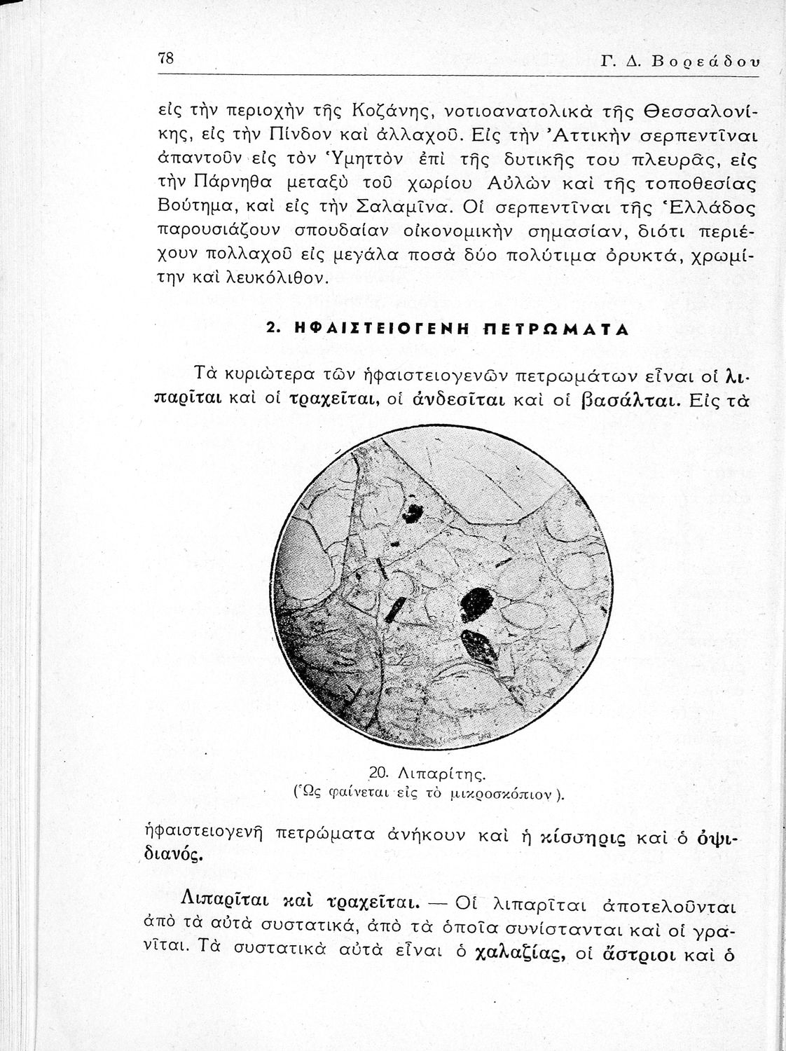 Βιβλίο Γεωλογίας/Ορυκτολογίας για την Δ΄ τάξη των Εξαταξίων Γυμνασίων που παρουσιάζει τα ορυκτά με βάση την κλάση στην οποία ανήκουν. Το τμήμα της γεωλογίας εστιάζει στους γεωλογικούς αιώνες, Ο συγγραφέας ήταν