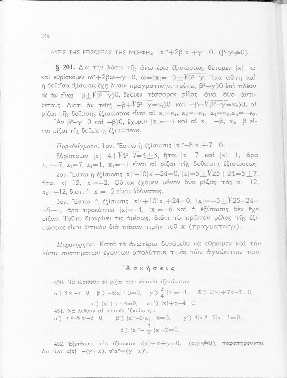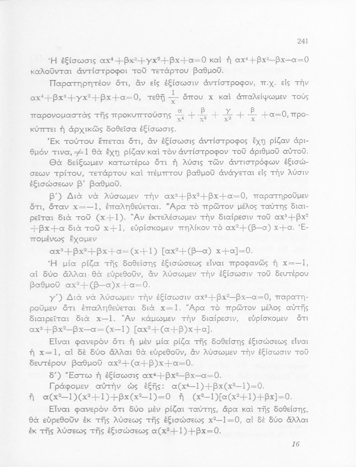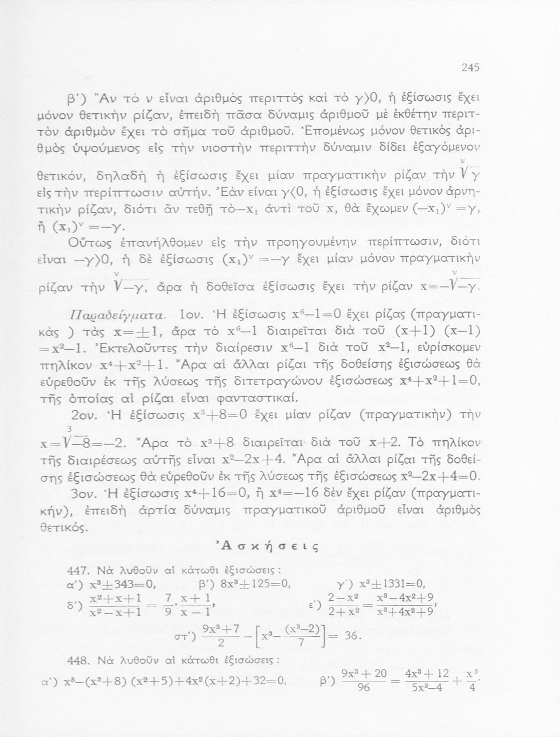 Άλγεβρα δια τας ανωτέρας τάξεις των Γυμνασίων