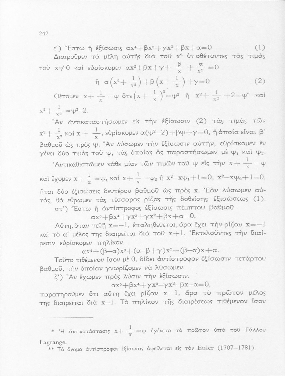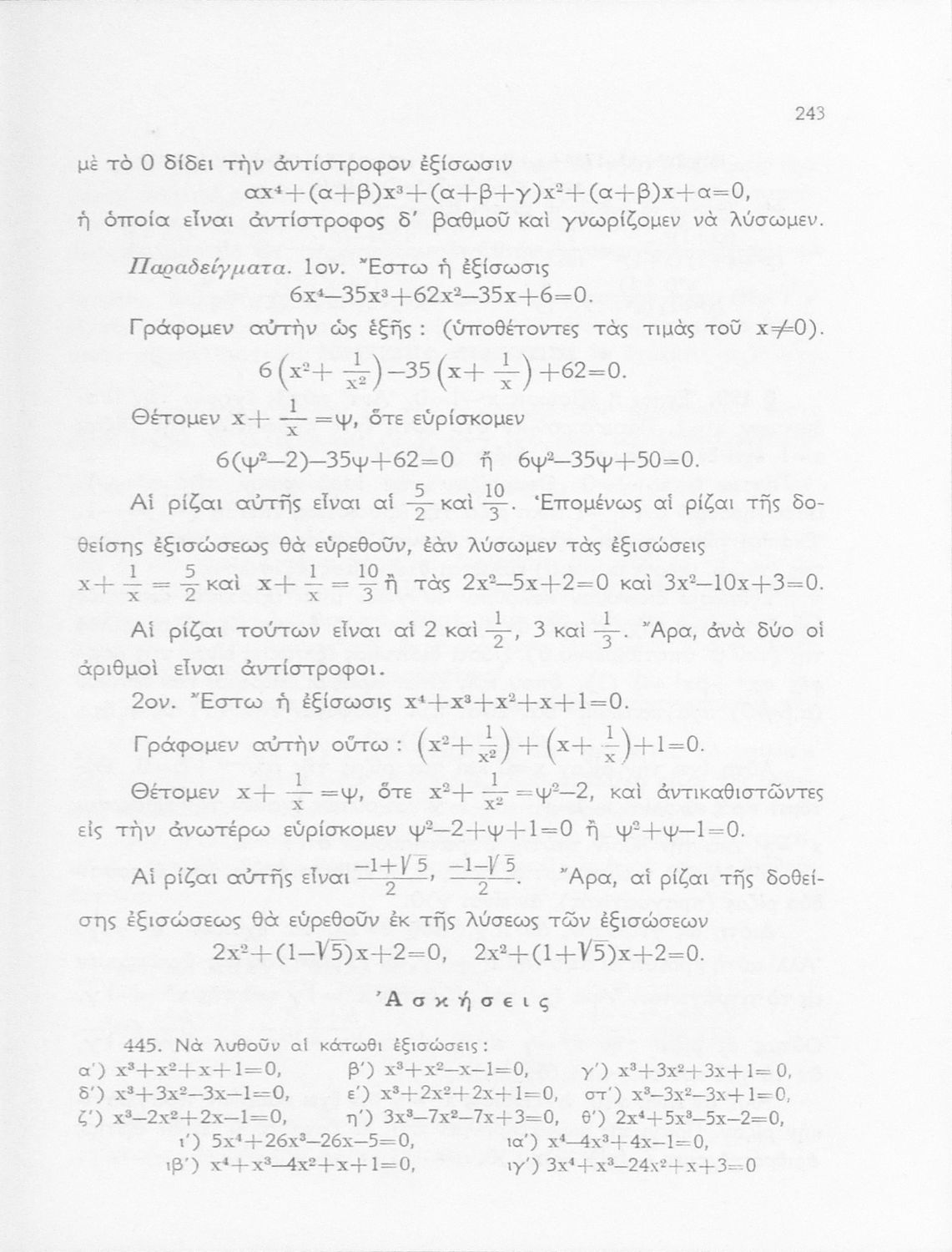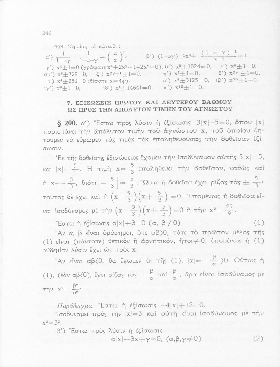 Άλγεβρα δια τας ανωτέρας τάξεις των Γυμνασίων
