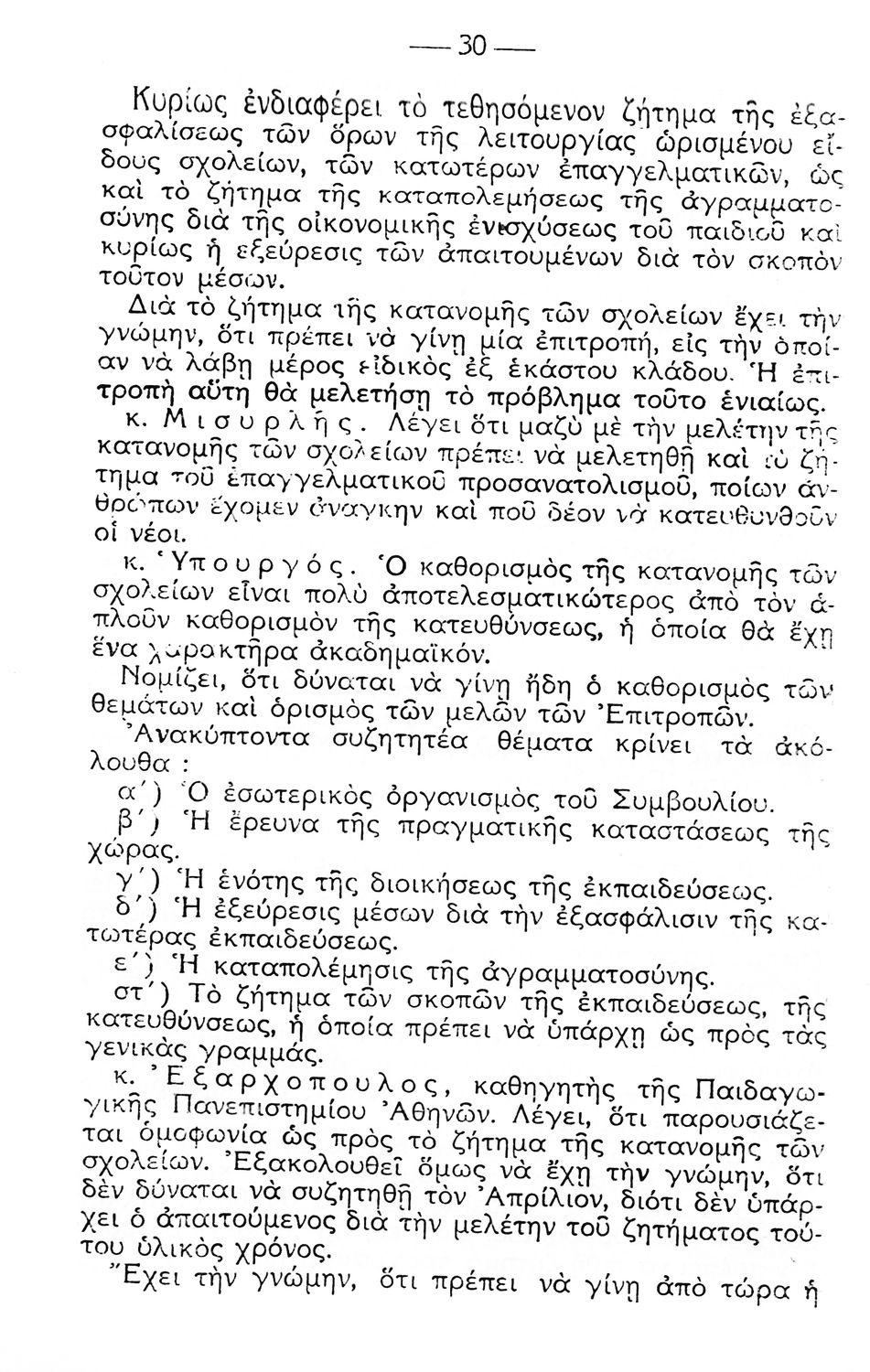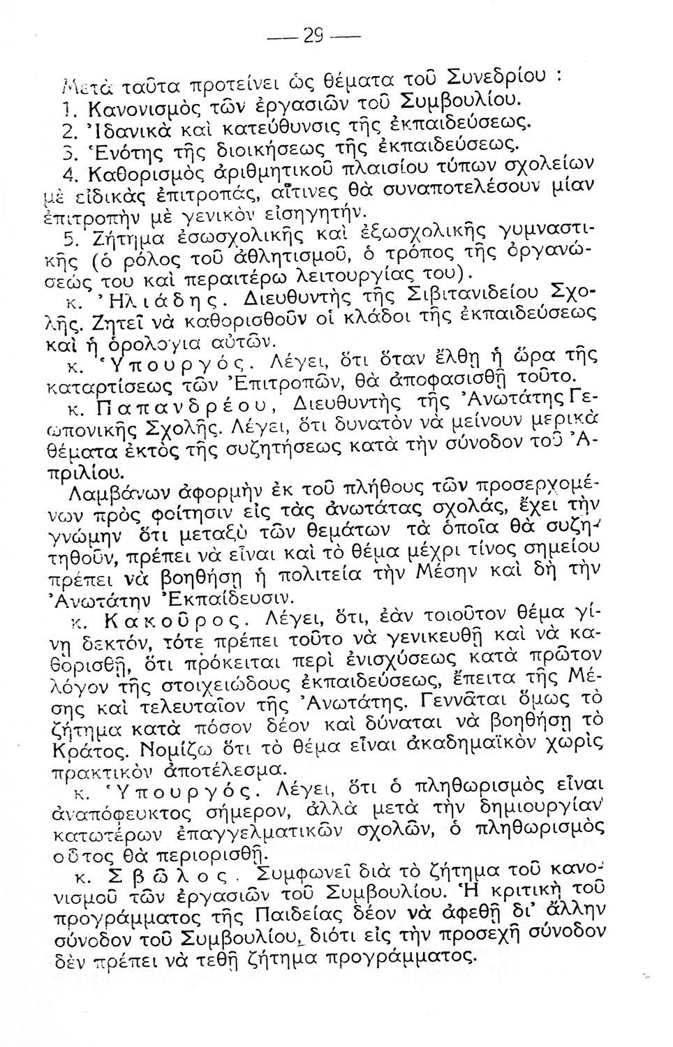 Παρουσίαση περιεχομένου: Πρακτικά των Συνεδριάσεων του Ανώτατου Εκπαιδευτικού Συμβουλίου (5-24 Οκτωβρίου 1931 ) που αφορούν την εύρυθμη λειτουργία των σχολείων και τις εκπαιδευτικές ανάγκες της εποχής.