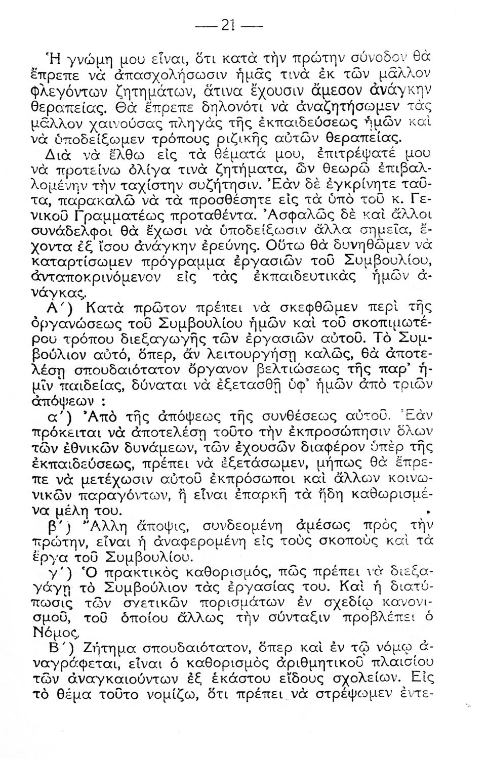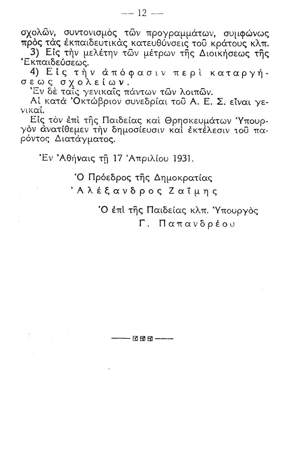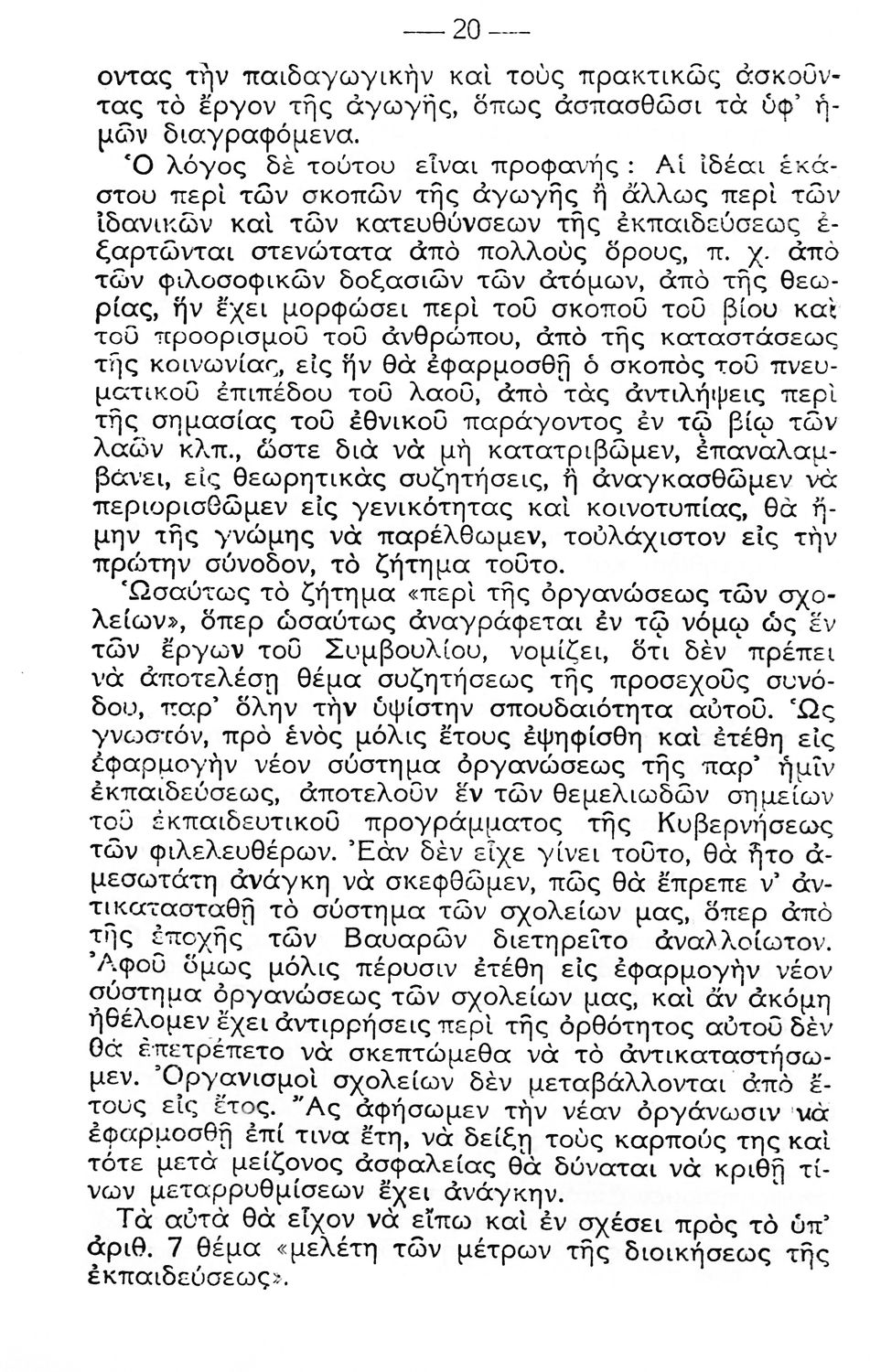 Πρακτικά των Συνεδριάσεων του Ανώτατου Εκπαιδευτικού Συμβουλίου (5-24 Οκτωβρίου 1931 ) που αφορούν την εύρυθμη λειτουργία των σχολείων και τις εκπαιδευτικές ανάγκες της εποχής.