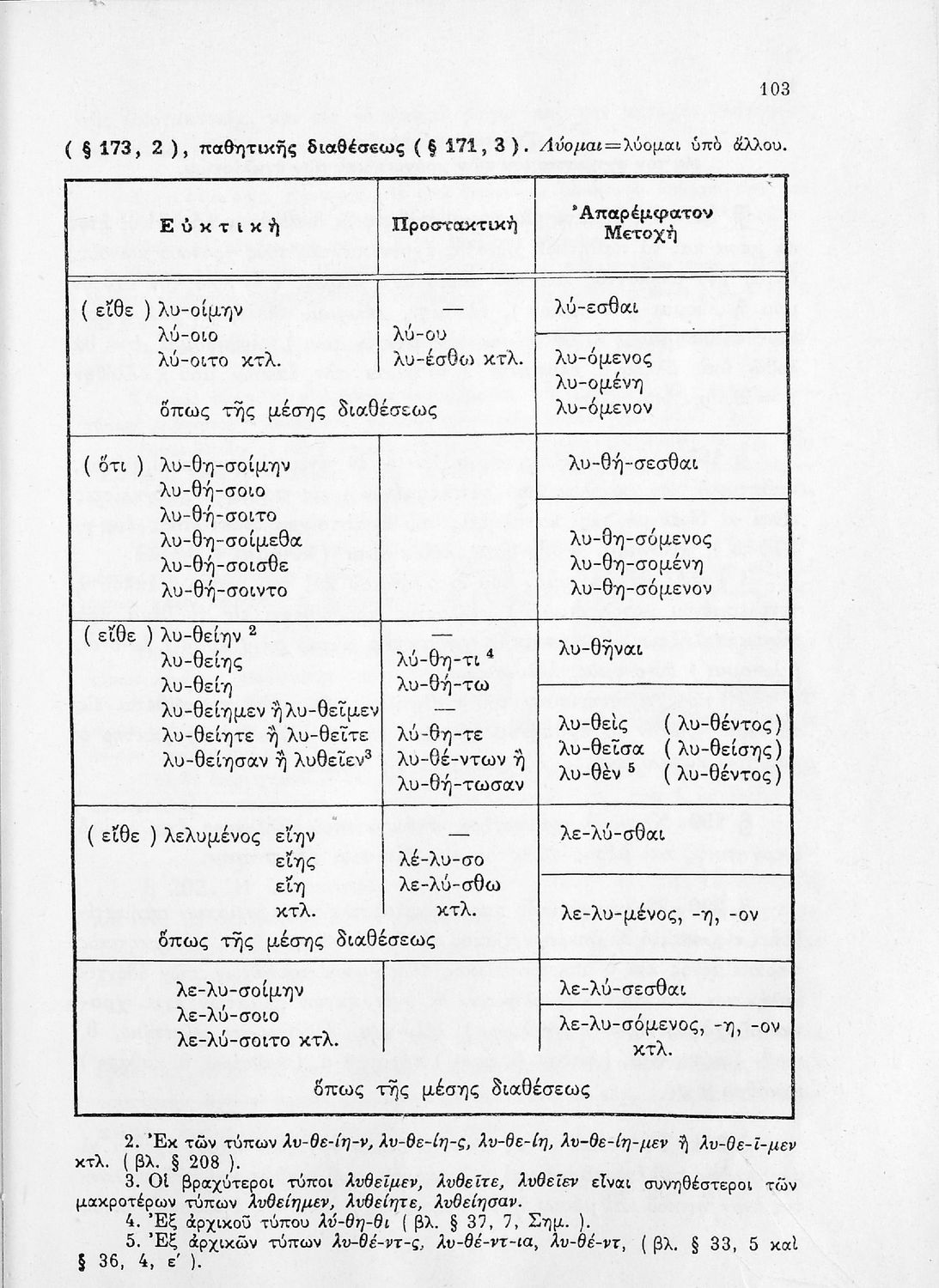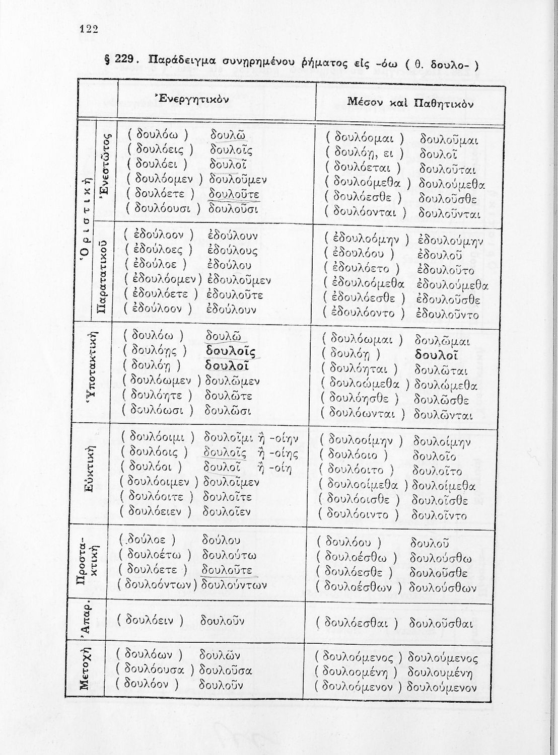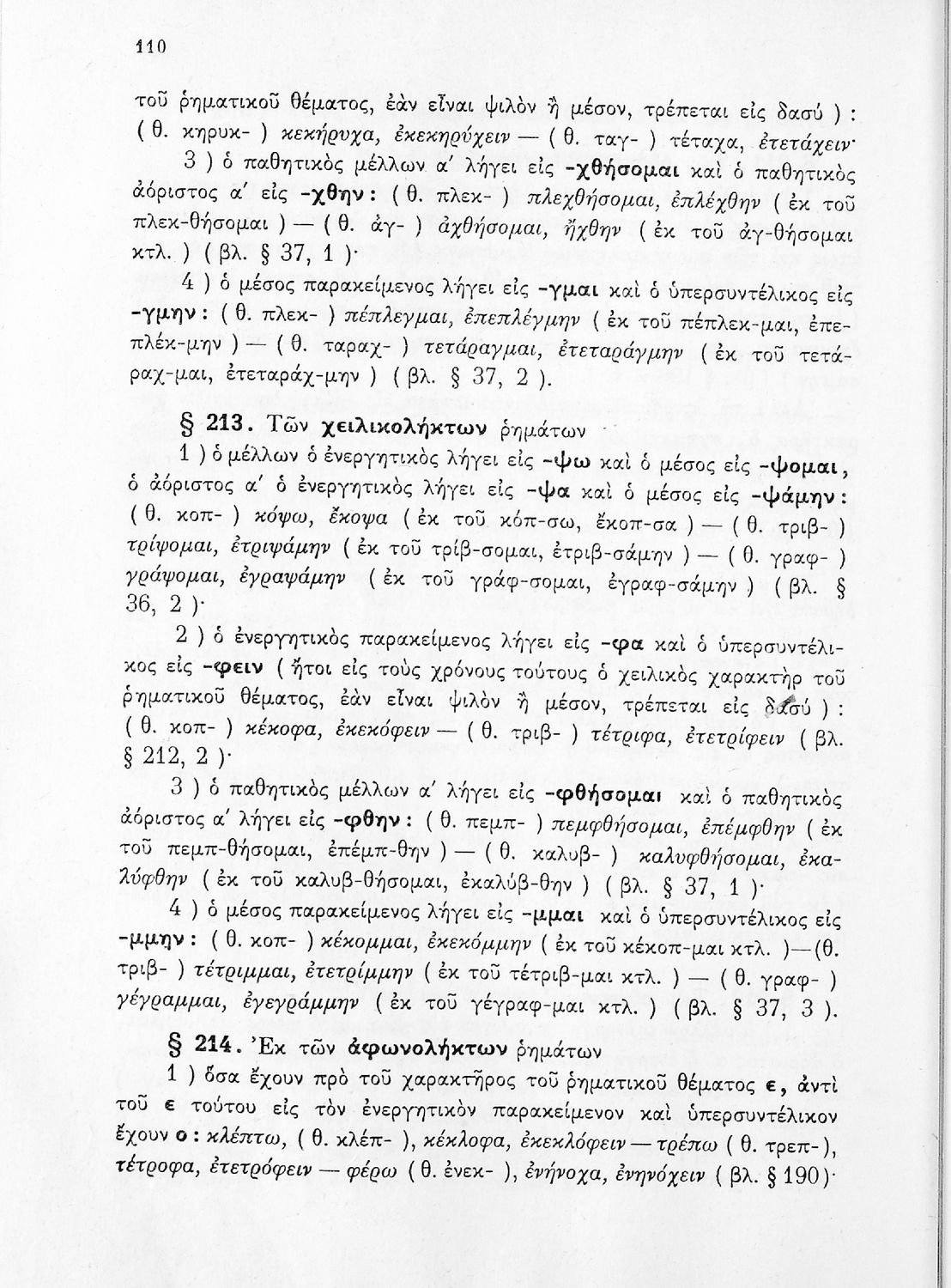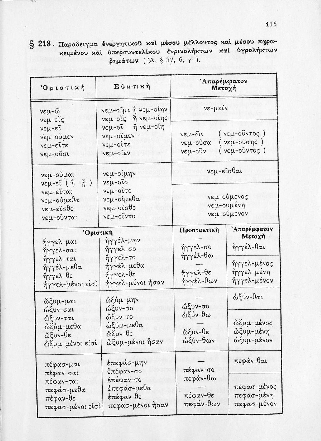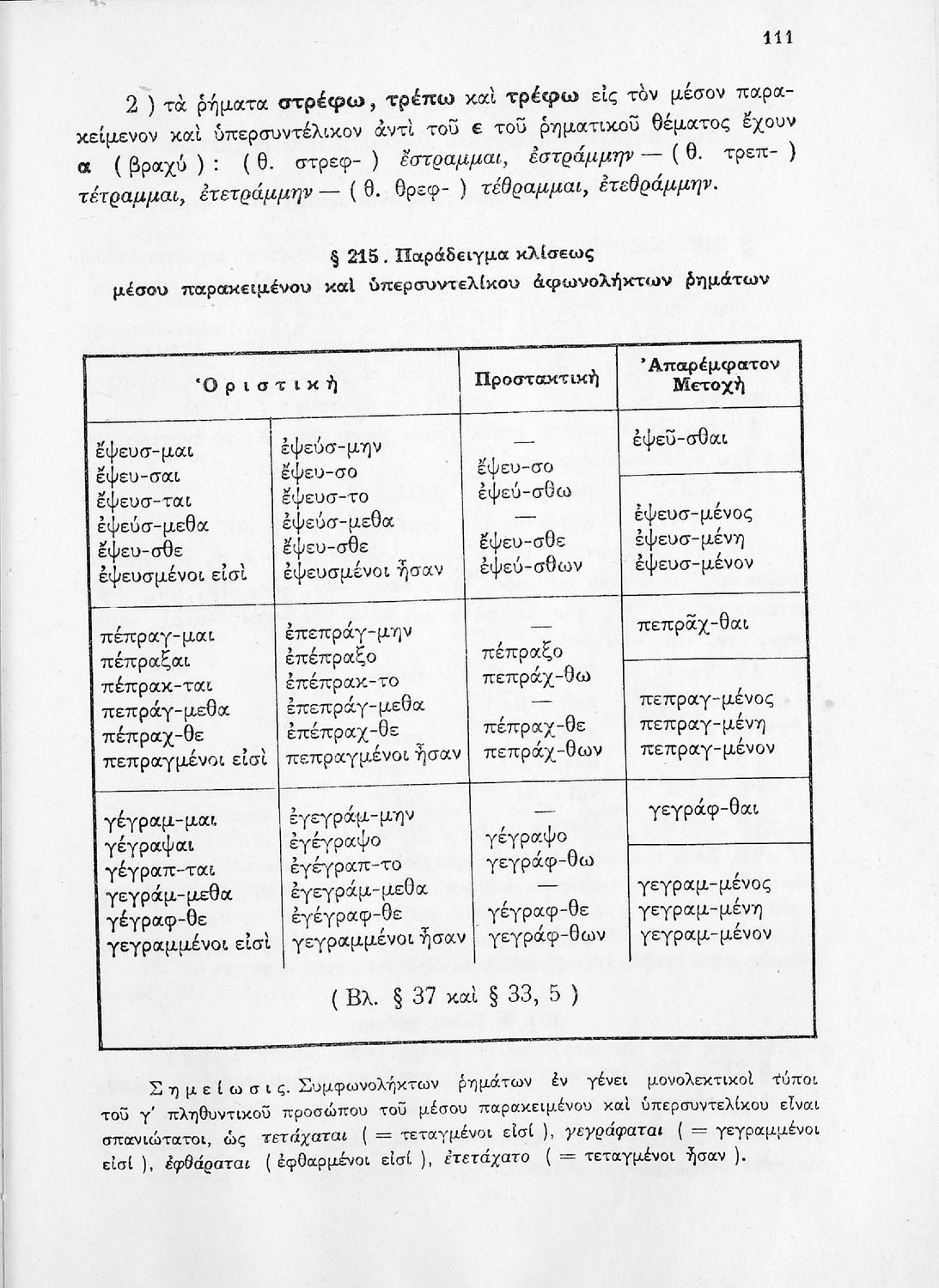 Σχολικό εγχειρίδιο Αρχαίων Ελληνικών Α', Β', και Γ' Γυμνασίου που περιέχει τους κανόνες γραμματικής και είναι χωρισμένο σε φθογγολογικό, τυπολογικό και ετυμολογικό μέρος. Περιέχει και κατάλογο ανωμάλων ρημάτων.