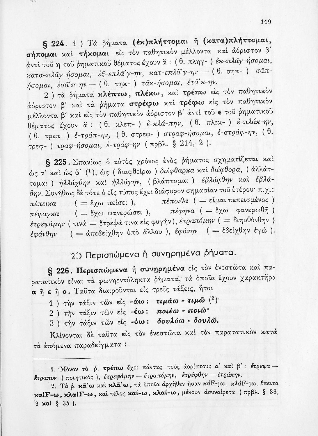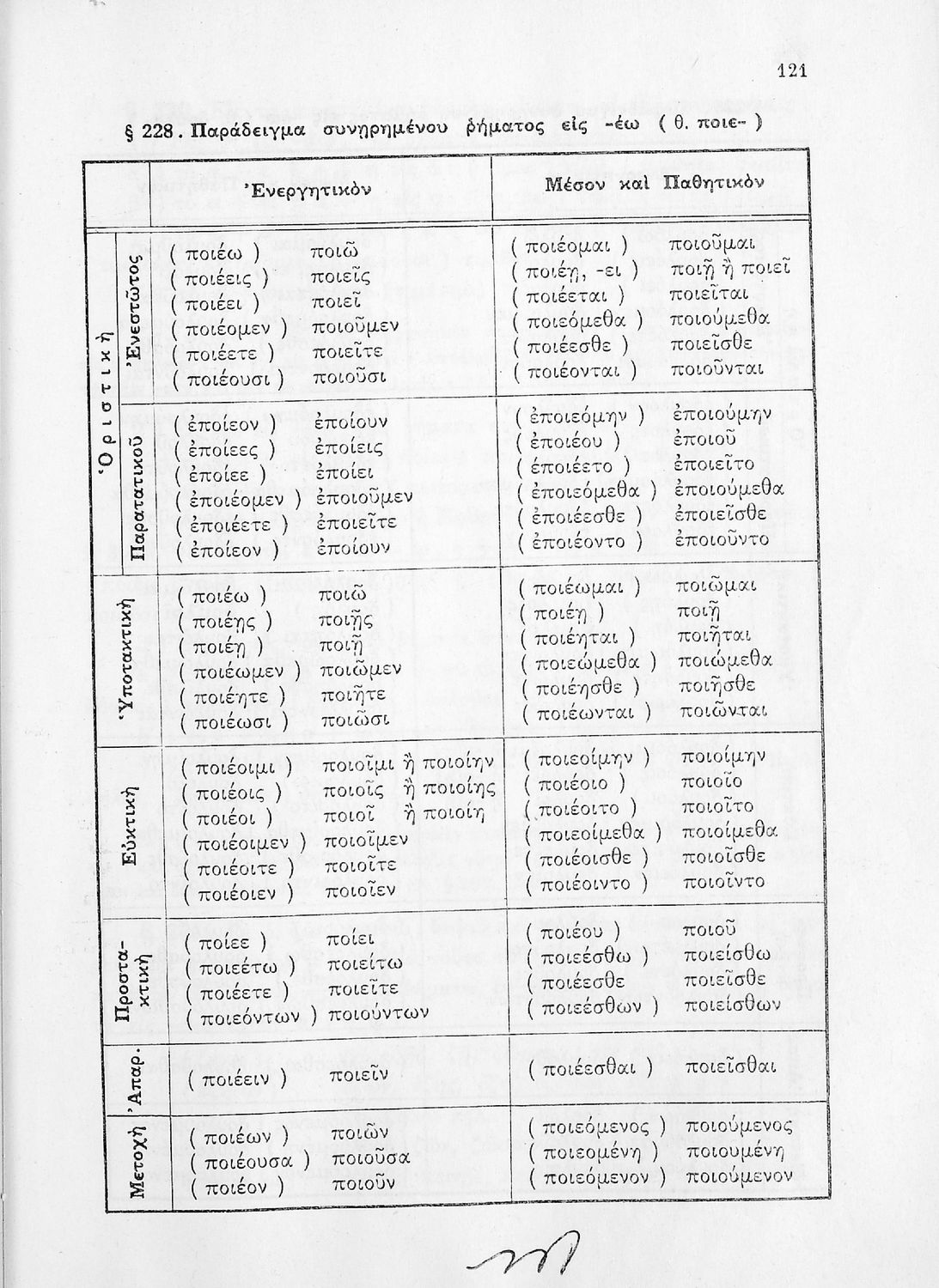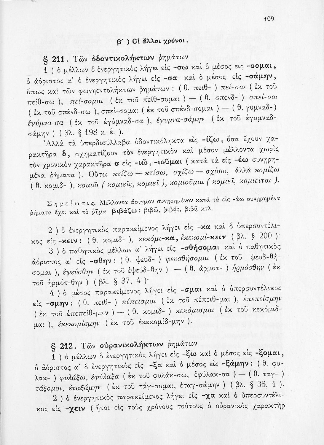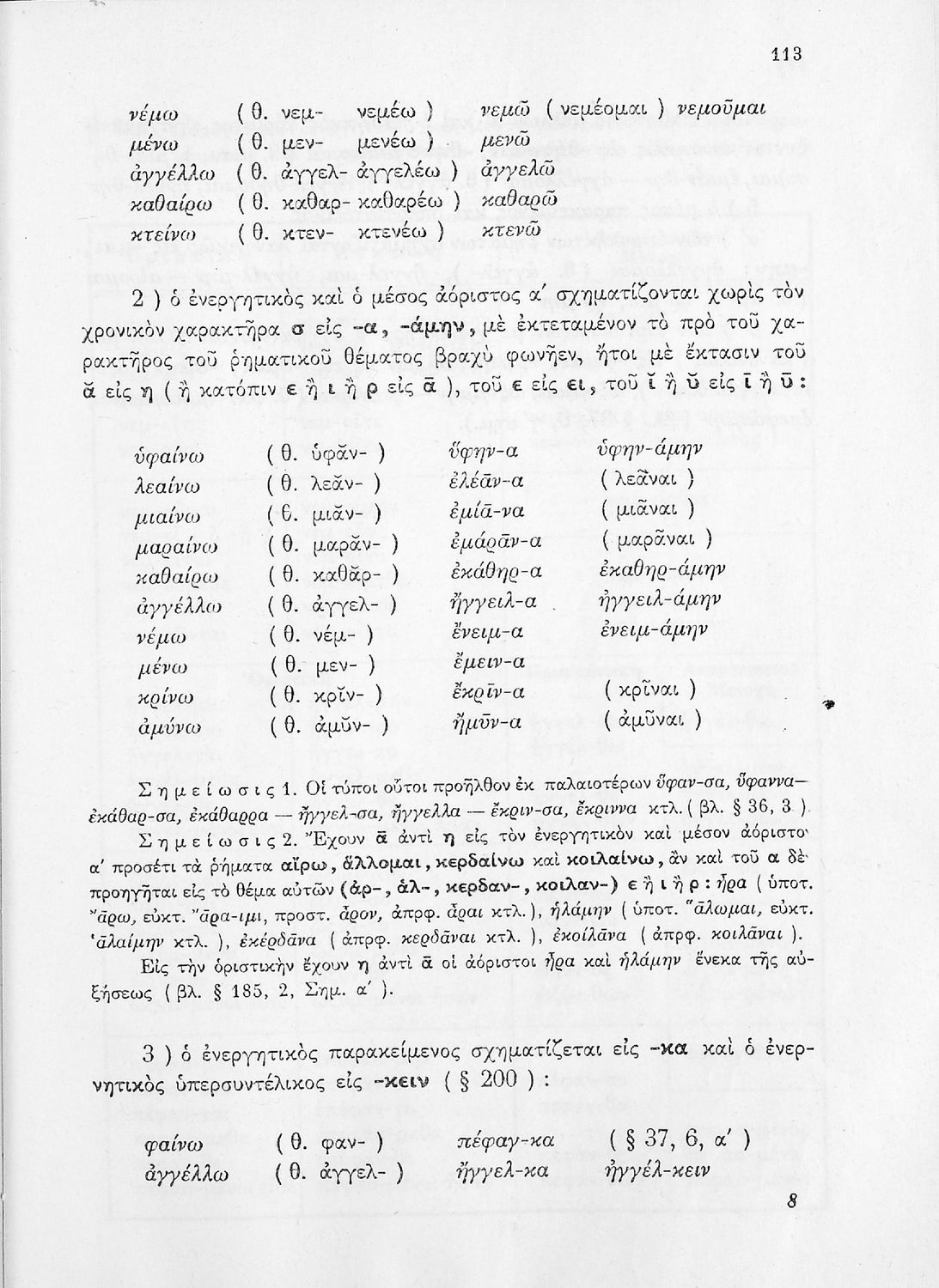 Σχολικό εγχειρίδιο Αρχαίων Ελληνικών Γυμνασίου που περιέχει τους κανόνες γραμματικής και είναι χωρισμένο σε φθογγολογικό, τυπολογικό και ετυμολογικό μέρος. Περιέχει και κατάλογο ανωμάλων ρημάτων.