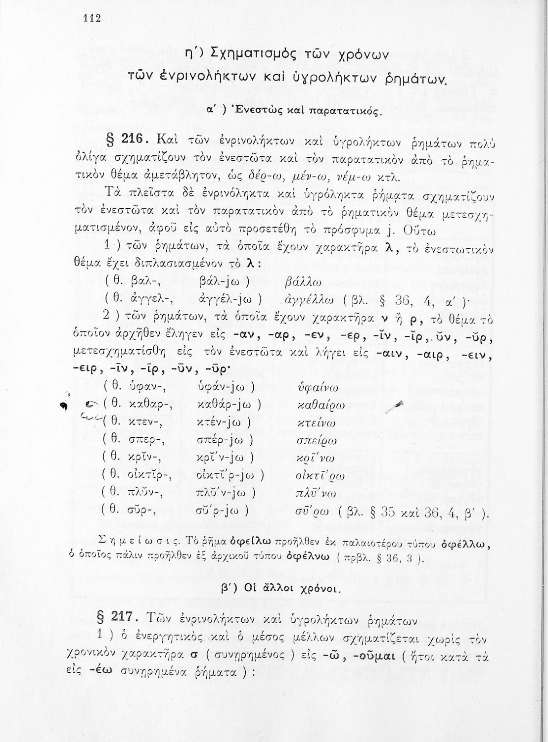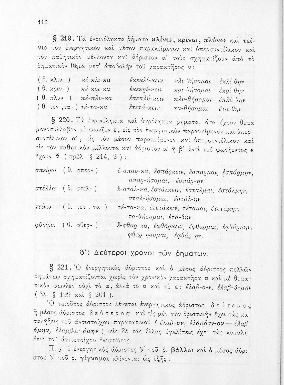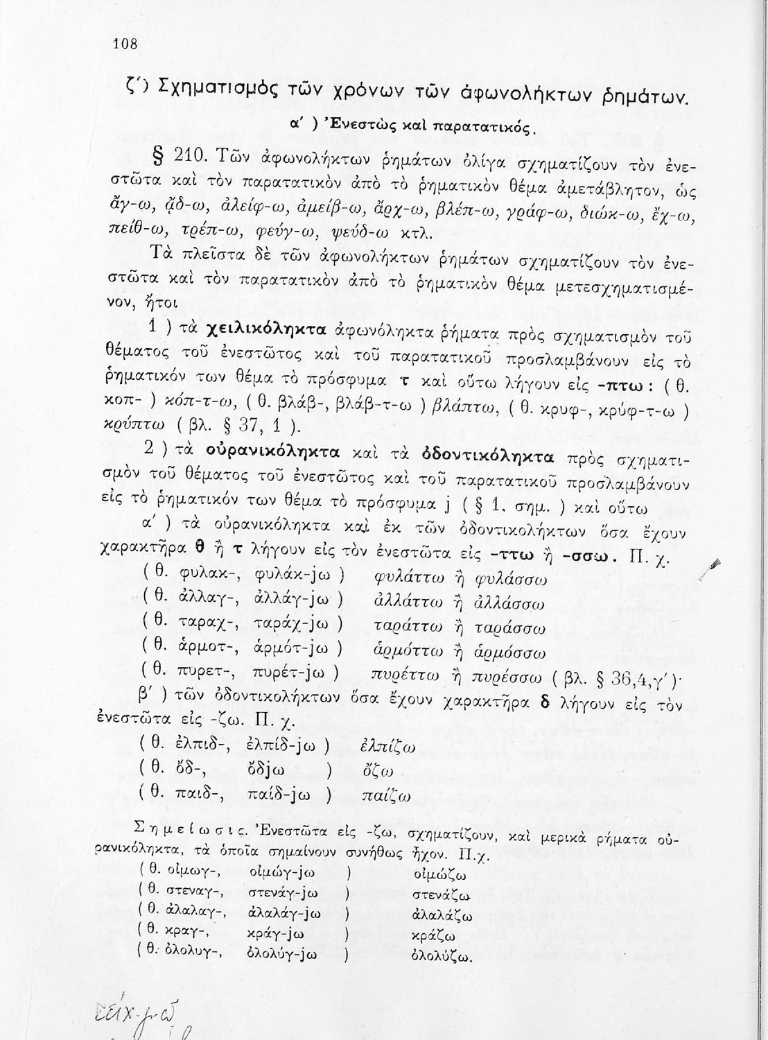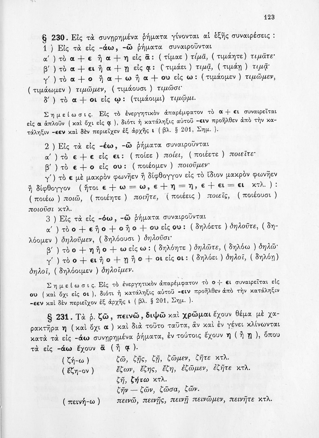 Σχολικό εγχειρίδιο Αρχαίων Ελληνικών Γυμνασίου που περιέχει τους κανόνες γραμματικής και είναι χωρισμένο σε φθογγολογικό, τυπολογικό και ετυμολογικό μέρος. Περιέχει και κατάλογο ανωμάλων ρημάτων.
