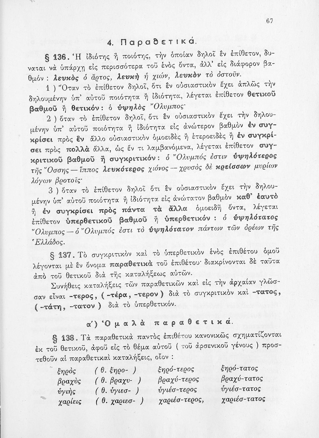 Σχολικό εγχειρίδιο Αρχαίων Ελληνικών Α', Β', Γ' και Δ' Γυμνασίου που περιέχει τους κανόνες γραμματικής και είναι χωρισμένο σε φθογγολογικό, τυπολογικό και ετυμολογικό μέρος. Περιέχει και κατάλογο ανωμάλων ρημάτων. Φέρει το σύμβολο της δικτατορίας.