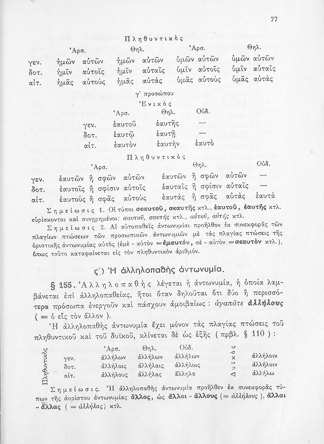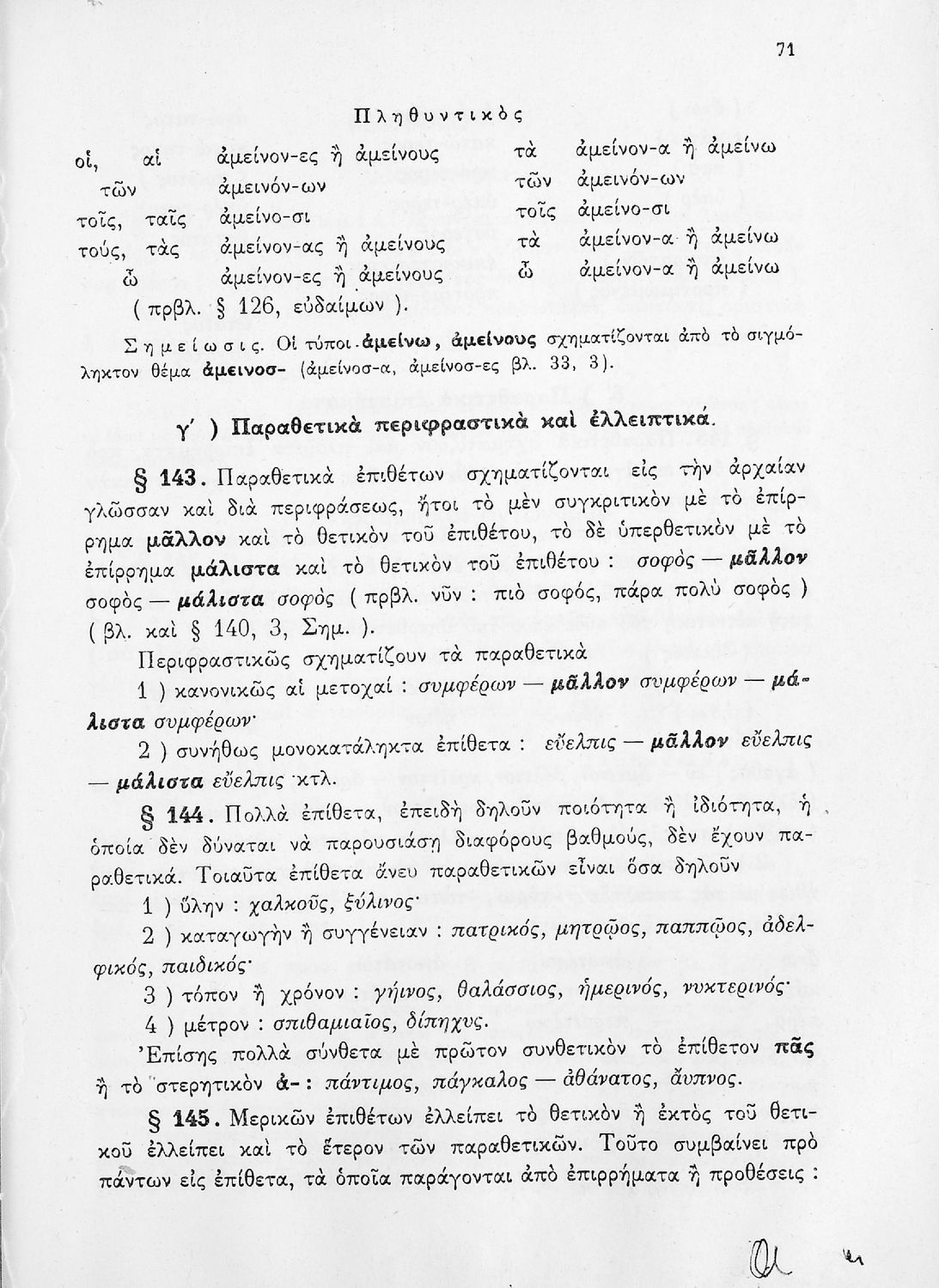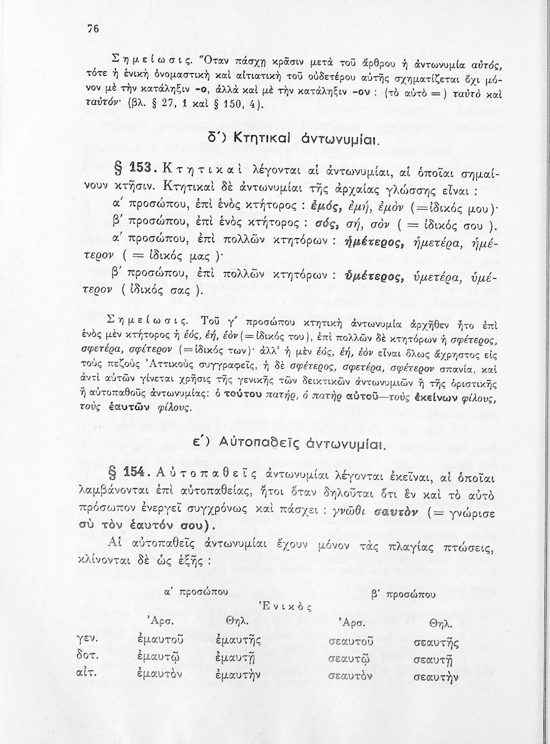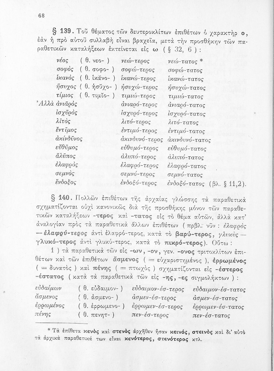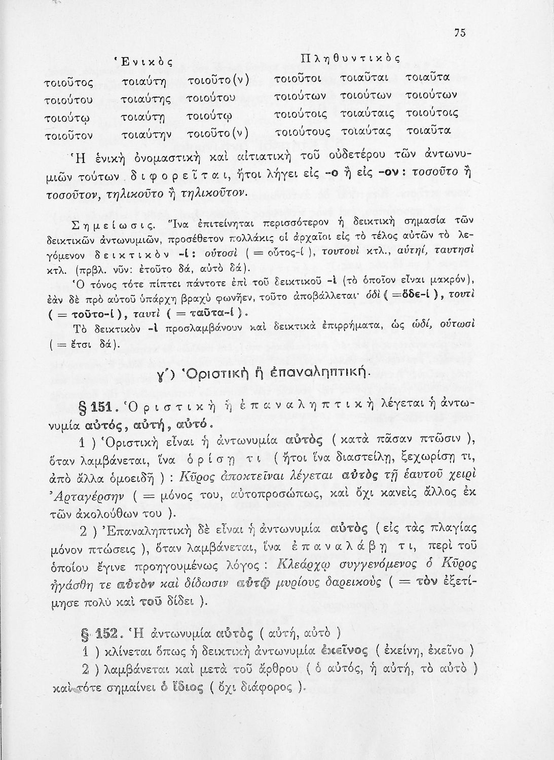 Σχολικό εγχειρίδιο Αρχαίων Ελληνικών Γυμνασίου που περιέχει τους κανόνες γραμματικής και είναι χωρισμένο σε φθογγολογικό, τυπολογικό και ετυμολογικό μέρος. Περιέχει και κατάλογο ανωμάλων ρημάτων.