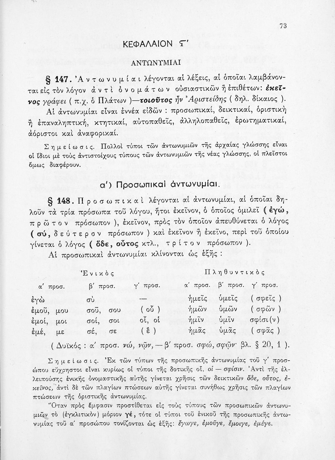 Σχολικό εγχειρίδιο Αρχαίων Ελληνικών Α', Β', και Γ' Γυμνασίου που περιέχει τους κανόνες γραμματικής και είναι χωρισμένο σε φθογγολογικό, τυπολογικό και ετυμολογικό μέρος. Περιέχει και κατάλογο ανωμάλων ρημάτων.