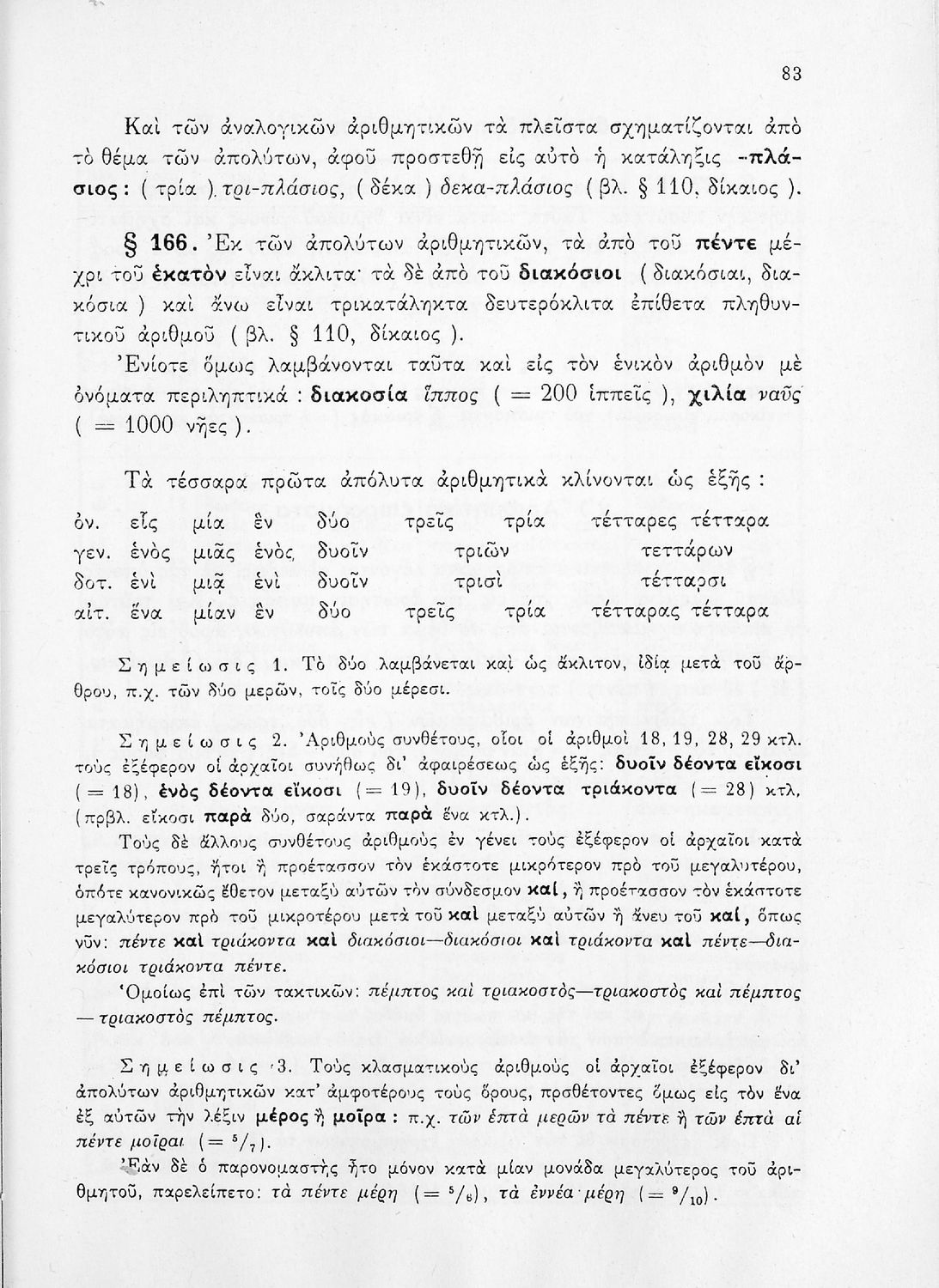 Γραμματική Αρχαίων Ελληνικών της Α΄, Β΄, Γ΄ και Δ΄ Γυμνασίου το οποίο εστιάζει στα μέρη του λόγου και στην σύνταξή τους και είναι χωρισμένο σε φθογγολογικό και τυπολογικό μέρος.