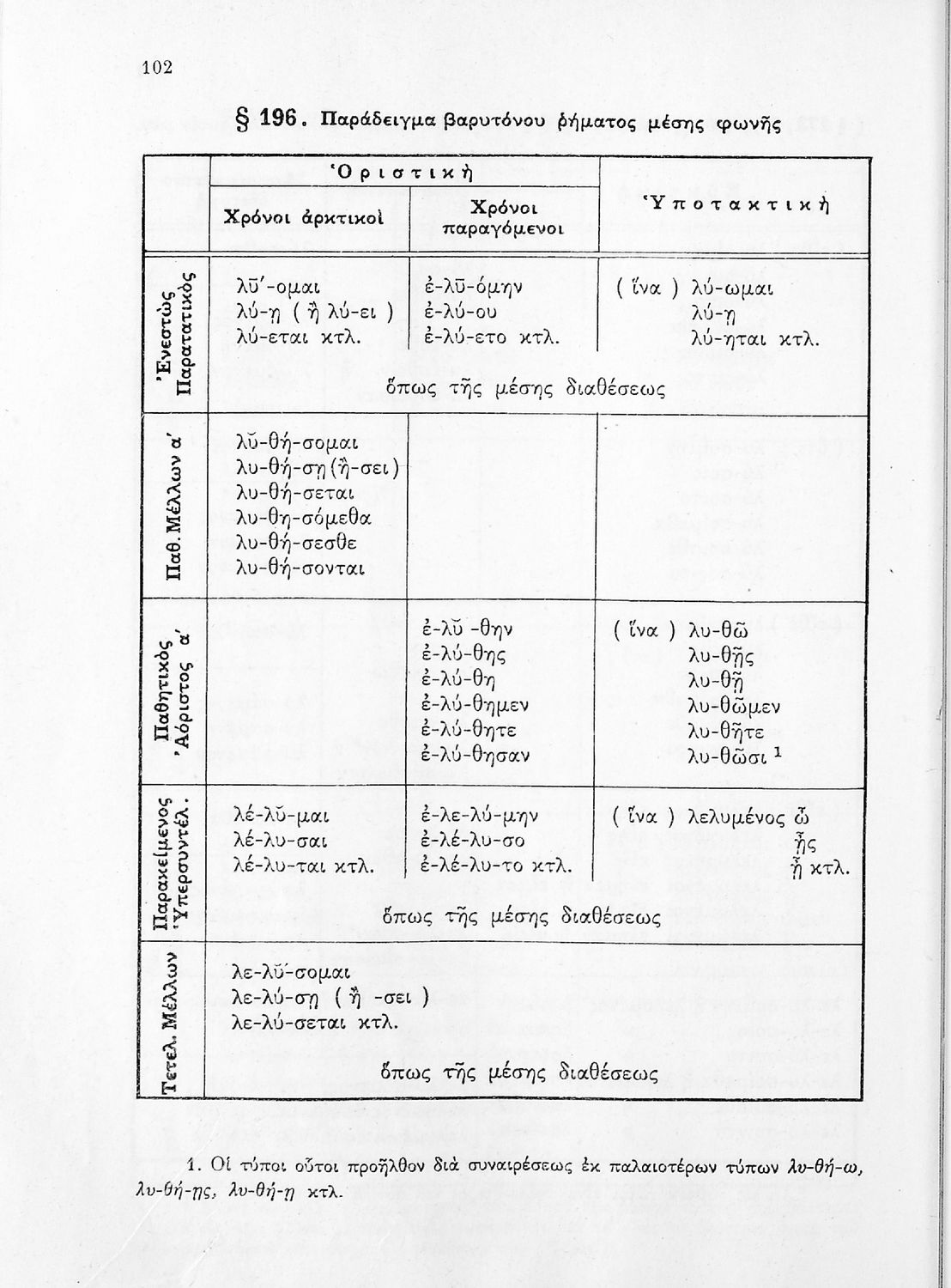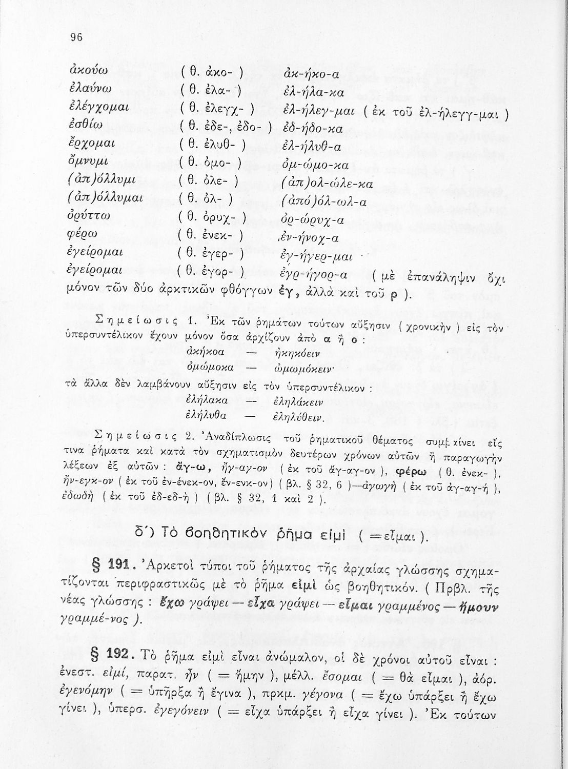 Σχολικό εγχειρίδιο Αρχαίων Ελληνικών Α', Β', και Γ' Γυμνασίου που περιέχει τους κανόνες γραμματικής και είναι χωρισμένο σε φθογγολογικό, τυπολογικό και ετυμολογικό μέρος. Περιέχει και κατάλογο ανωμάλων ρημάτων.