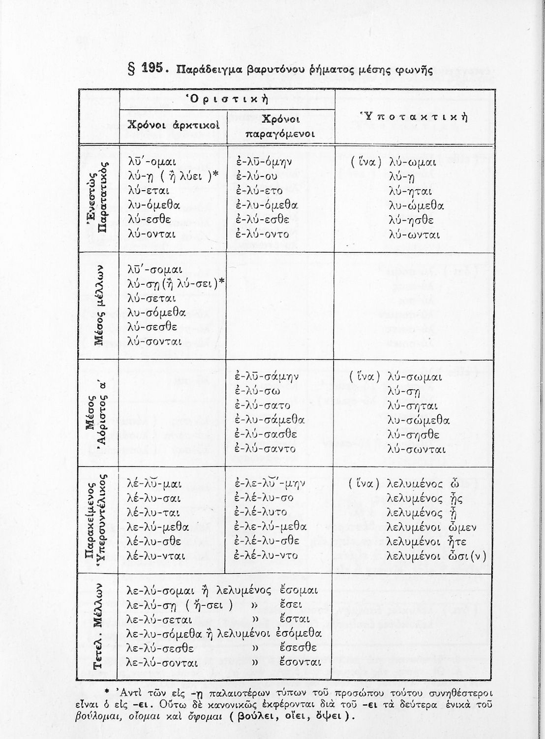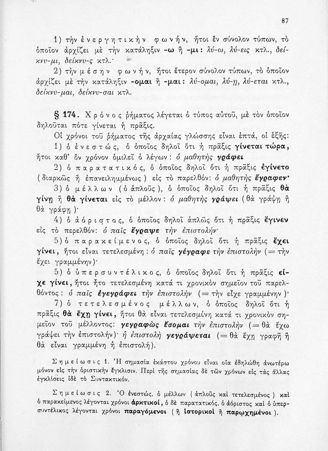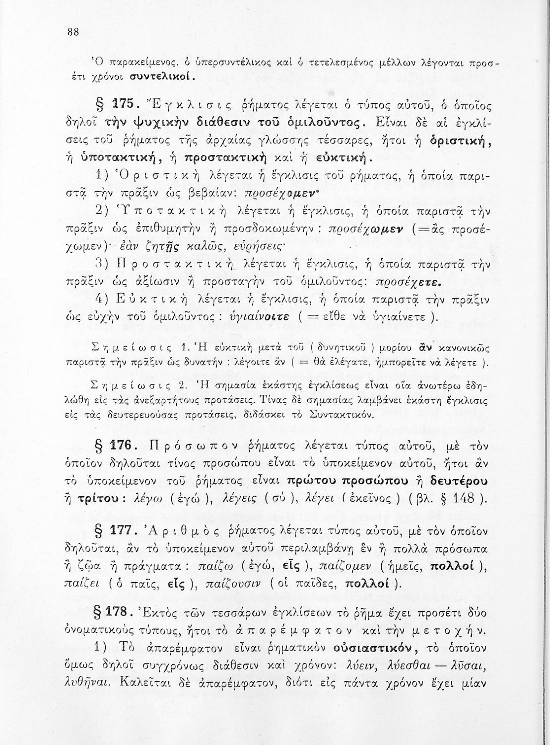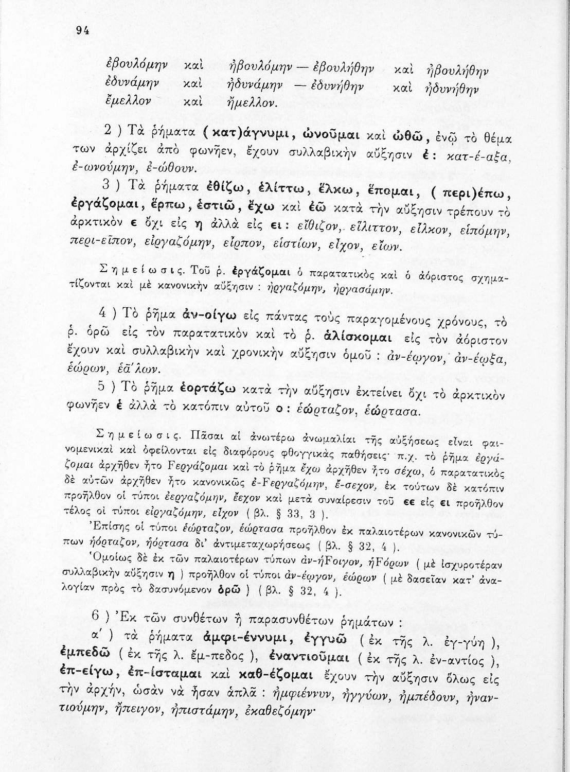 Σχολικό εγχειρίδιο Αρχαίων Ελληνικών Γυμνασίου που περιέχει τους κανόνες γραμματικής και είναι χωρισμένο σε φθογγολογικό, τυπολογικό και ετυμολογικό μέρος. Περιέχει και κατάλογο ανωμάλων ρημάτων.