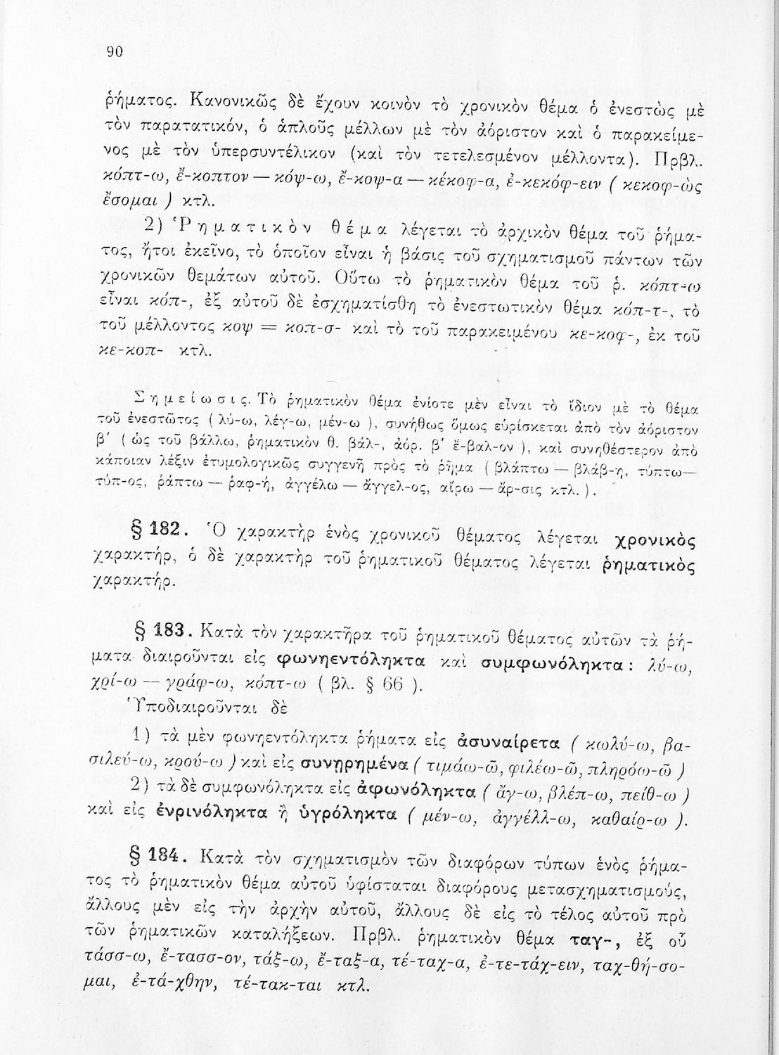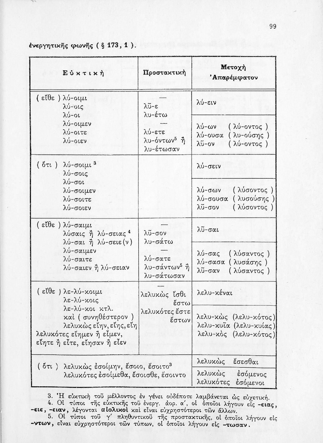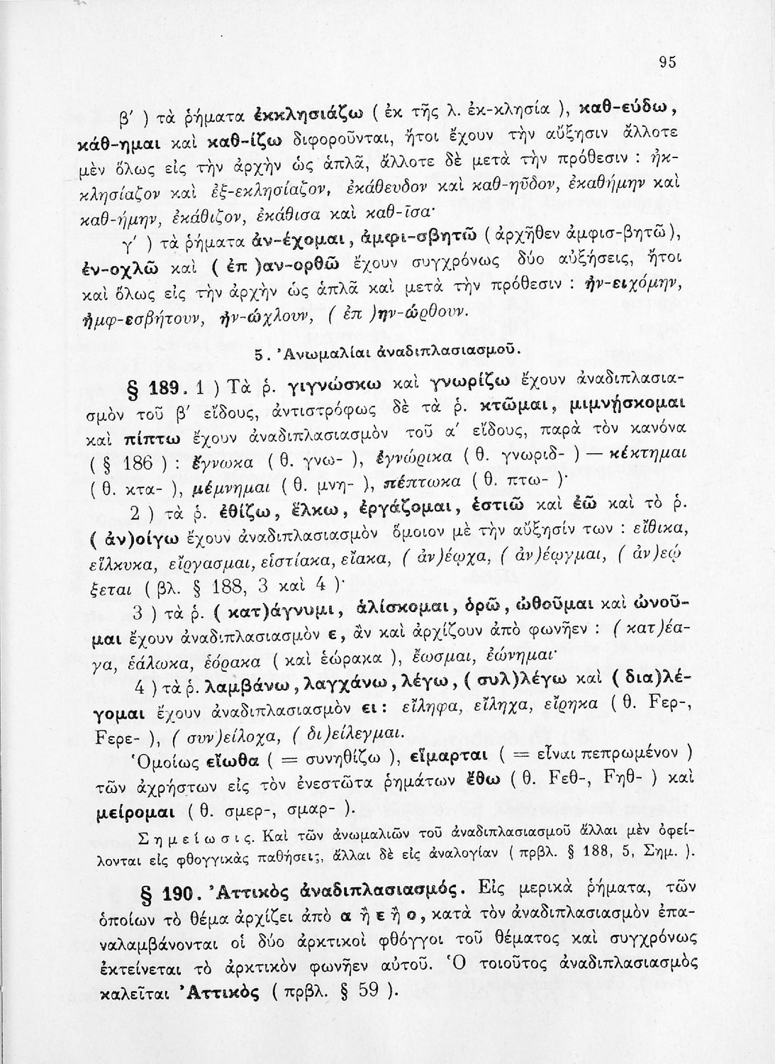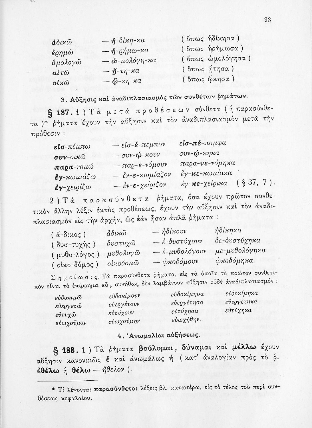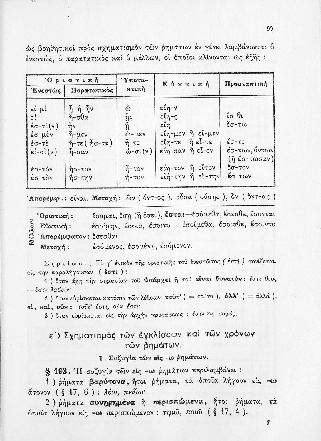Σχολικό εγχειρίδιο Αρχαίων Ελληνικών Γυμνασίου που περιέχει τους κανόνες γραμματικής και είναι χωρισμένο σε φθογγολογικό, τυπολογικό και ετυμολογικό μέρος. Περιέχει και κατάλογο ανωμάλων ρημάτων.