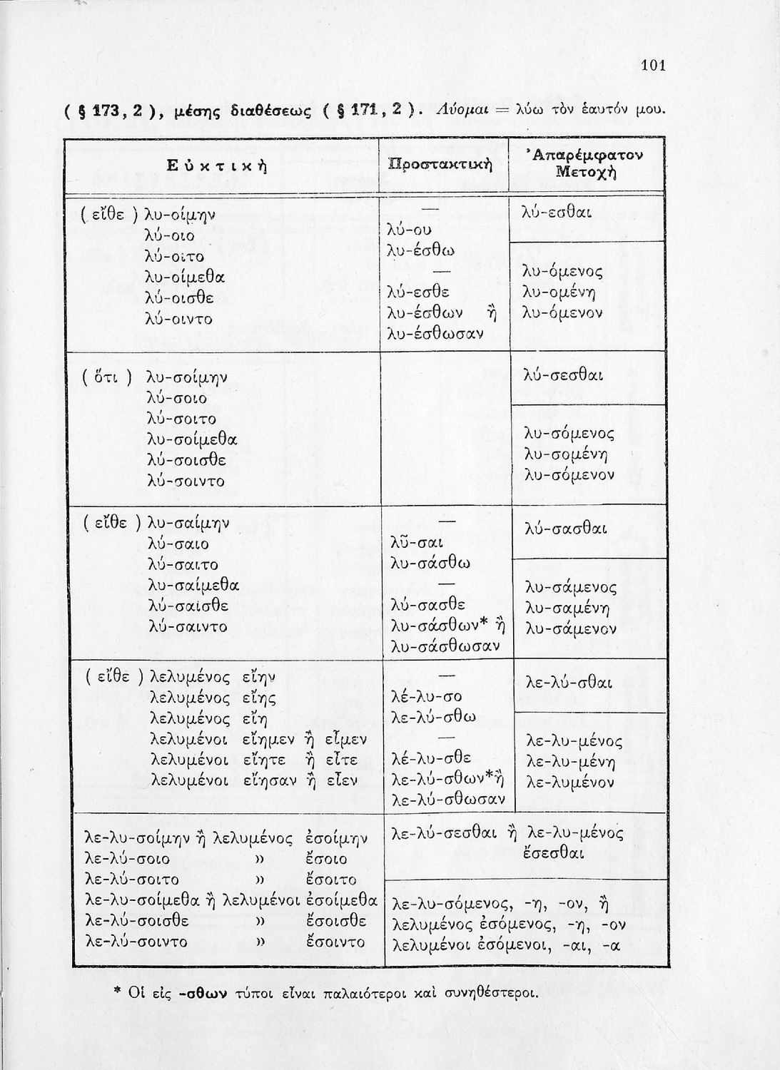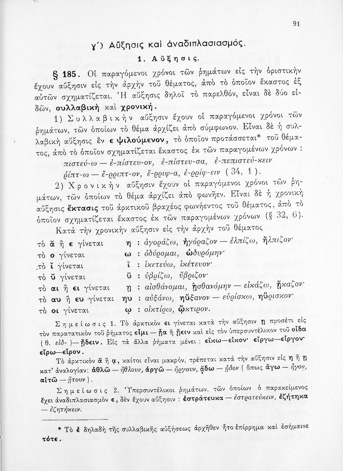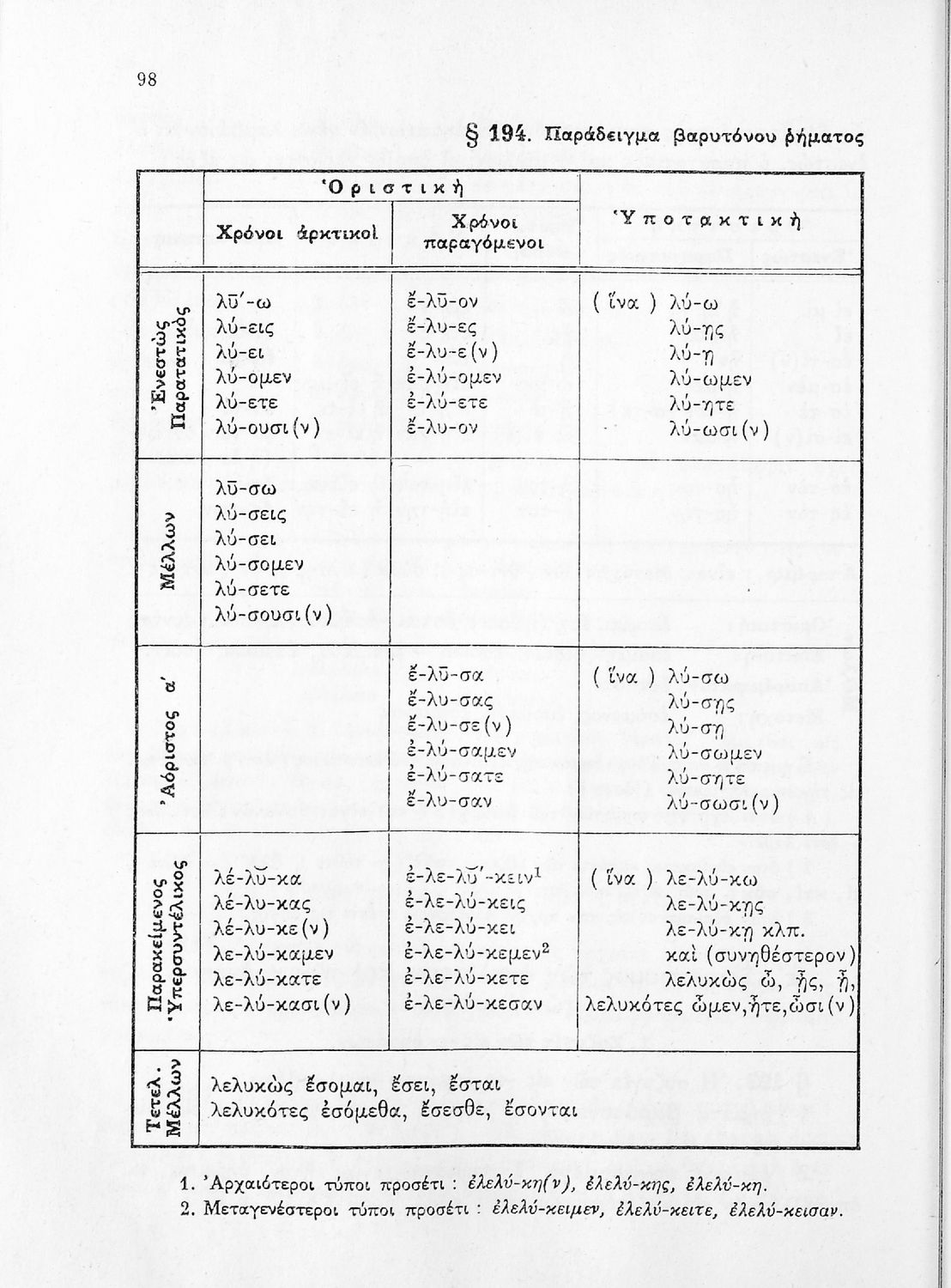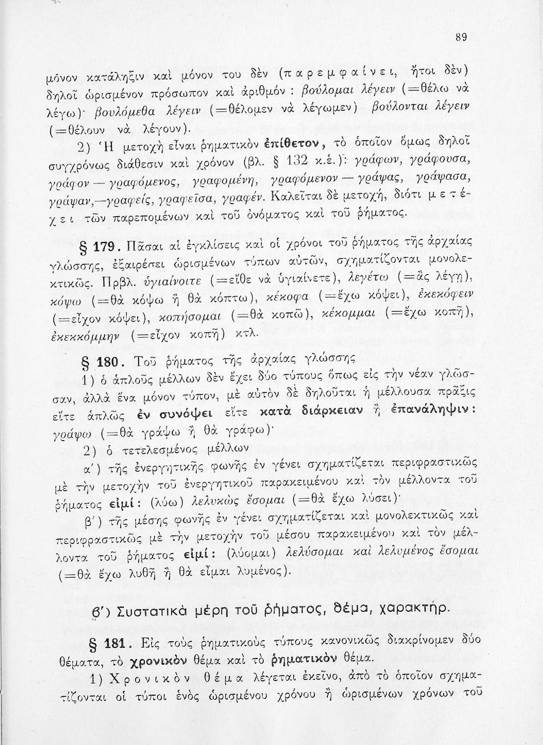 Σχολικό εγχειρίδιο Αρχαίων Ελληνικών Γυμνασίου που περιέχει τους κανόνες γραμματικής και είναι χωρισμένο σε φθογγολογικό, τυπολογικό και ετυμολογικό μέρος. Περιέχει και κατάλογο ανωμάλων ρημάτων.