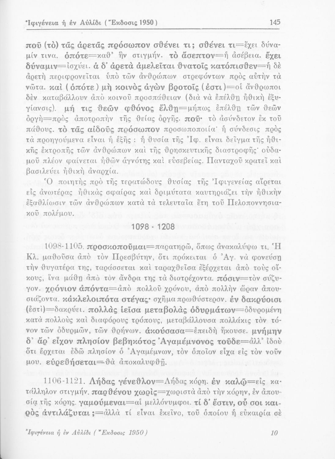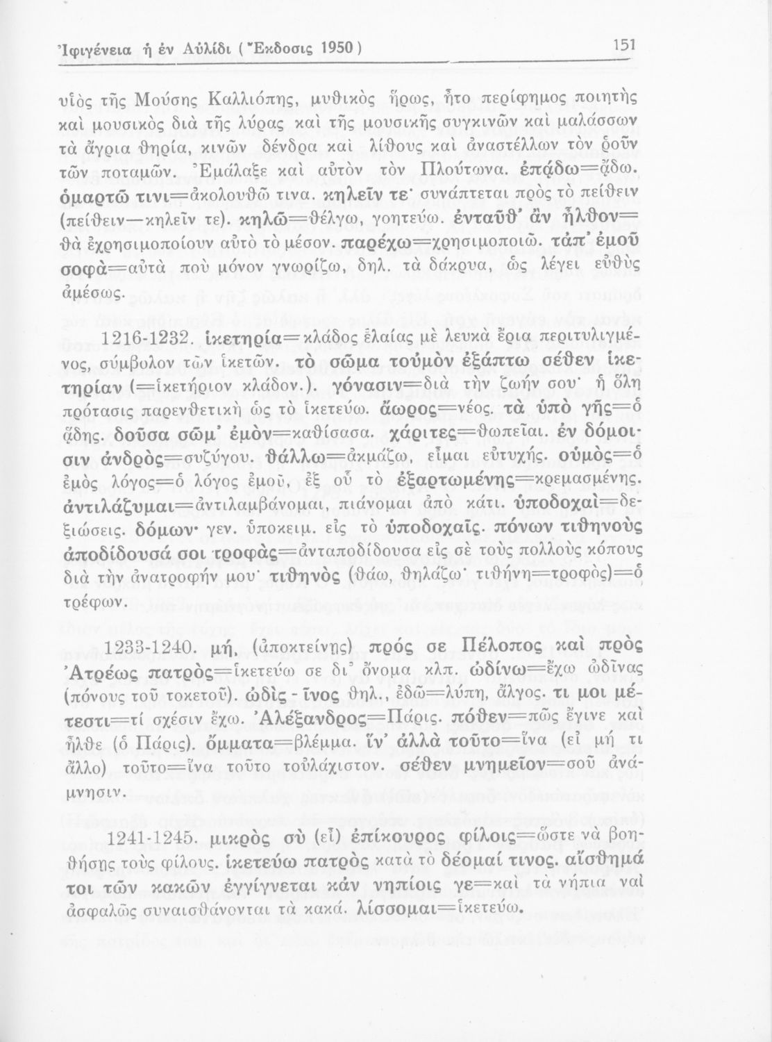Παιδαγωγικό βοήθημα Αρχαίων Ελληνικών Ε΄ Γυμνασίου που περιλαμβάνει ερμηνευτικές, γλωσσικές και πραγματολογικές παρατηρήσεις στην τραγωδία του Ευριπίδη Ιφιγένειας εν Αυλίδι