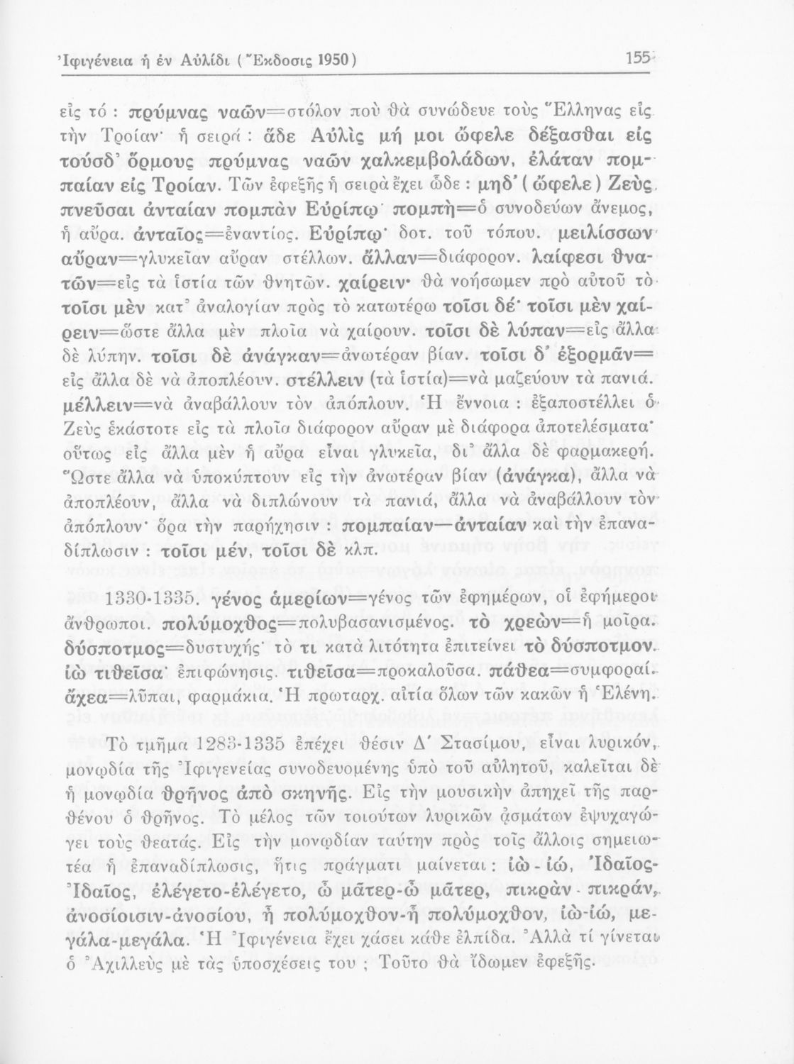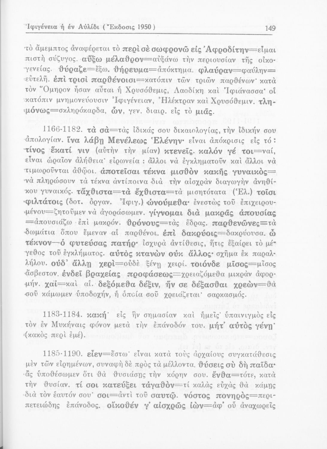 Μαθητικό βοήθημα Αρχαίων Ελληνικών για την Ε' Γυμνασίου που περιλαμβάνει μετάφραση, ερμηνευτικά, γραμματικά και συντακτικά σχόλια στην Ιφιγένεια η εν Αυλίδι.