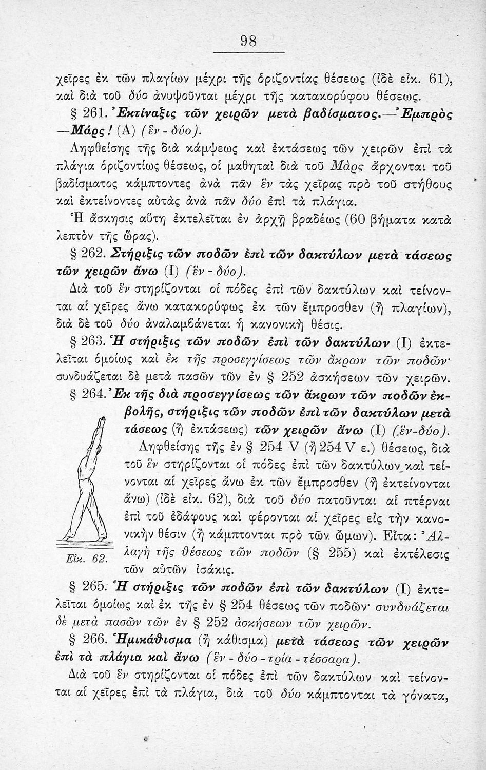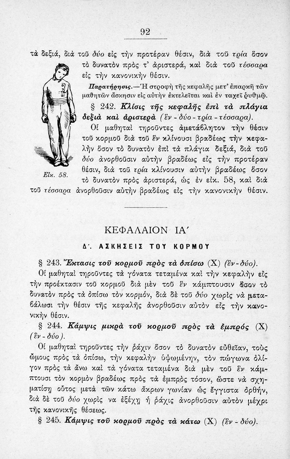 Παιδαγωγικό βοήθημα που απευθύνεται στους δημοδιδασκάλους με σκοπό να τους εξοικειώσει με τα συστήματα εκγύμνασης των μαθητών. Ο συγγραφέας ήταν διευθυντής στην Σχολή Γυμναστών.