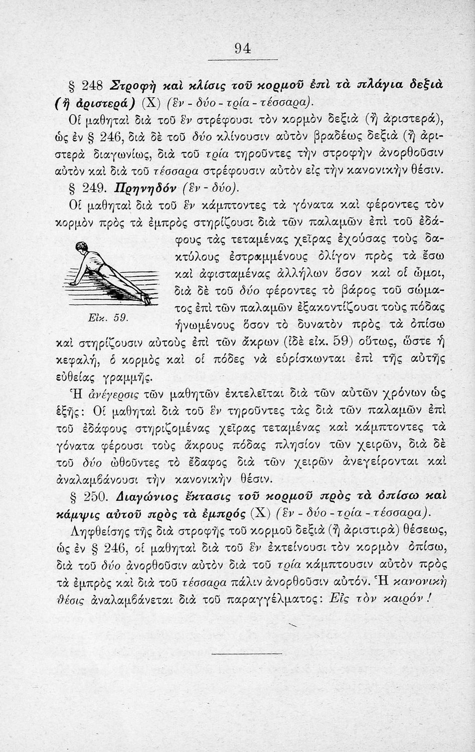 Παρουσίαση περιεχομένου: Παιδαγωγικό βοήθημα που απευθύνεται στους δημοδιδασκάλους με σκοπό να τους εξοικειώσει με τα συστήματα εκγύμνασης των μαθητών. Ο συγγραφέας ήταν διευθυντής στην Σχολή Γυμναστών.