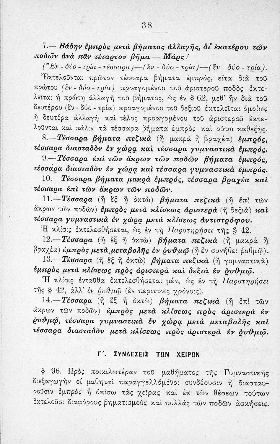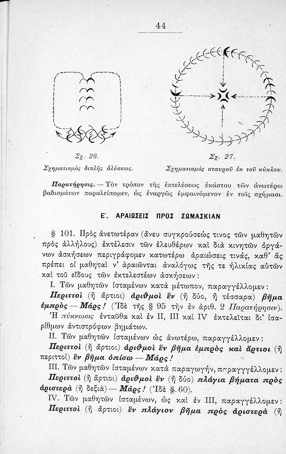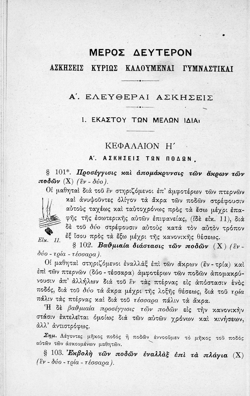 Παρουσίαση περιεχομένου: Παιδαγωγικό βοήθημα που απευθύνεται στους δημοδιδασκάλους με σκοπό να τους εξοικειώσει με τα συστήματα εκγύμνασης των μαθητών. Ο συγγραφέας ήταν διευθυντής στην Σχολή Γυμναστών.