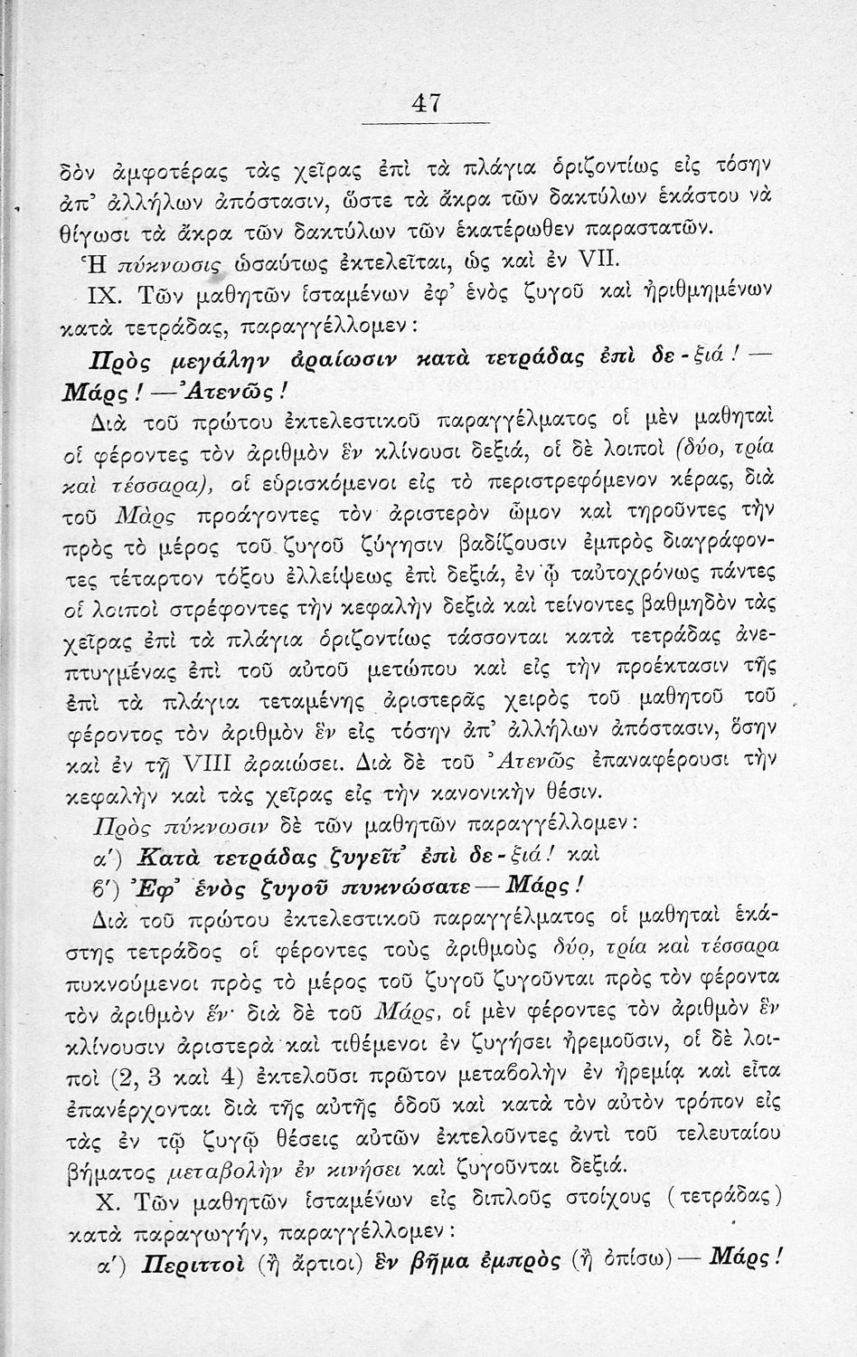 Παιδαγωγικό βοήθημα που απευθύνεται στους δημοδιδασκάλους με σκοπό να τους εξοικειώσει με τα συστήματα εκγύμνασης των μαθητών. Ο συγγραφέας ήταν διευθυντής στην Σχολή Γυμναστών.