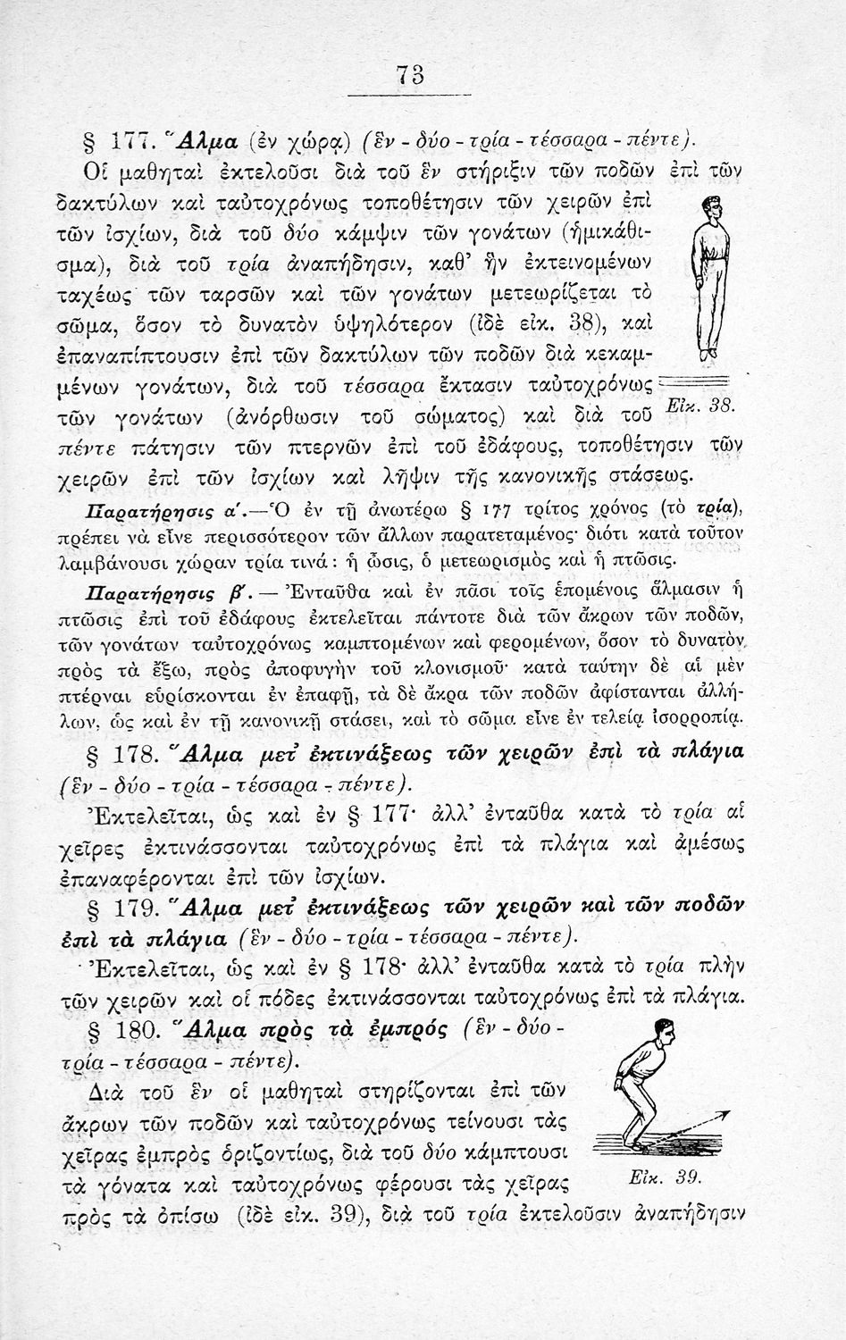 Παρουσίαση περιεχομένου: Παιδαγωγικό βοήθημα που απευθύνεται στους δημοδιδασκάλους με σκοπό να τους εξοικειώσει με τα συστήματα εκγύμνασης των μαθητών. Ο συγγραφέας ήταν διευθυντής στην Σχολή Γυμναστών.