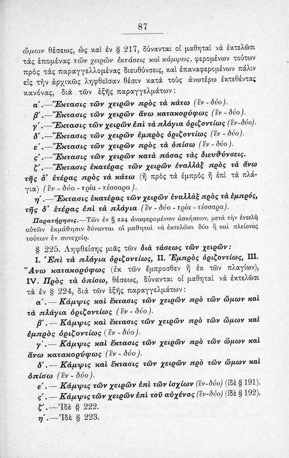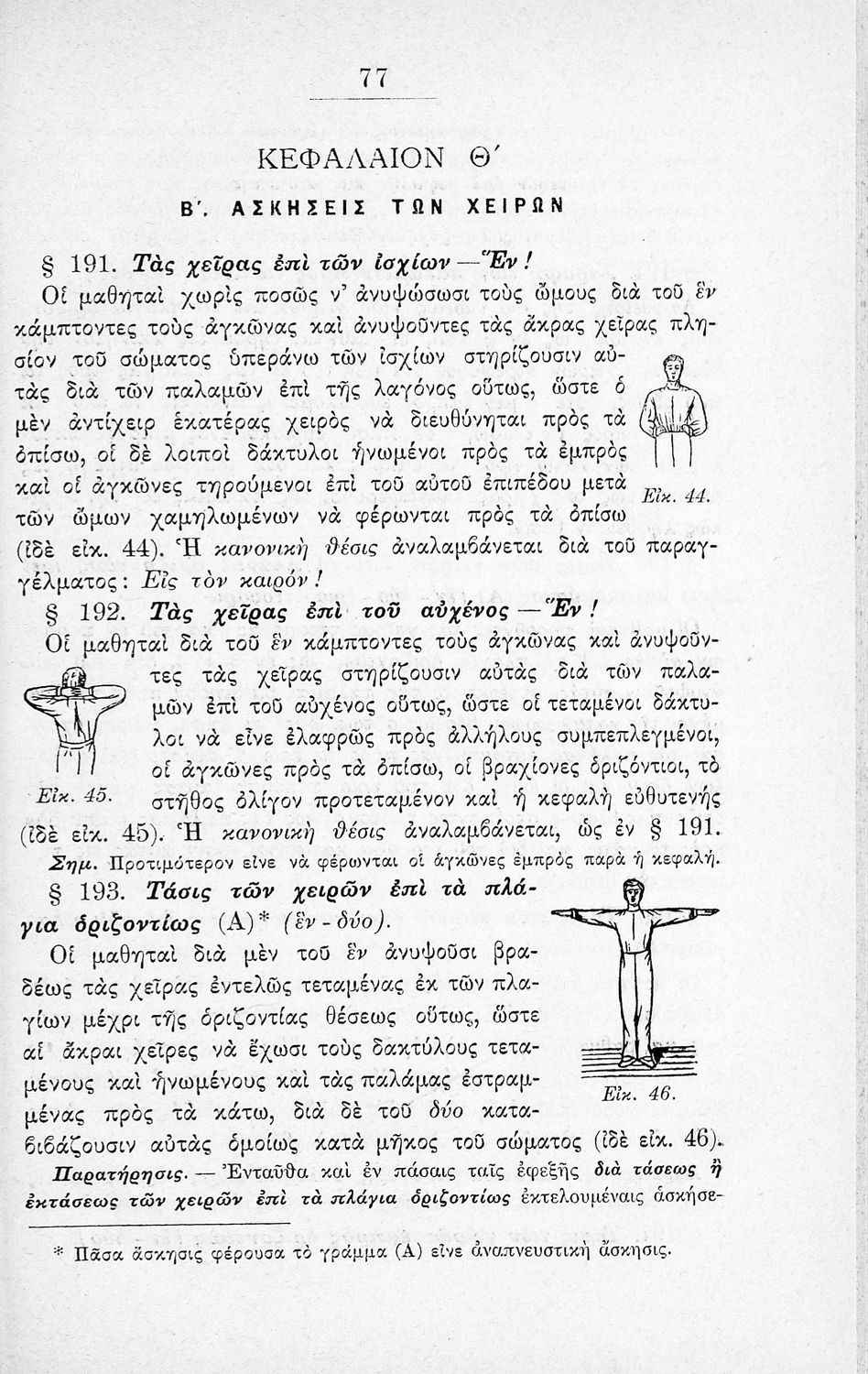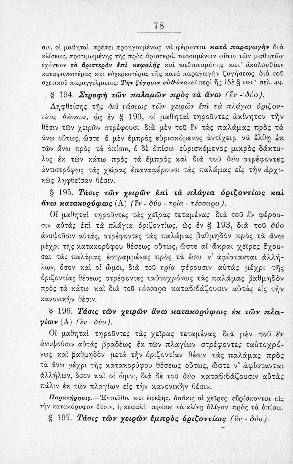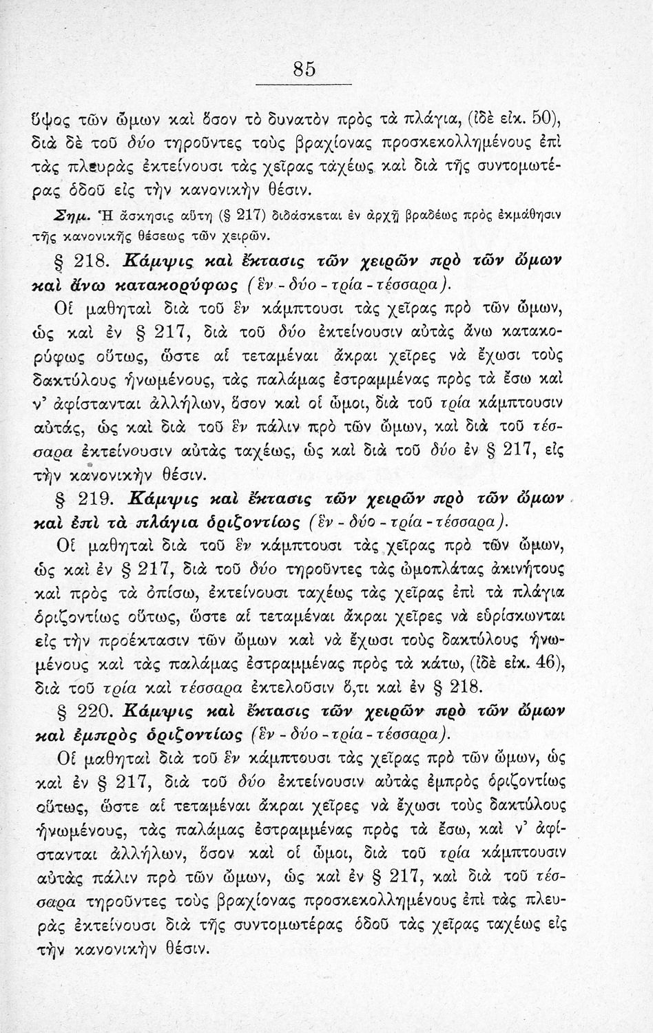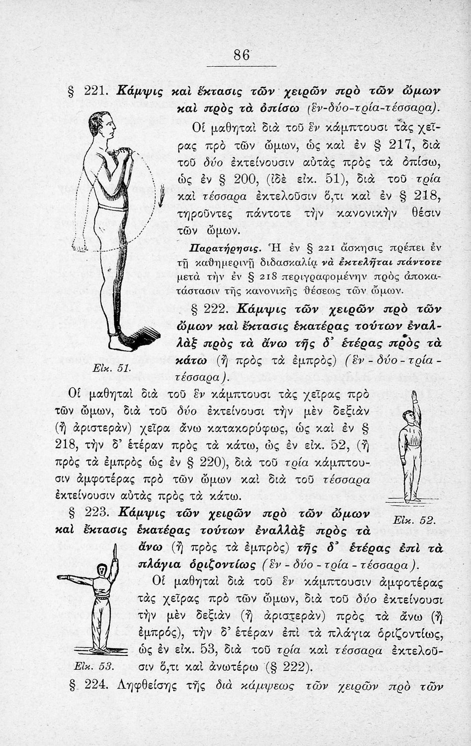 Παιδαγωγικό βοήθημα που απευθύνεται στους δημοδιδασκάλους με σκοπό να τους εξοικειώσει με τα συστήματα εκγύμνασης των μαθητών. Ο συγγραφέας ήταν διευθυντής στην Σχολή Γυμναστών.