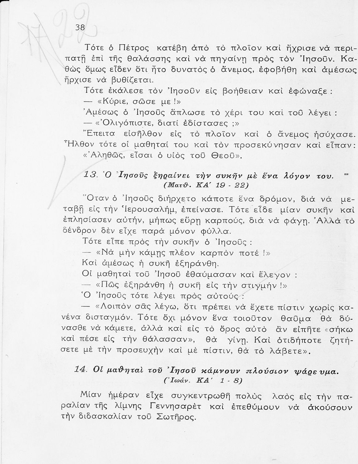 Κωδικός αναγνώρισης: 01-17156 Τίτλος: Ιερά Ιστορία της Καινής Διαθήκης δια την Β΄ τάξιν των Γυμνασίων Συγγραφέας: Βασ. Ε. Πετρούνιας Μέγεθος και υπόστρωμα: Σχολικό εγχειρίδιο, 20εκ., σκληρό εξώφυλλο, 144 σελίδες. Εικόνες (ασπρόμαυρες). |