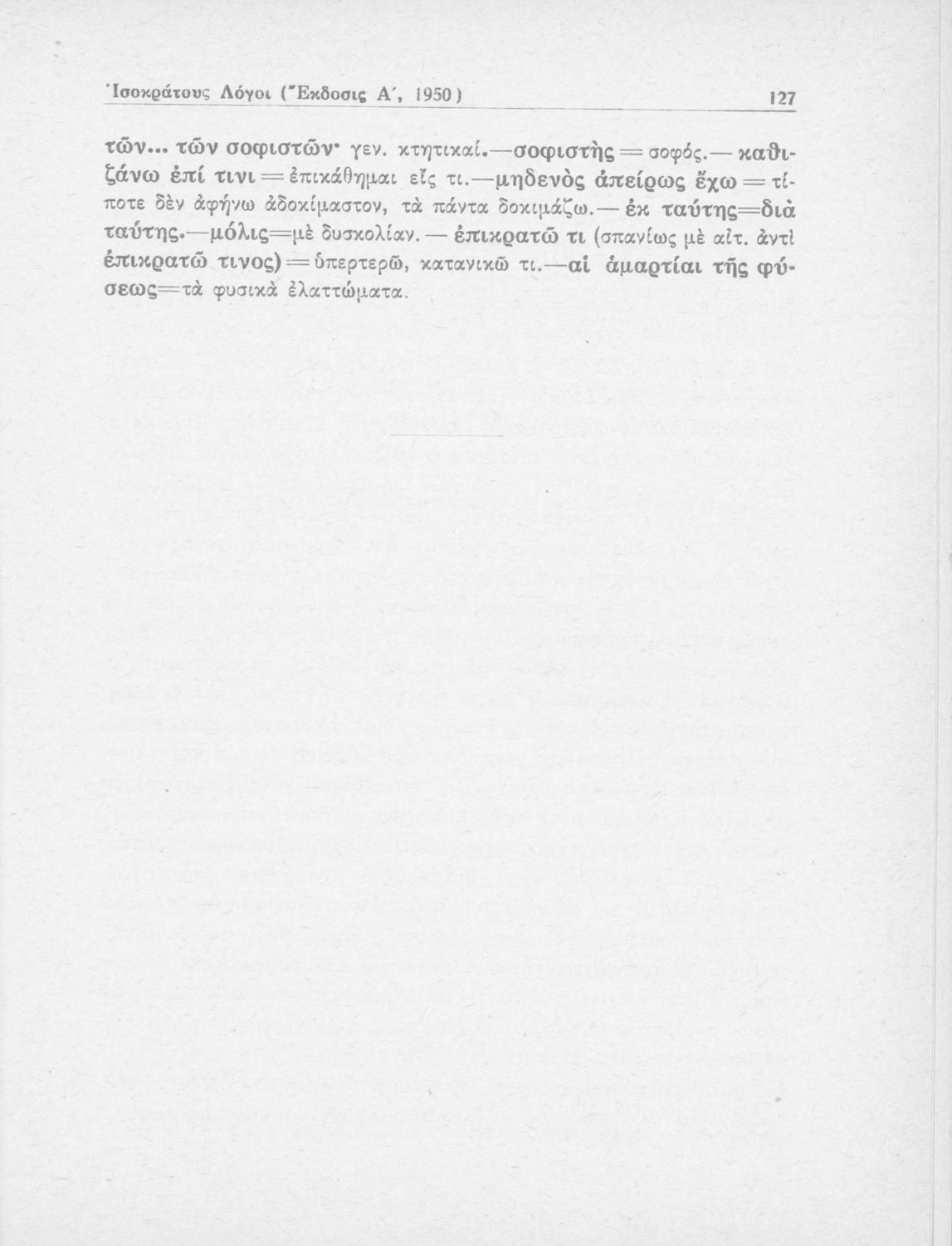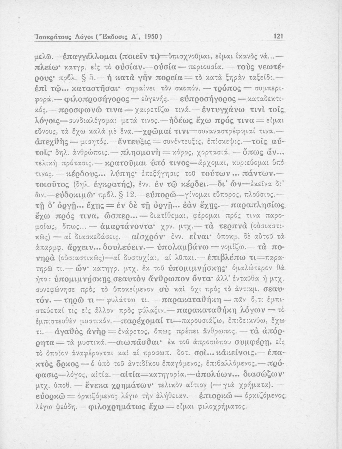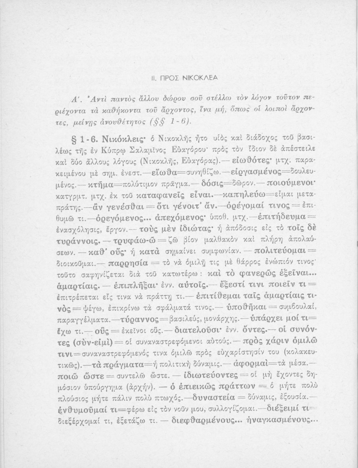 Σχολικό εγχειρίδιο Αρχαίων Ελληνικών που περιλαμβάνει τους Λόγους του Λυσία Περί του σηκού απολογία, Υπέρ του αδυνάτου, Κατά των σιτοπωλών και του Ισοκράτη Προς Δημόνικον, Προς Νικοκλέα και Ευαγόρας, εισαγωγή στους Λόγους και ερμηνευτικά σχόλια.