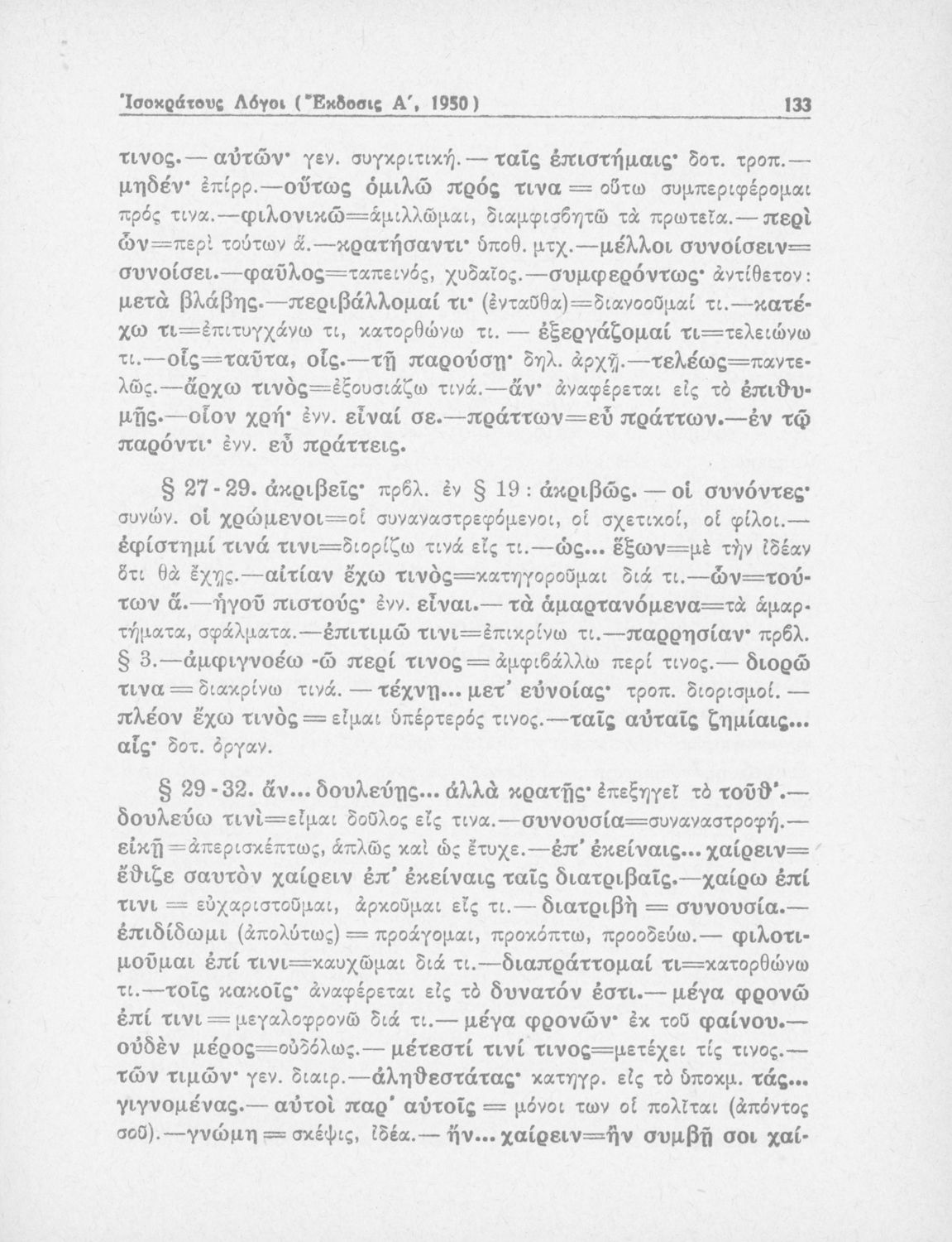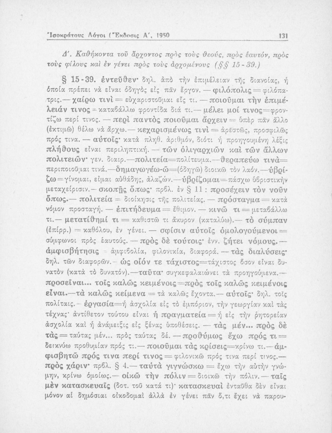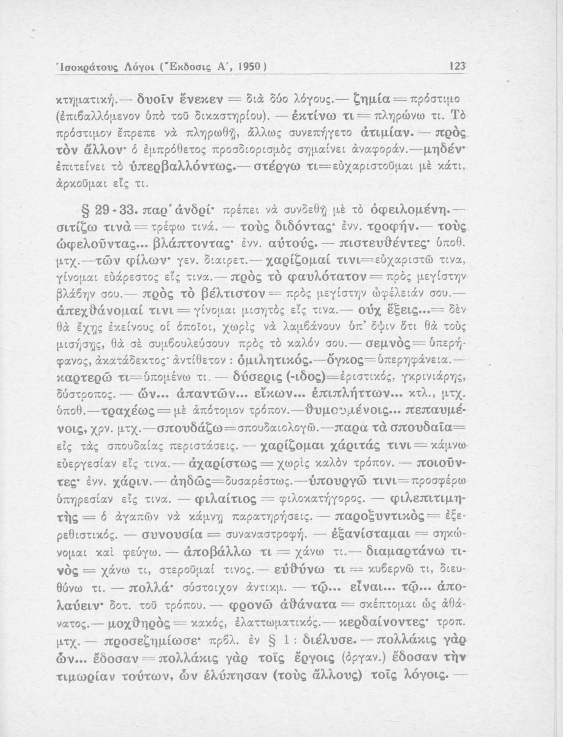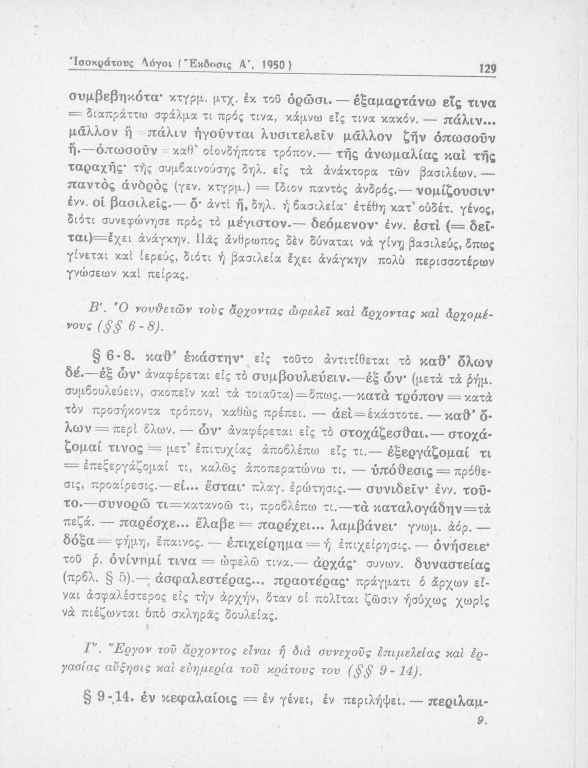 Σχολικό εγχειρίδιο Αρχαίων Ελληνικών που περιλαμβάνει τους Λόγους του Λυσία Περί του σηκού απολογία, Υπέρ του αδυνάτου, Κατά των σιτοπωλών και του Ισοκράτη Προς Δημόνικον, Προς Νικοκλέα και Ευαγόρας, εισαγωγή στους Λόγους και ερμηνευτικά σχόλια.