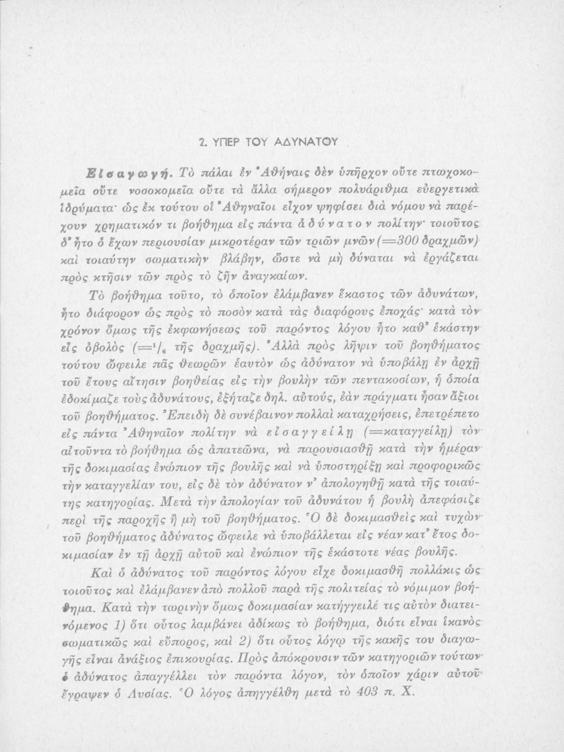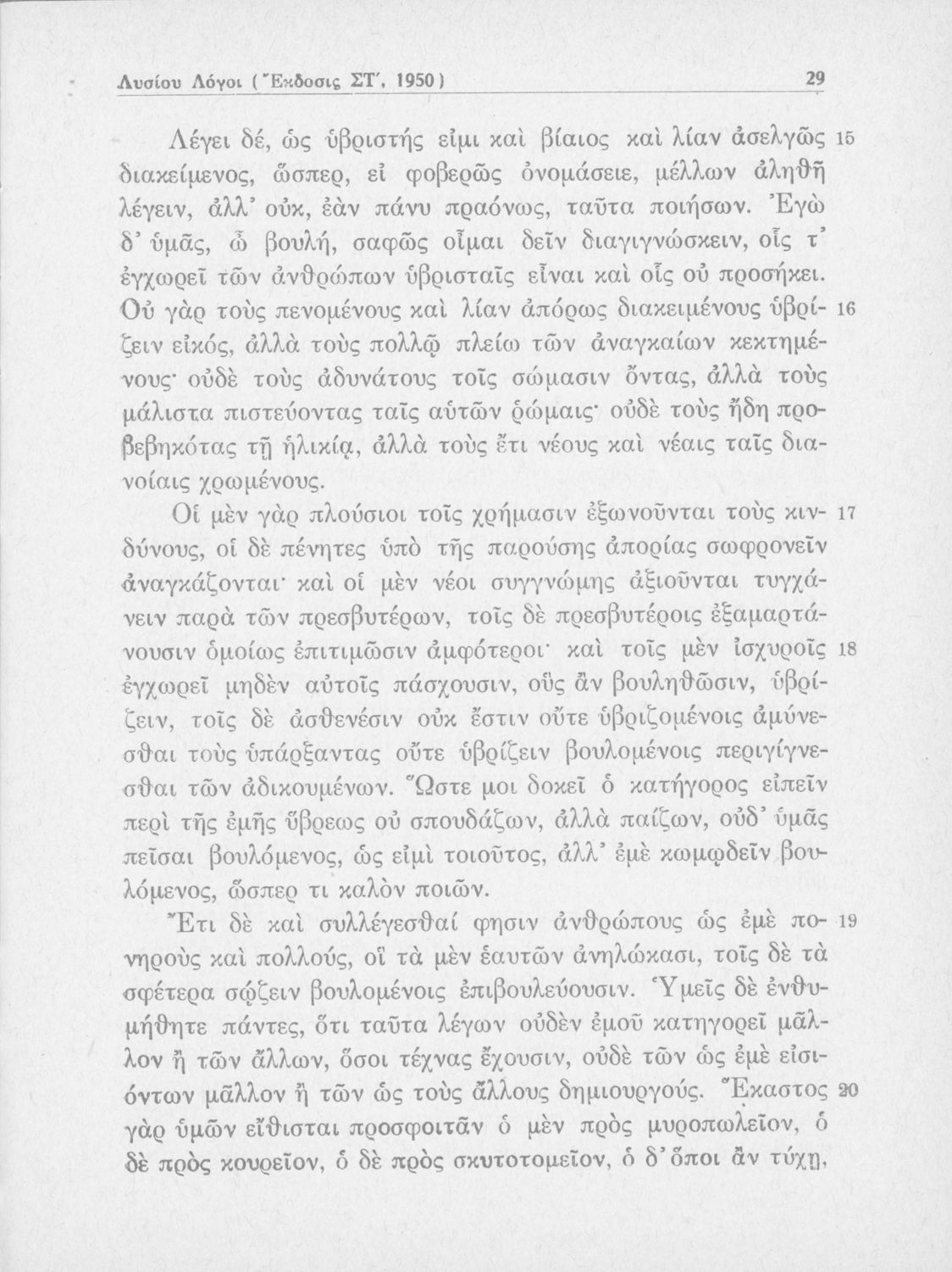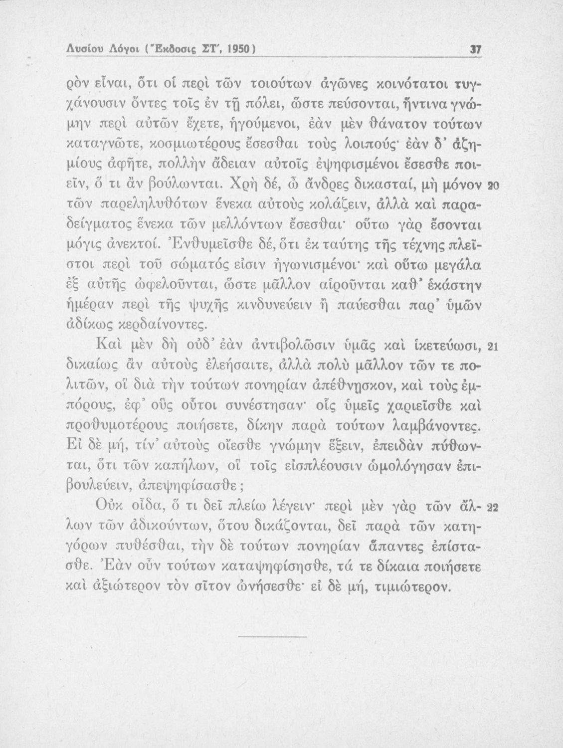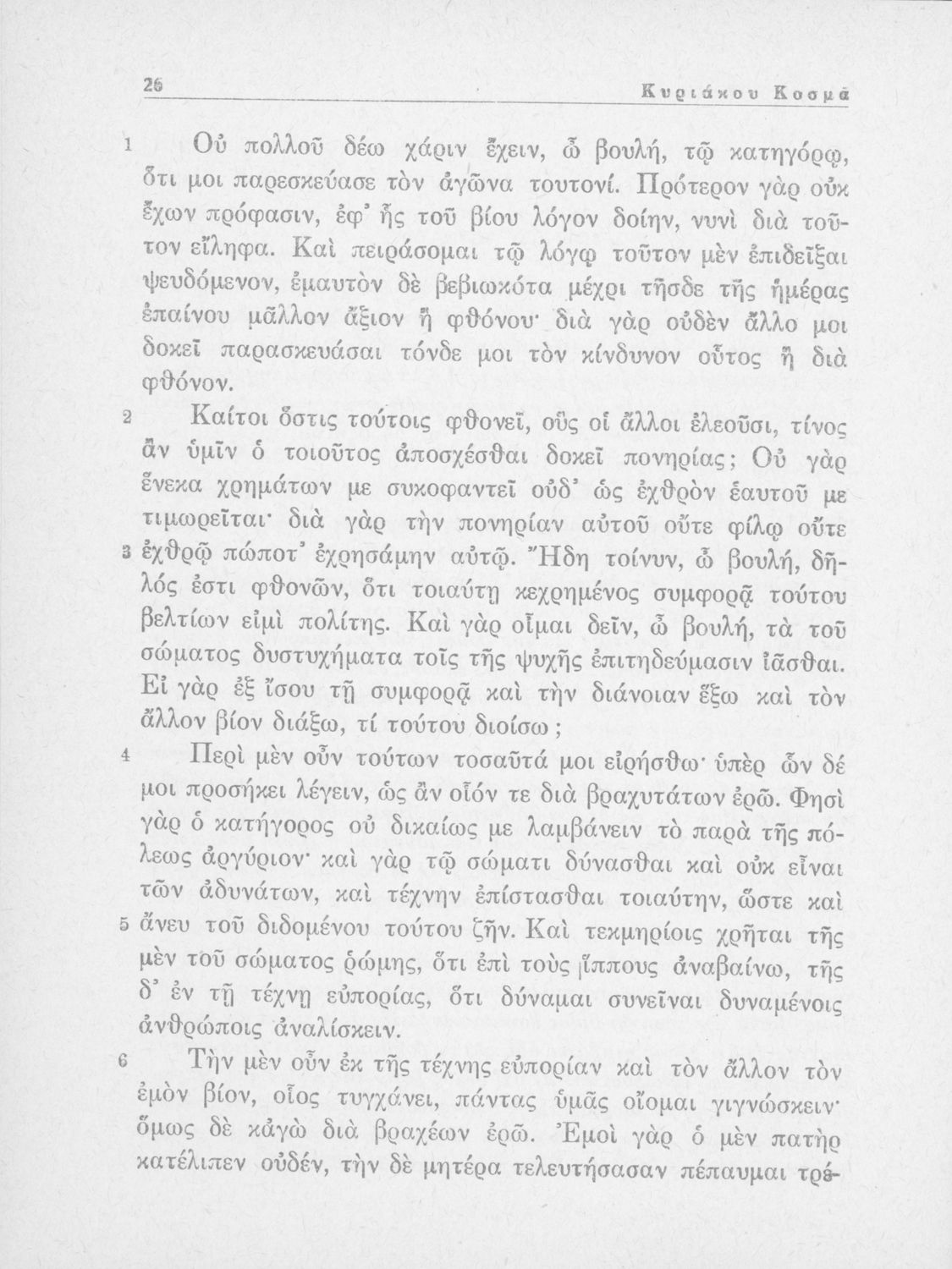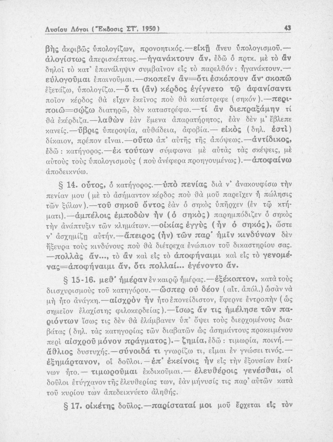 Σχολικό εγχειρίδιο Αρχαίων Ελληνικών που περιλαμβάνει τους Λόγους του Λυσία Περί του σηκού απολογία, Υπέρ του αδυνάτου, Κατά των σιτοπωλών και του Ισοκράτη Προς Δημόνικον, Προς Νικοκλέα και Ευαγόρας, εισαγωγή στους Λόγους και ερμηνευτικά σχόλια.